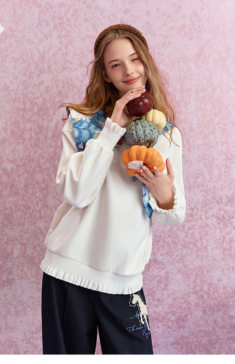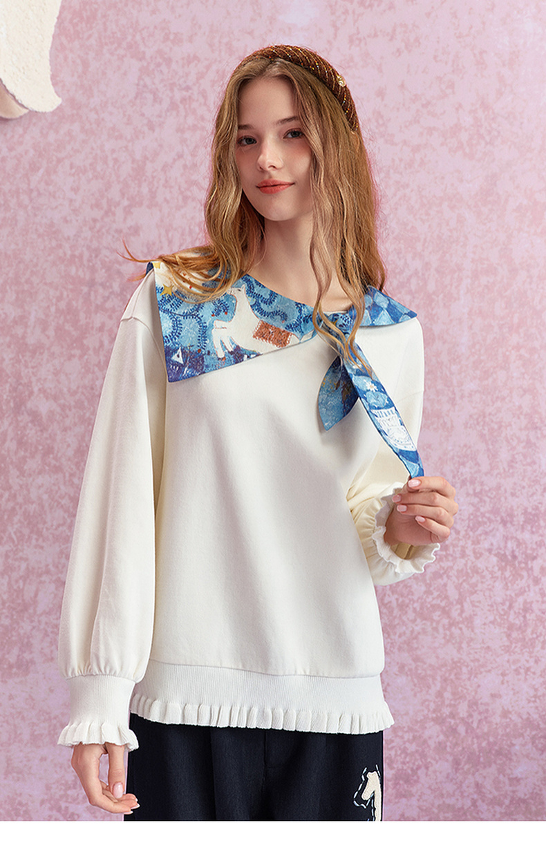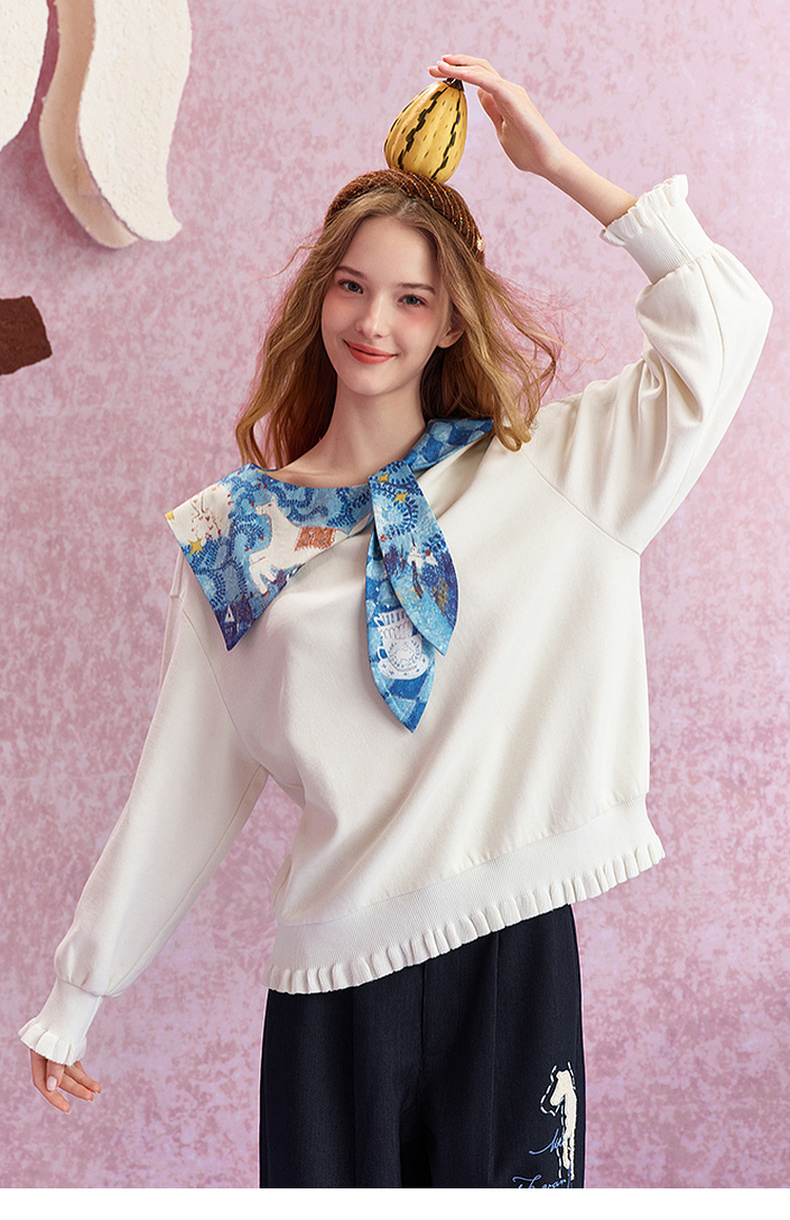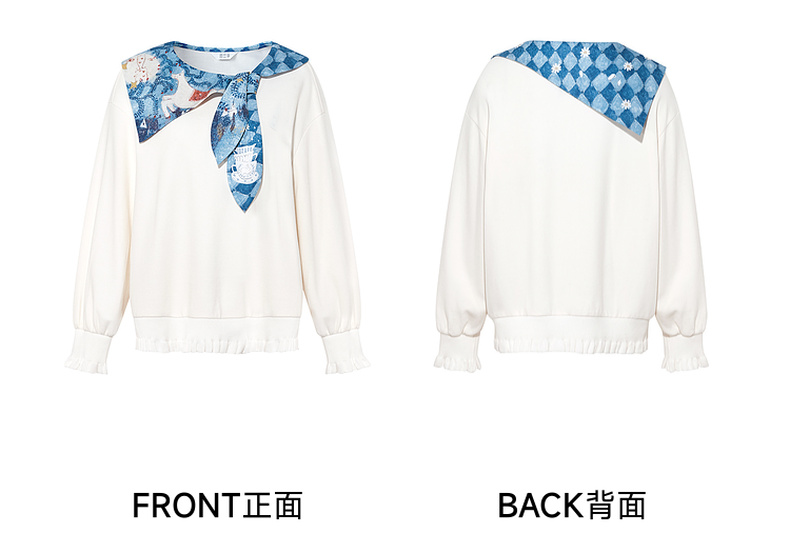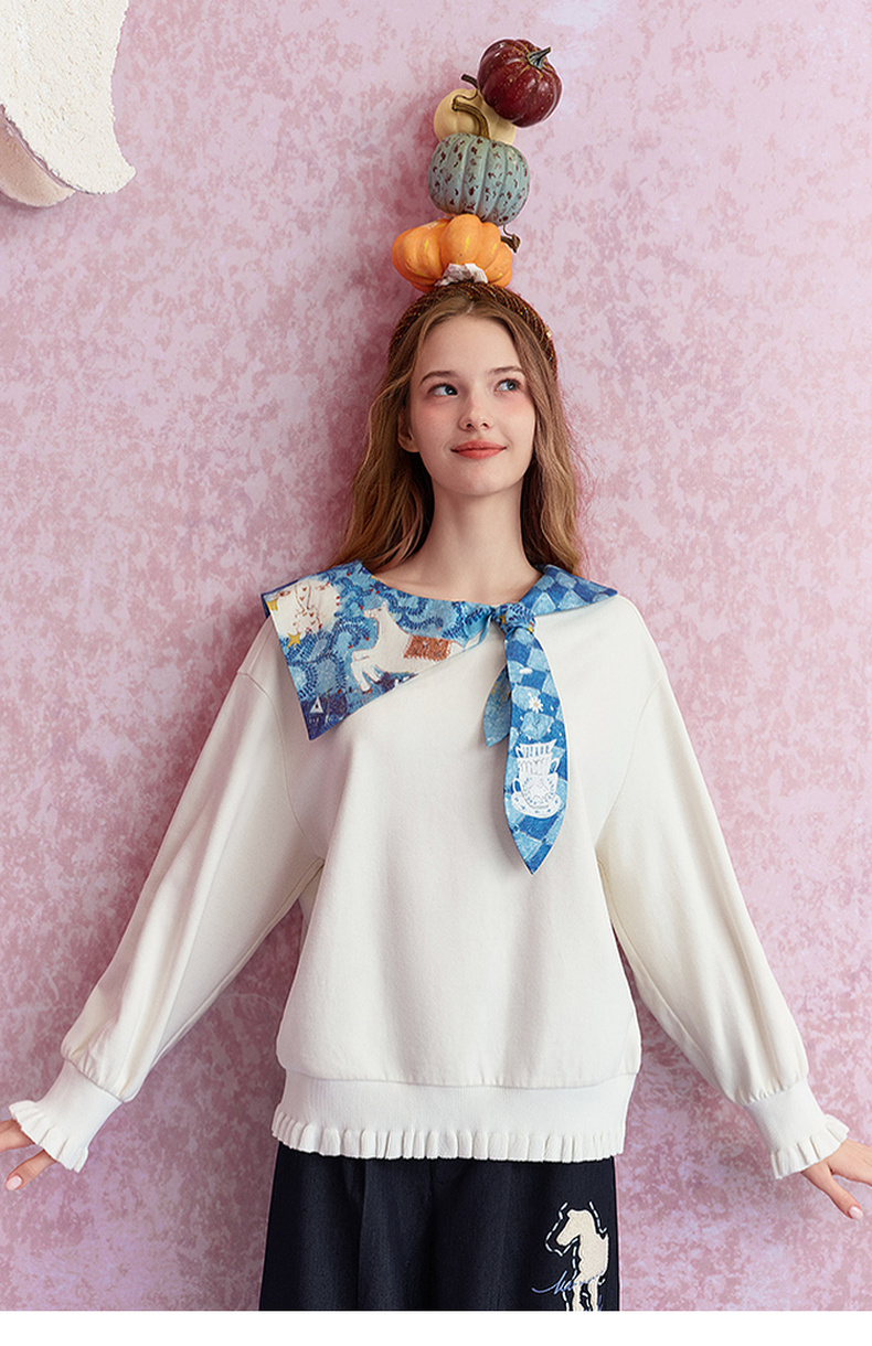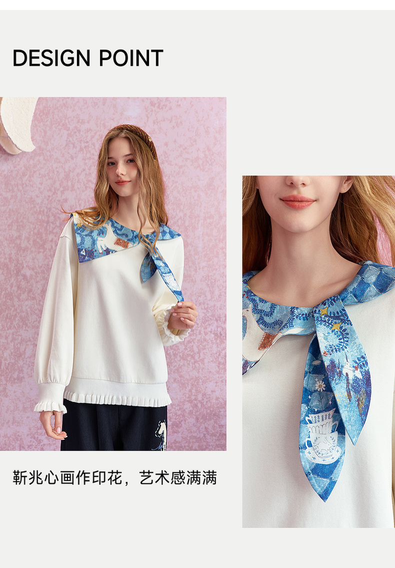两三事 鬼马棋局 2025秋季新款休闲不规则印花领带套头卫衣女宽松