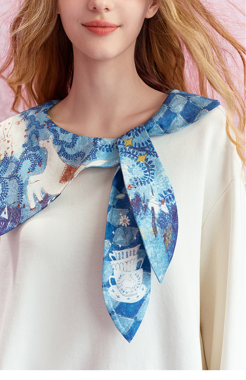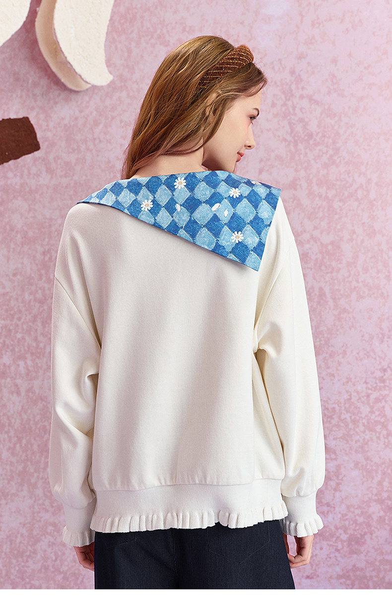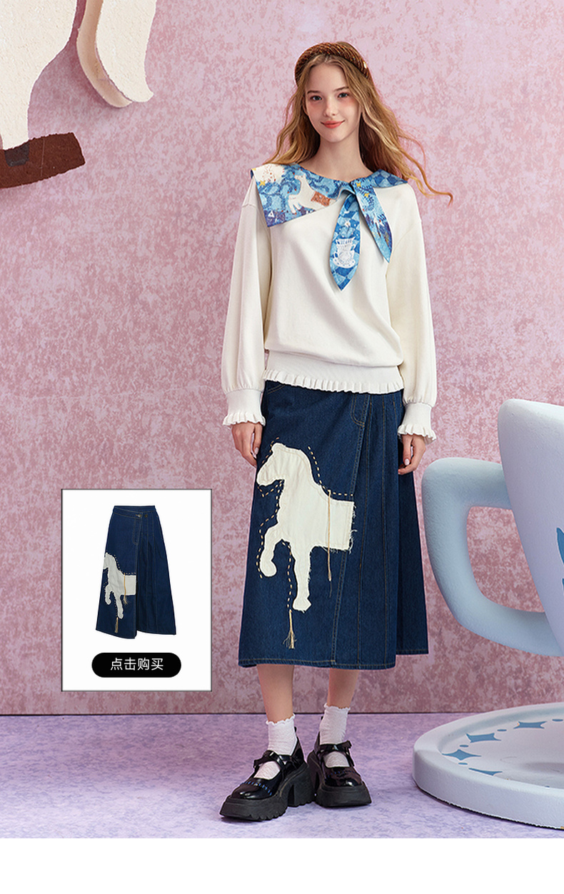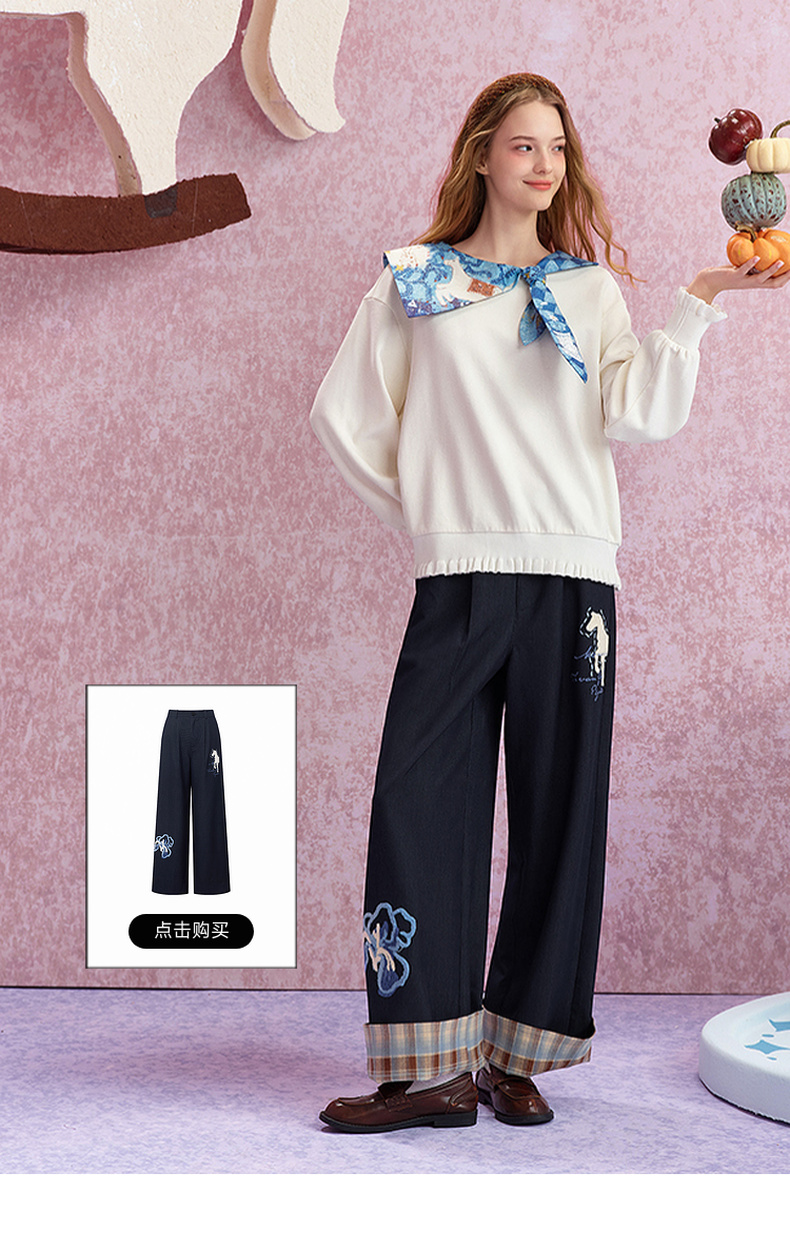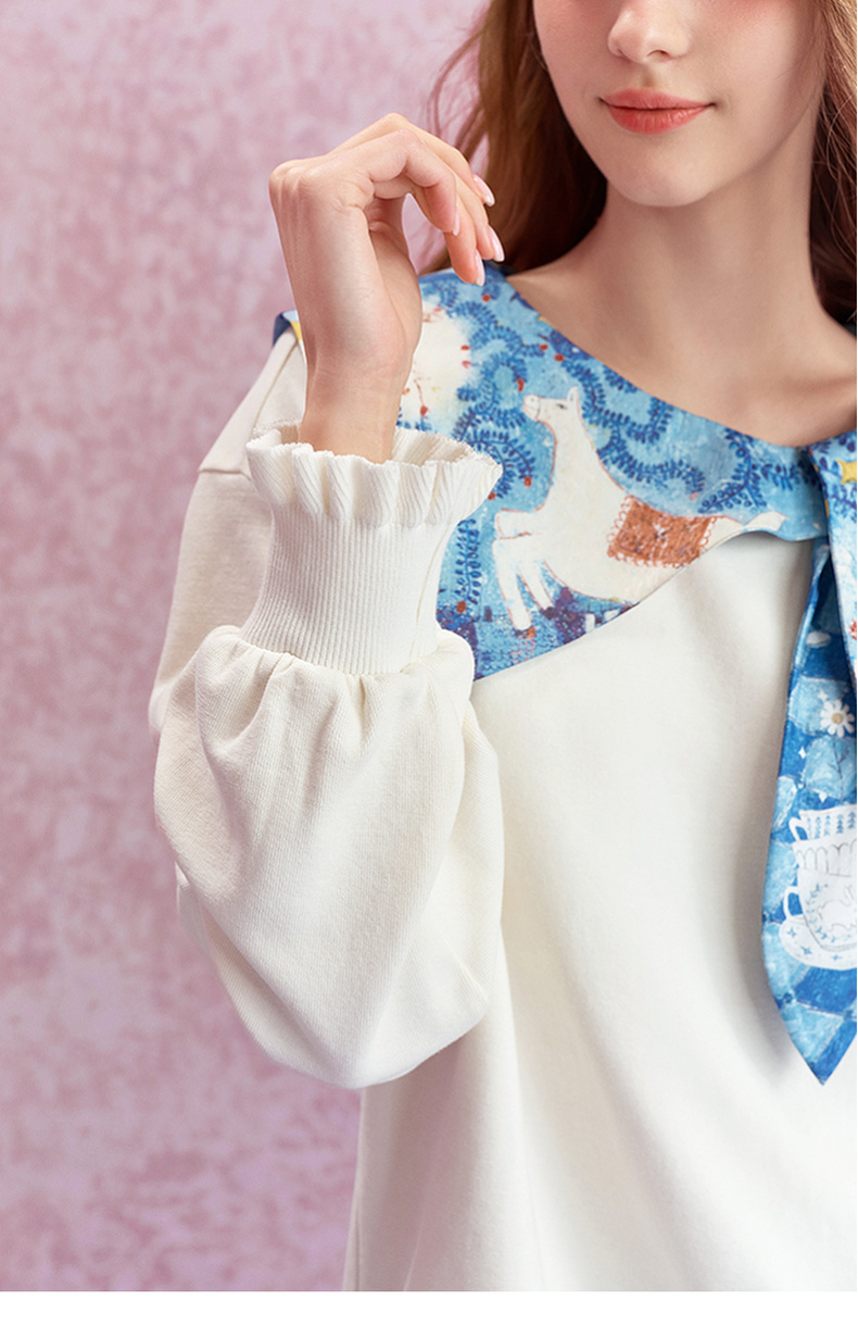 两三事 鬼马棋局 2025秋季新款休闲不规则印花领带套头卫衣女宽松