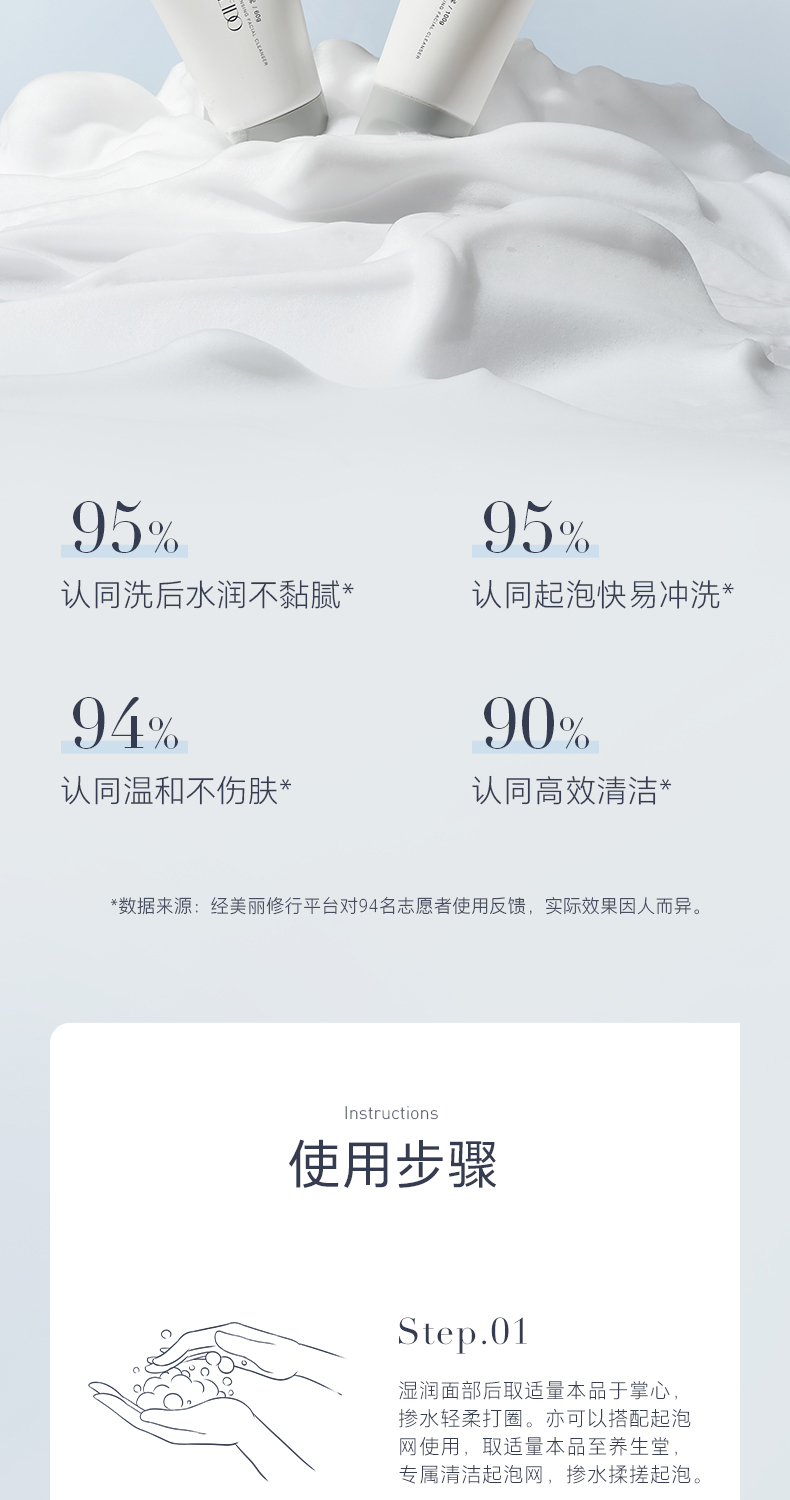 养生堂氨基酸温和净润洁面乳100g 脆弱肌绵密泡沫洗面奶 100012513822