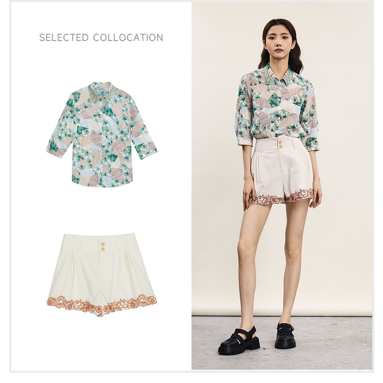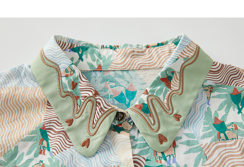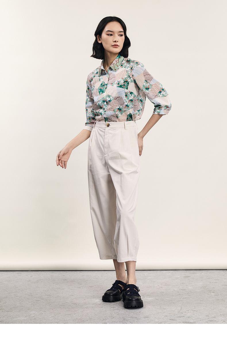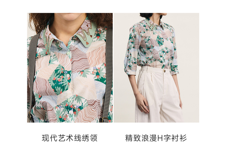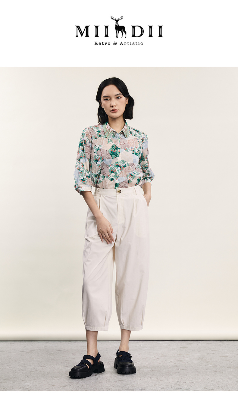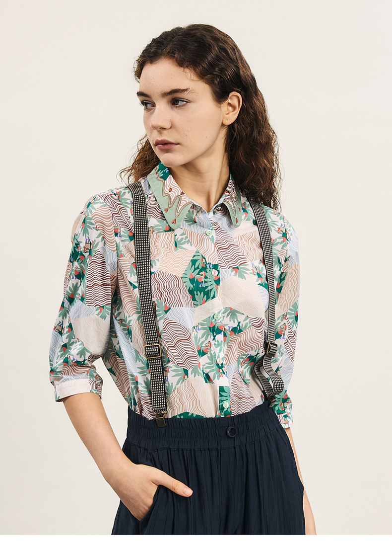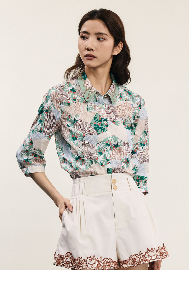 谜底碎花衬衫七分袖女2024夏季新款复古文艺风宽松衬衣242MC0581