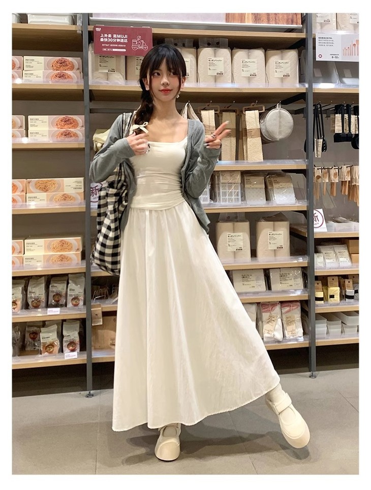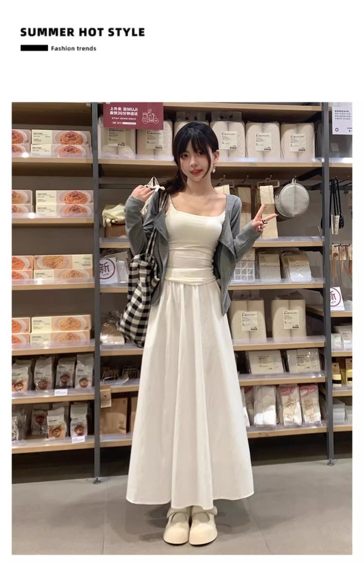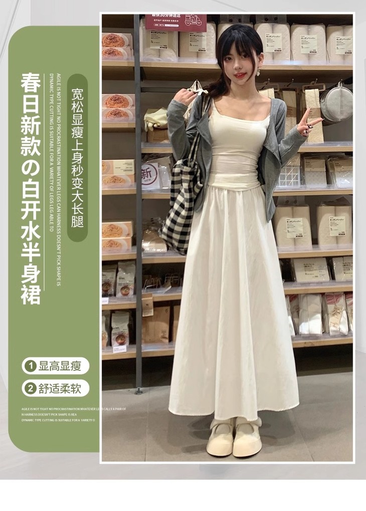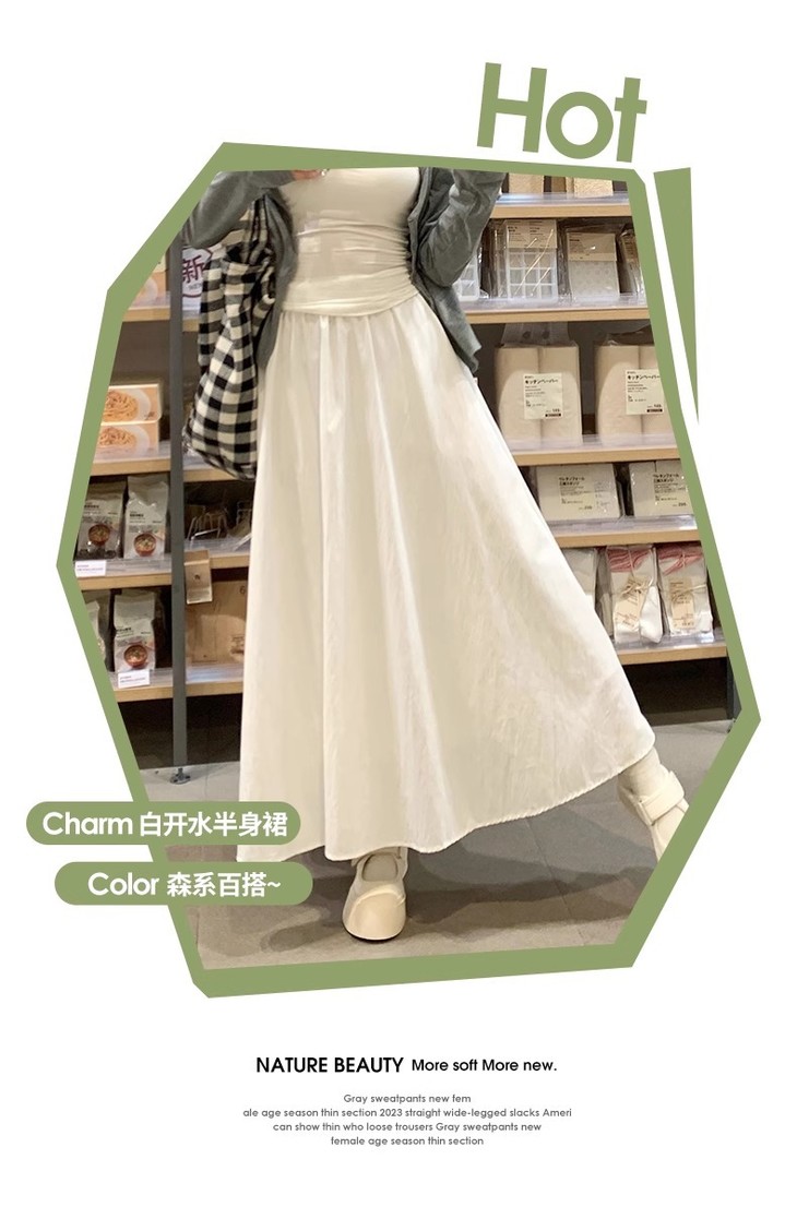 白色半身裙夏季新款高级感气质伞裙中长款女百褶裙子a字半裙