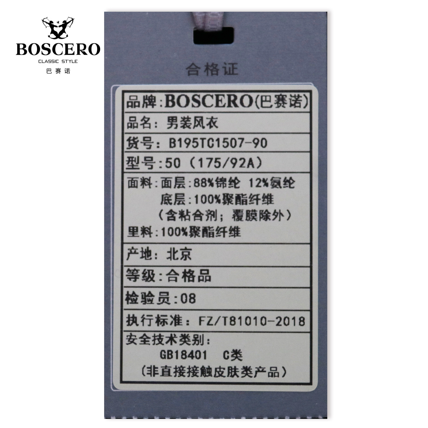 巴赛诺男装风衣B195TC1507-90