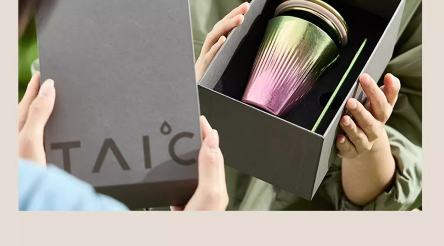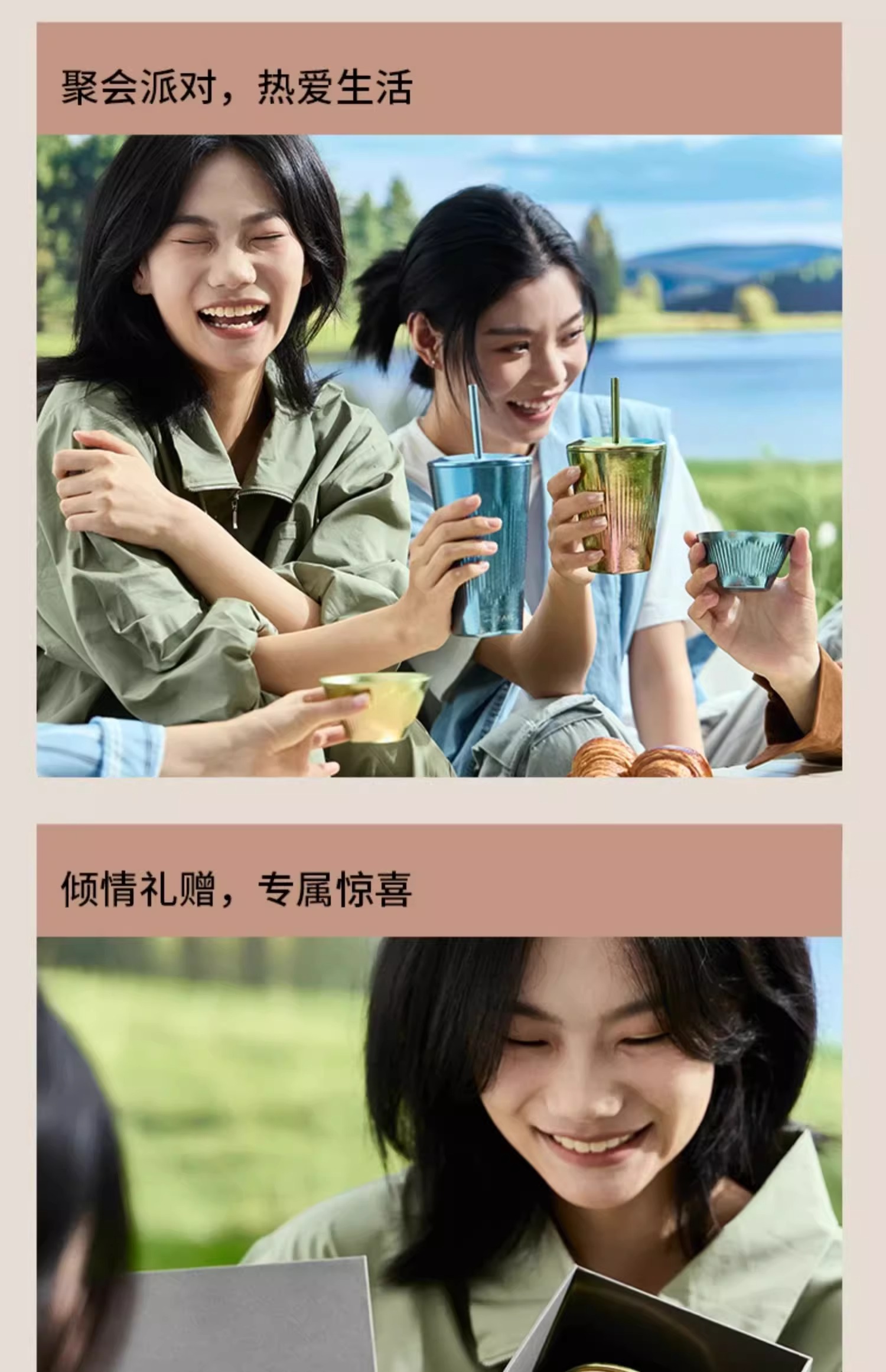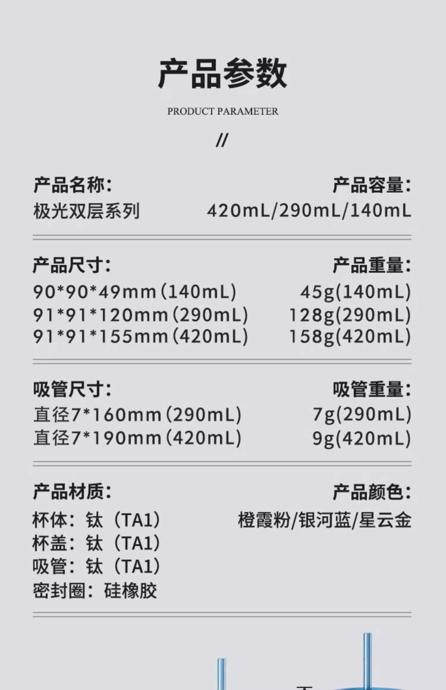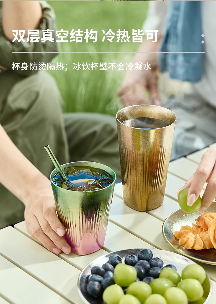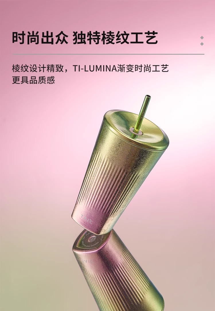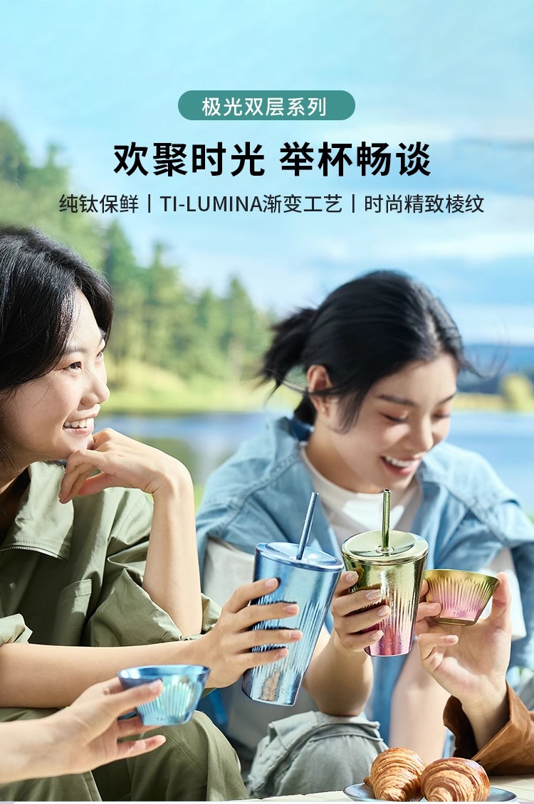 TAIC太可纯钛极光双层茶饮吸管杯高颜值竖纹办公室女咖啡杯男水杯极光双层茶饮杯套装(银河蓝+橙霞粉)