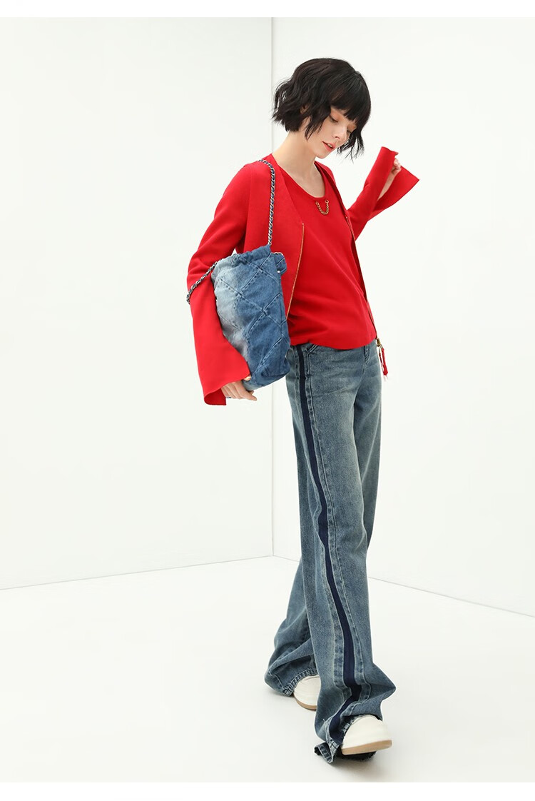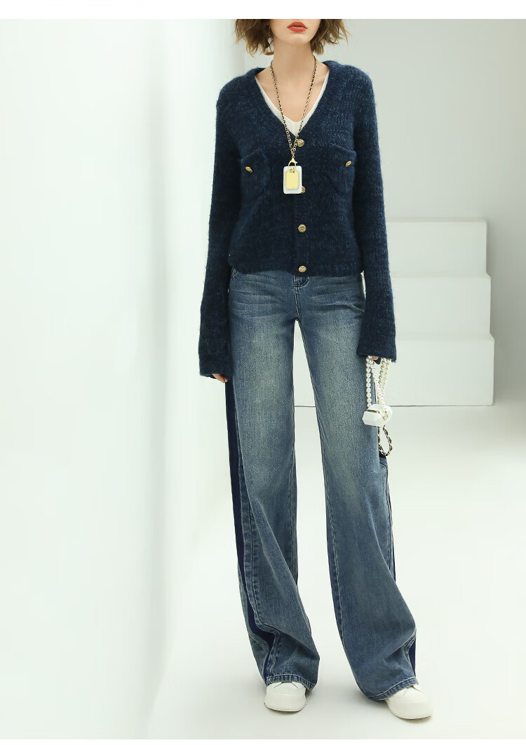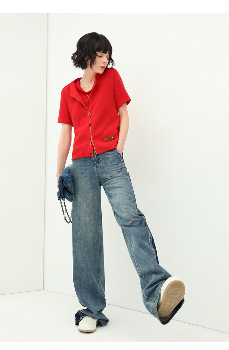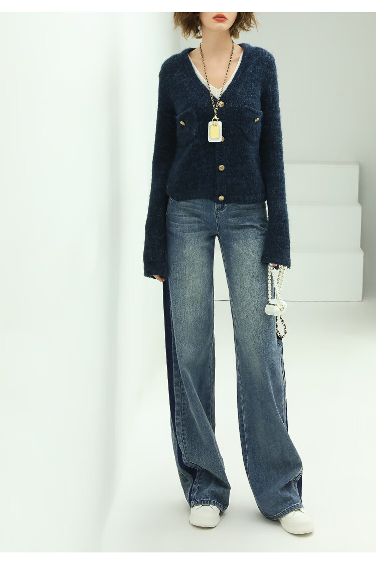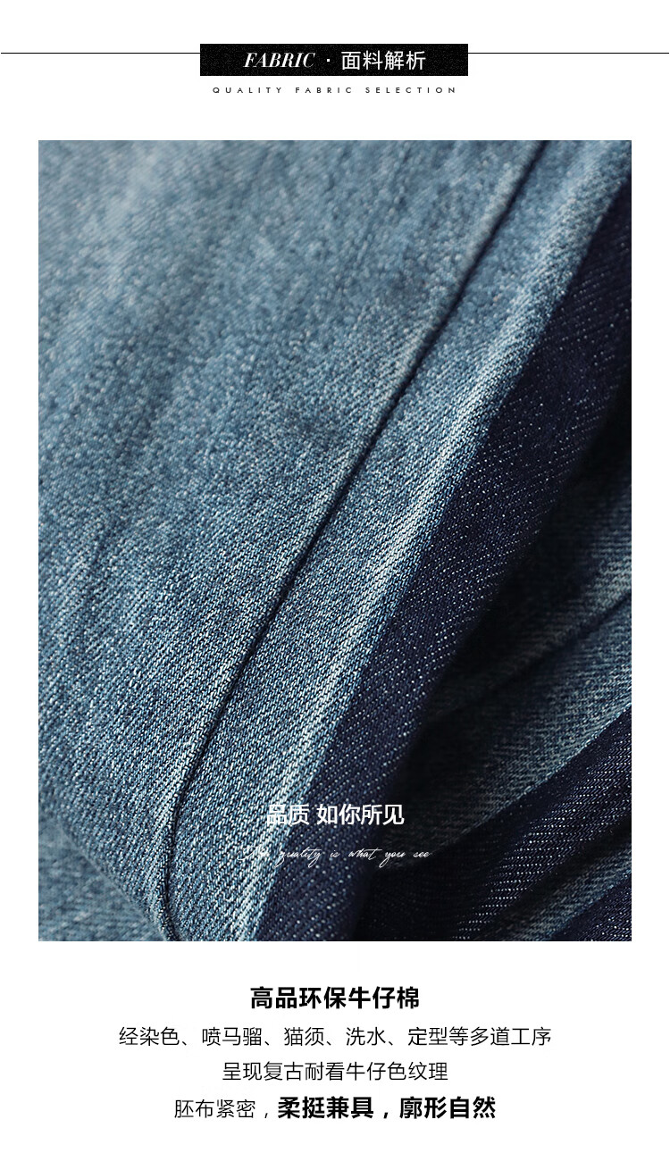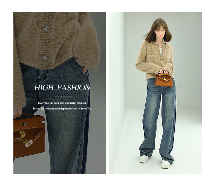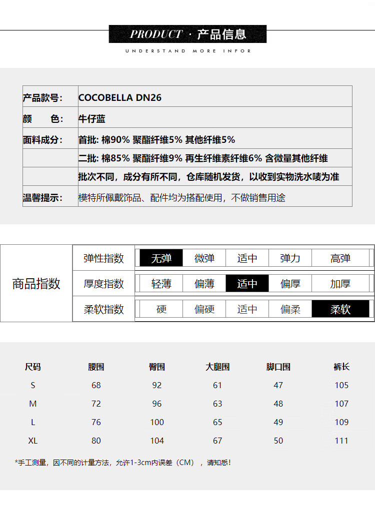 COCOBELLA拼色水洗直筒牛仔裤女秋撞色高腰休闲裤宽松阔腿裤DN26