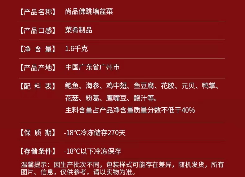 【盆菜】广州酒家 尚品佛跳墙盆菜1.6kg(不含盆)