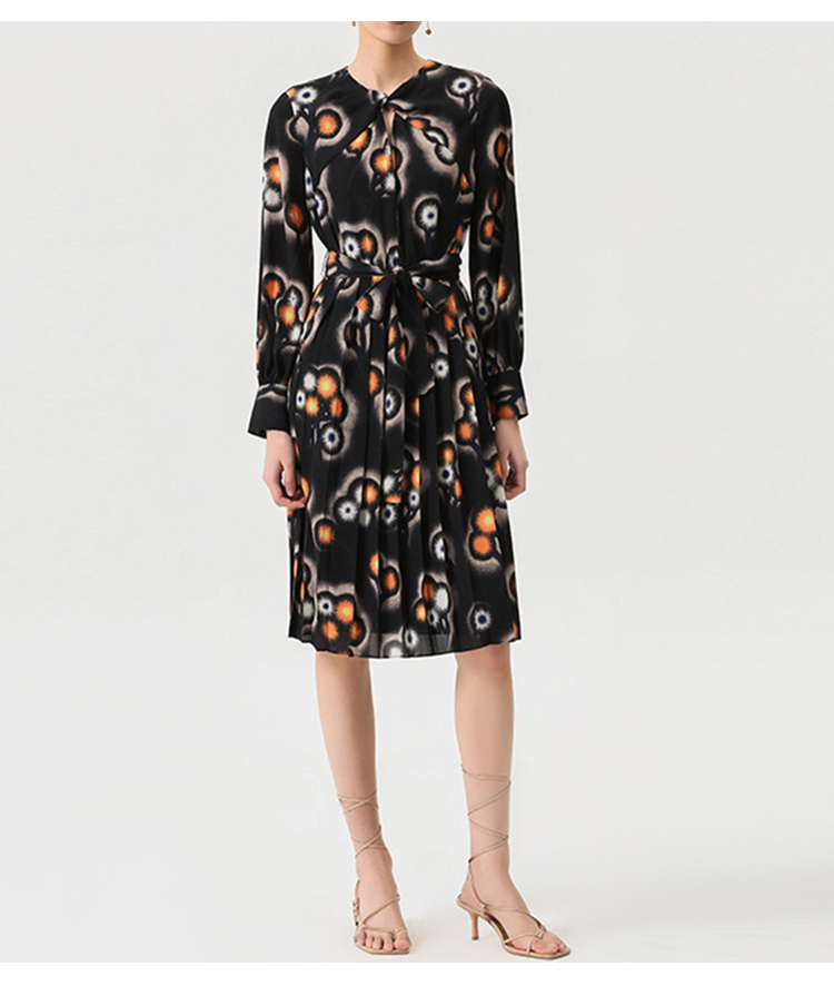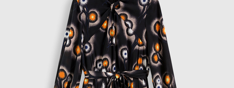 【JASON WU】秋冬新款荷叶边花卉印花真丝顺纡绉迷你连衣裙