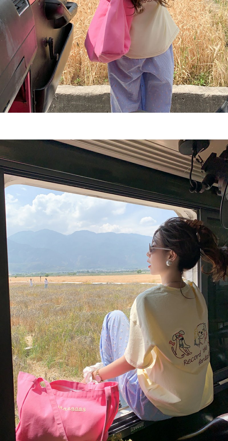 <曾小咸推荐>【舒适穿搭】黄色短袖T恤+蓝色格子裤