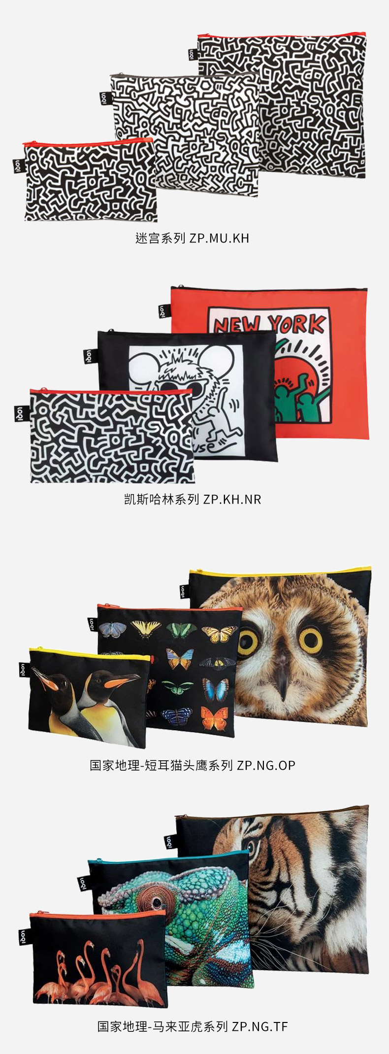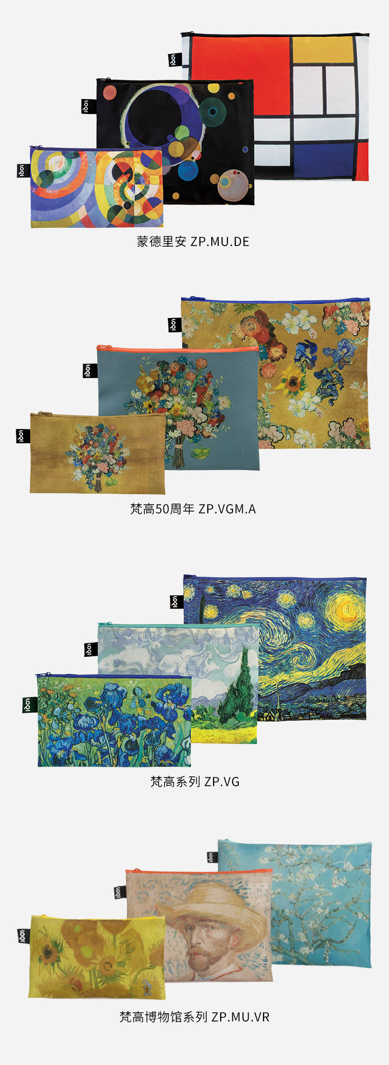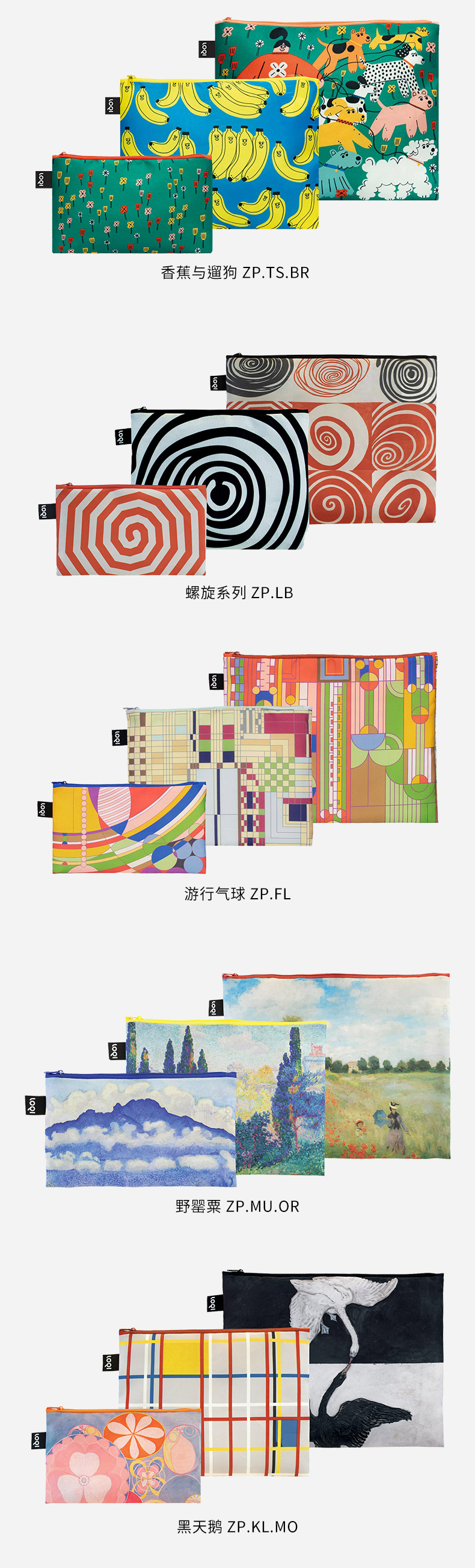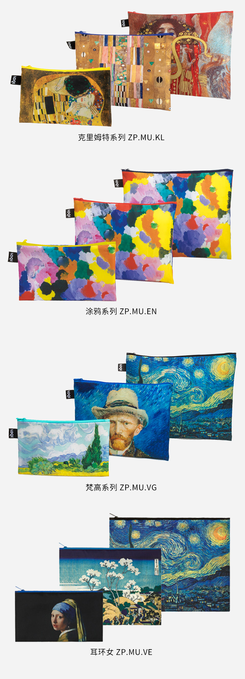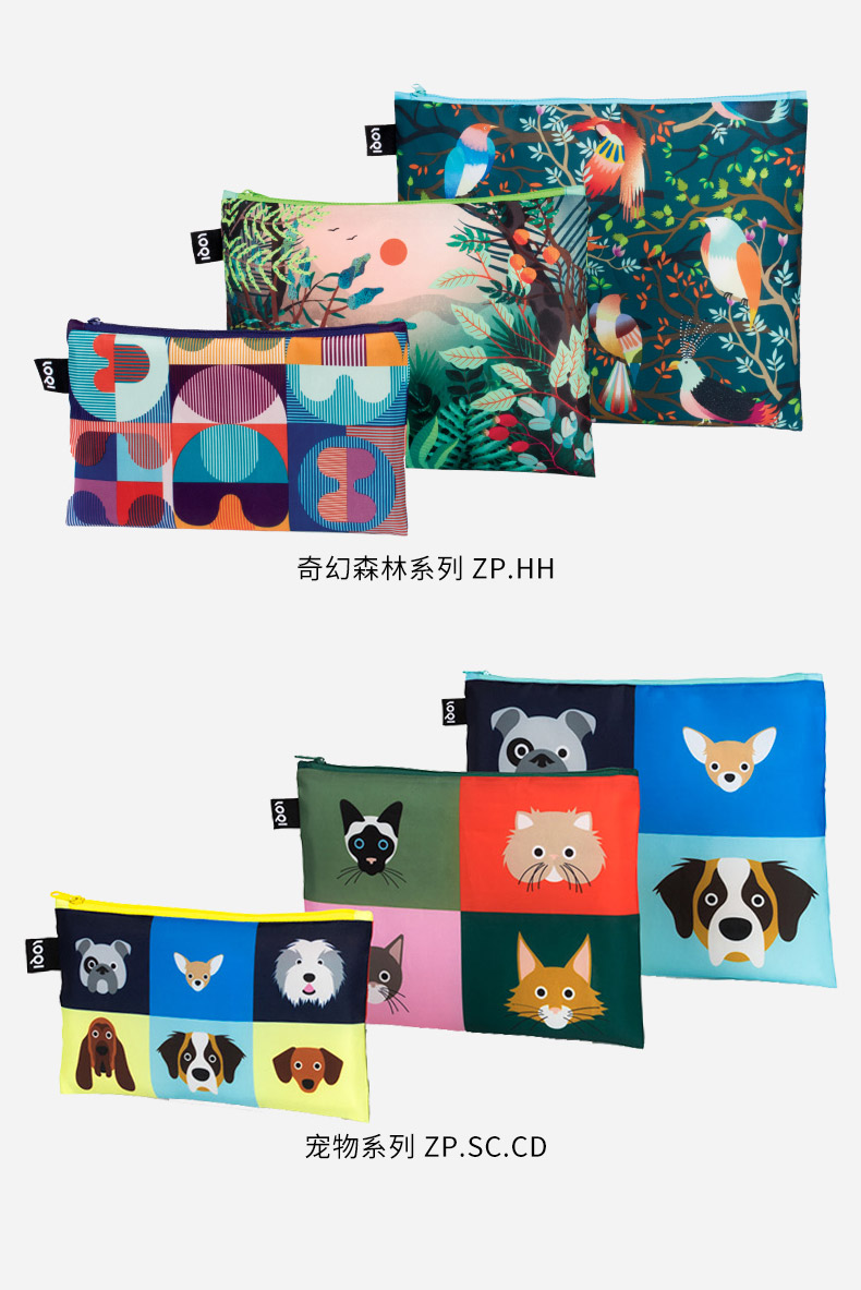 德国LOQI博物馆系列 环保收纳袋三件套合集 文具数码配件收纳整理套包洗漱化妆防泼水
