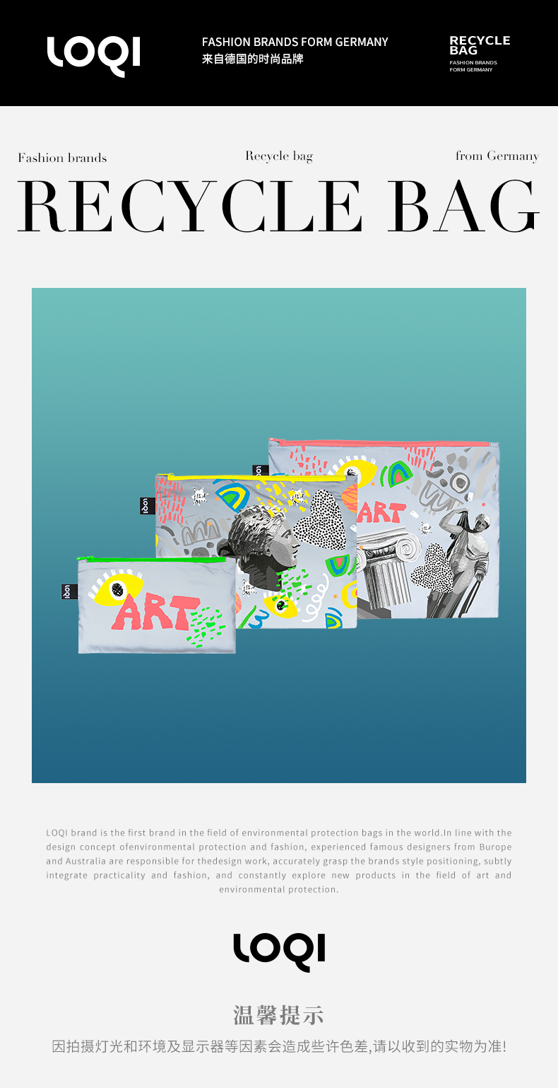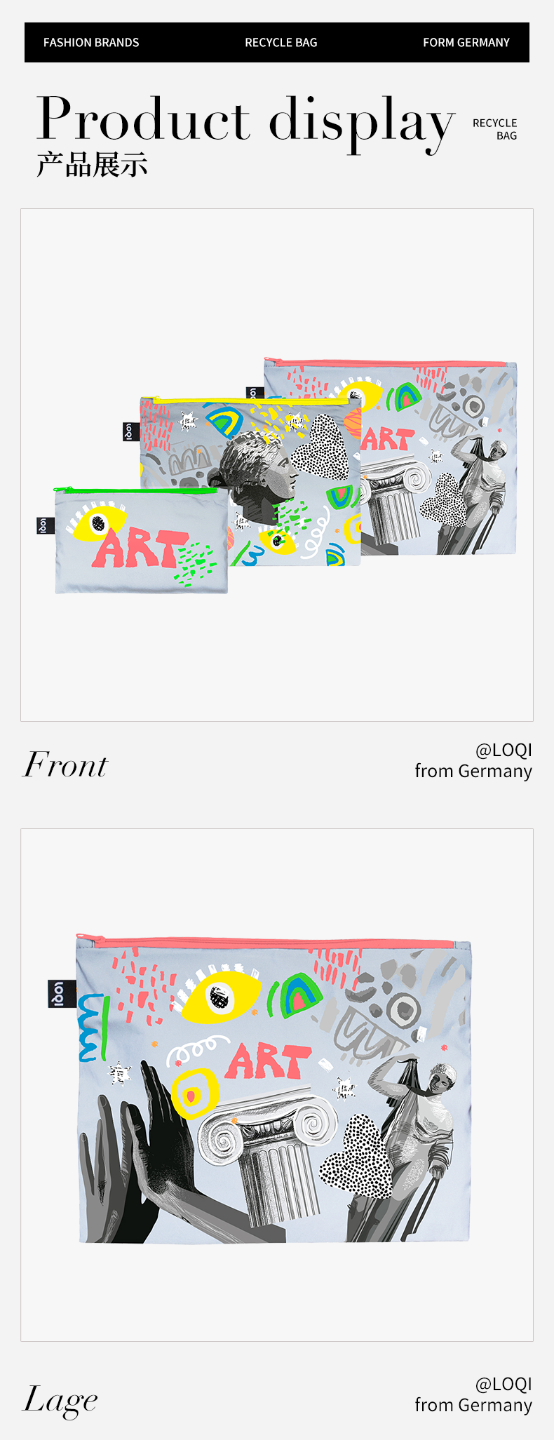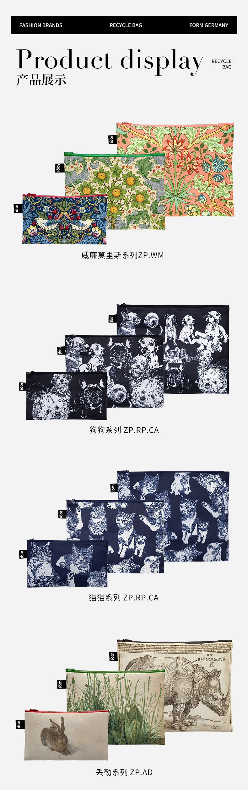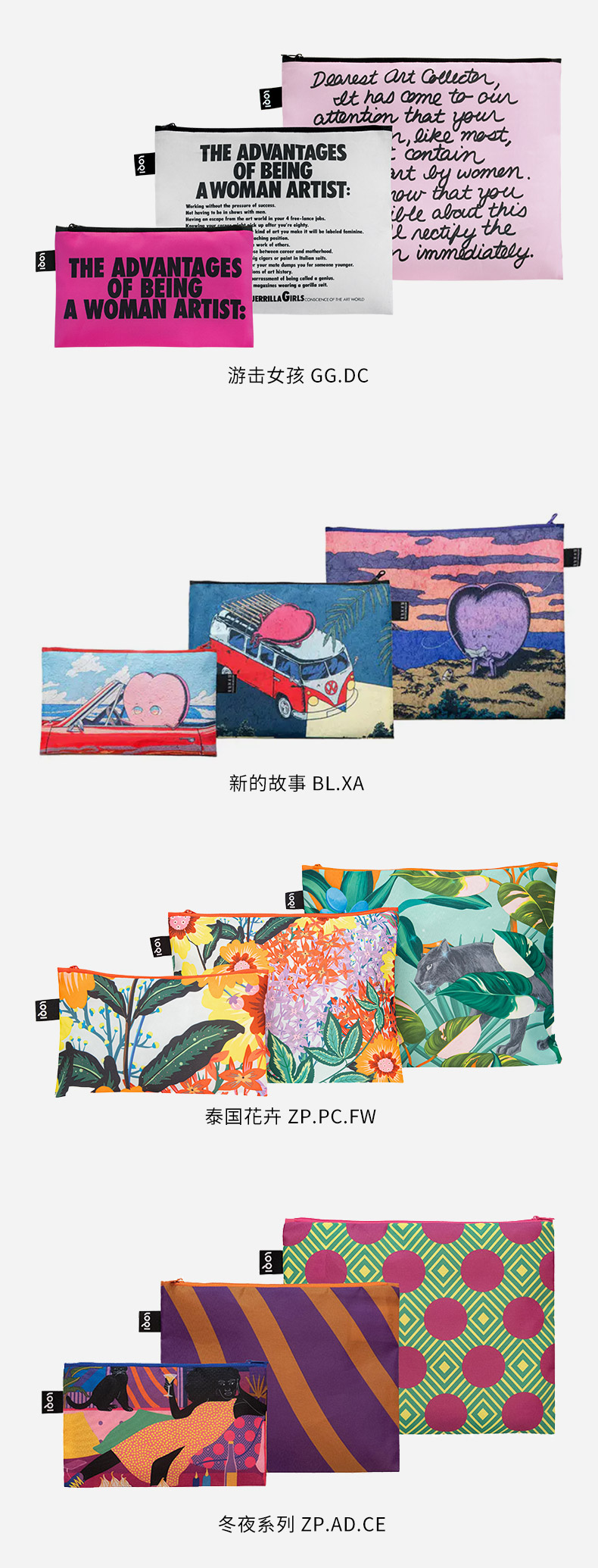 德国LOQI博物馆系列 环保收纳袋三件套合集 文具数码配件收纳整理套包洗漱化妆防泼水
