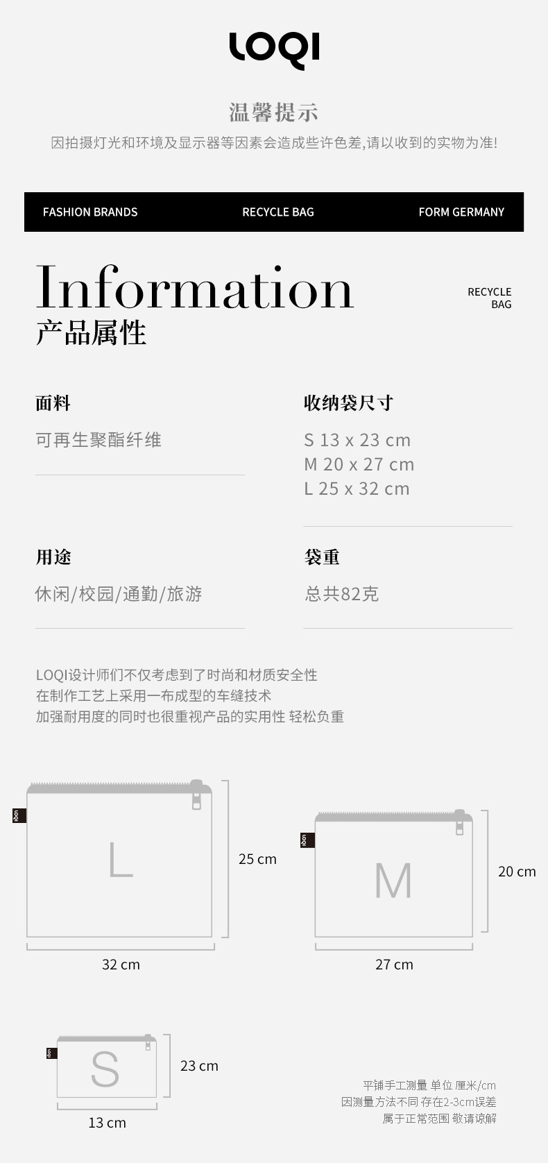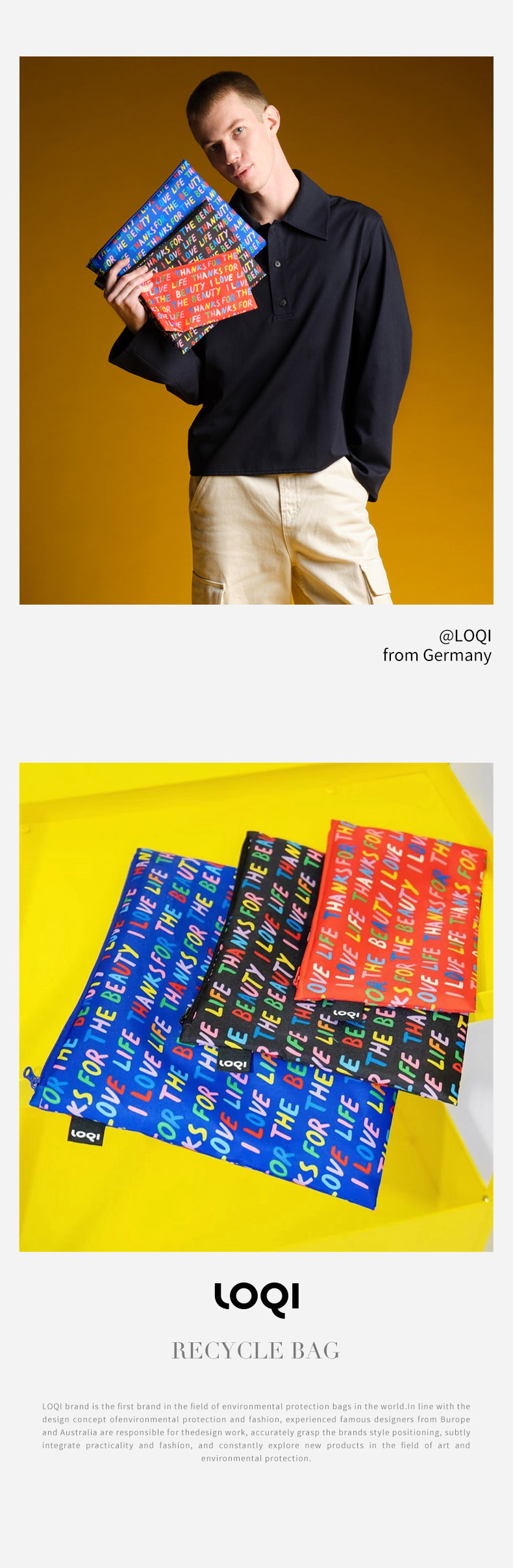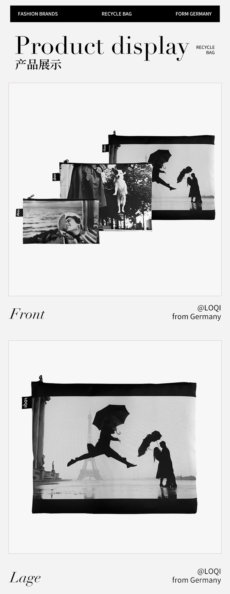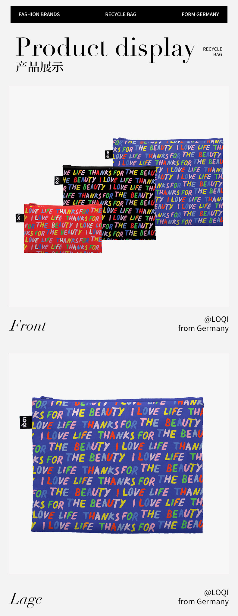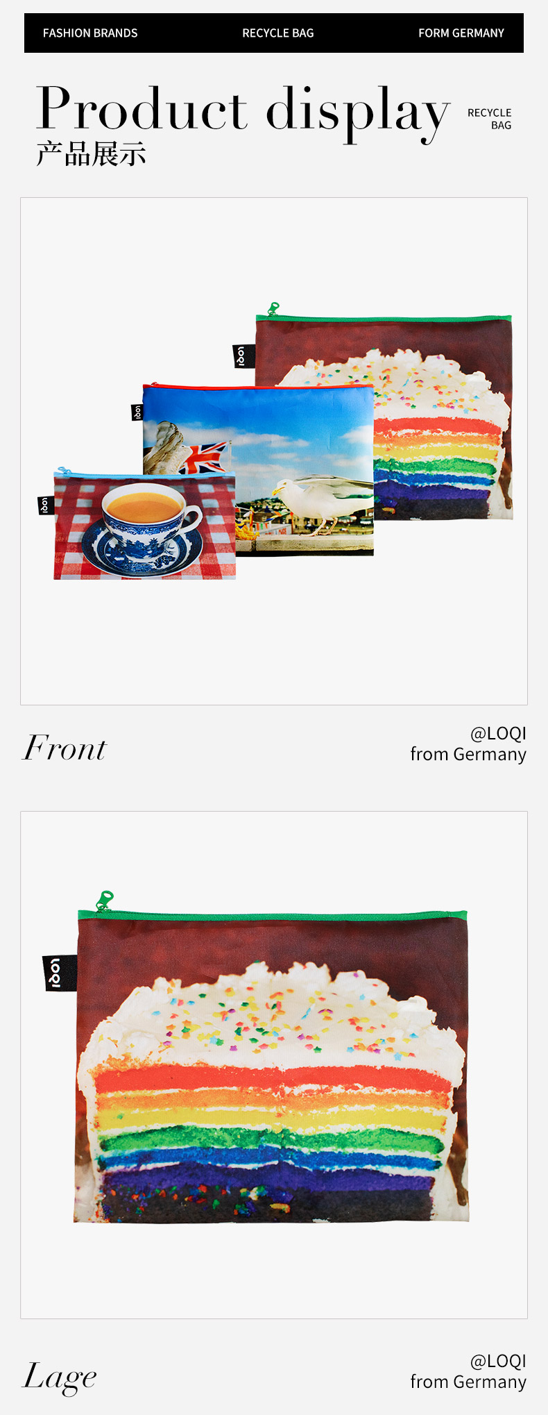 德国LOQI博物馆系列 环保收纳袋三件套合集 文具数码配件收纳整理套包洗漱化妆防泼水