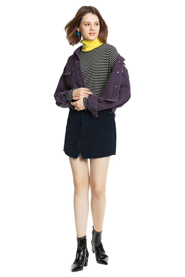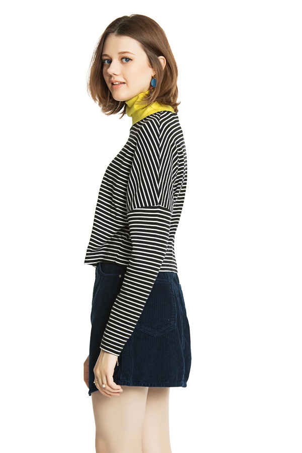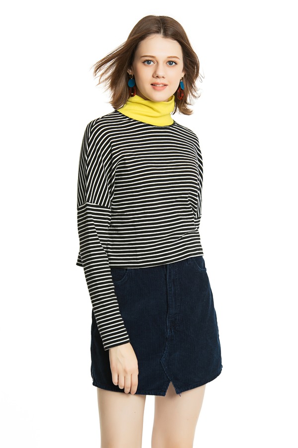 CU+CH蔻趣 拼色条纹高领上衣 4378