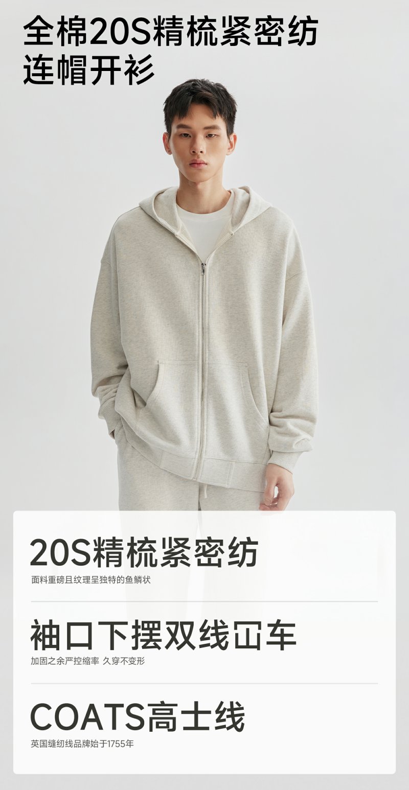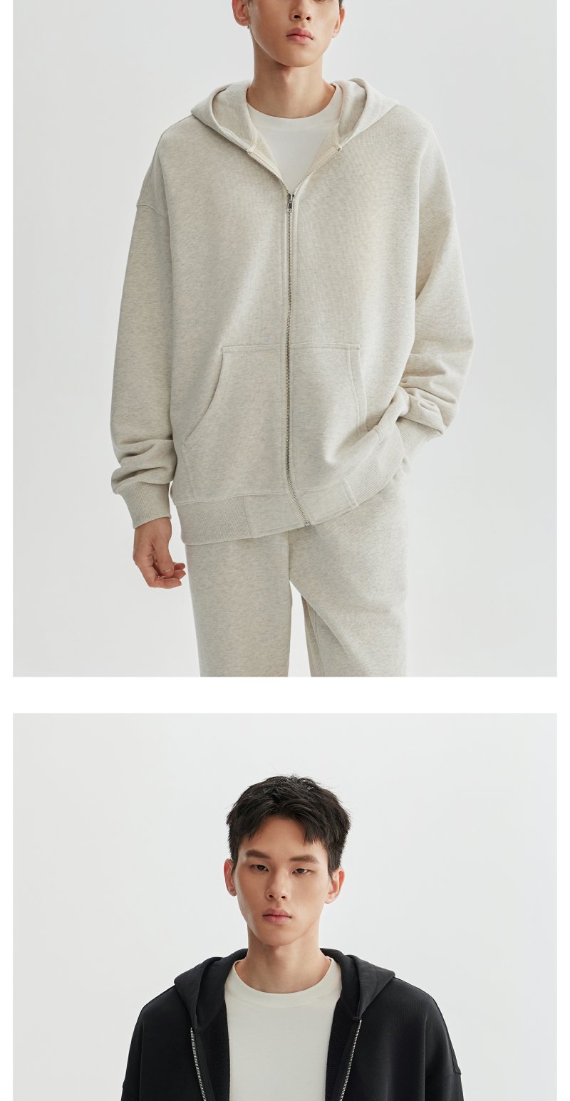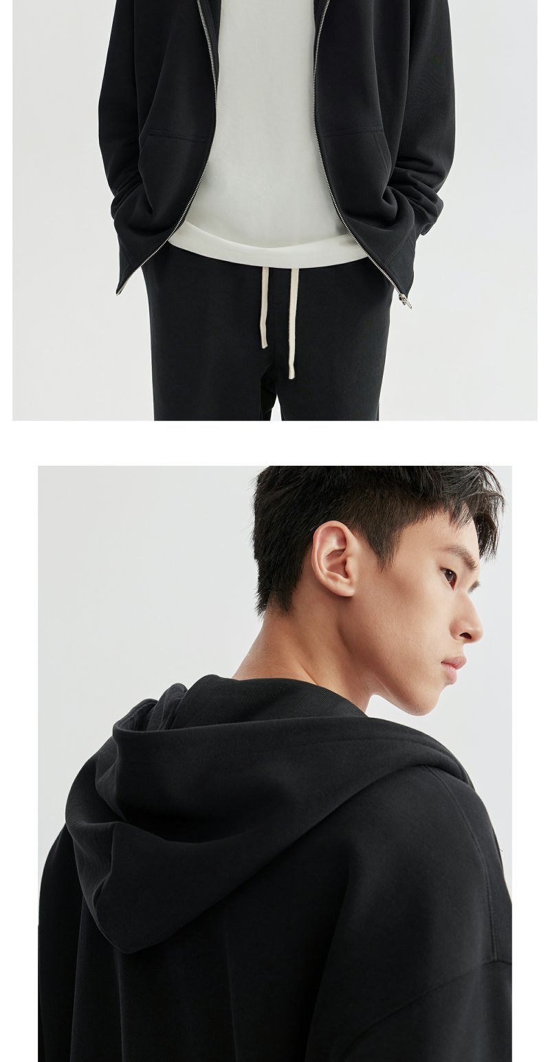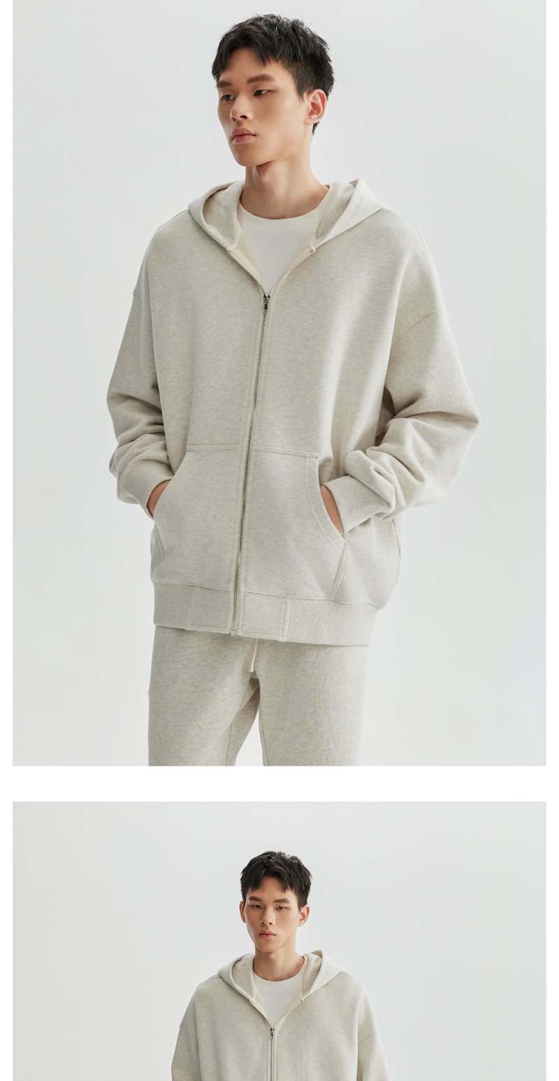 CHINISM赤尘 花灰色连帽开衫卫衣男秋季重磅纯棉宽松休闲拉链外套