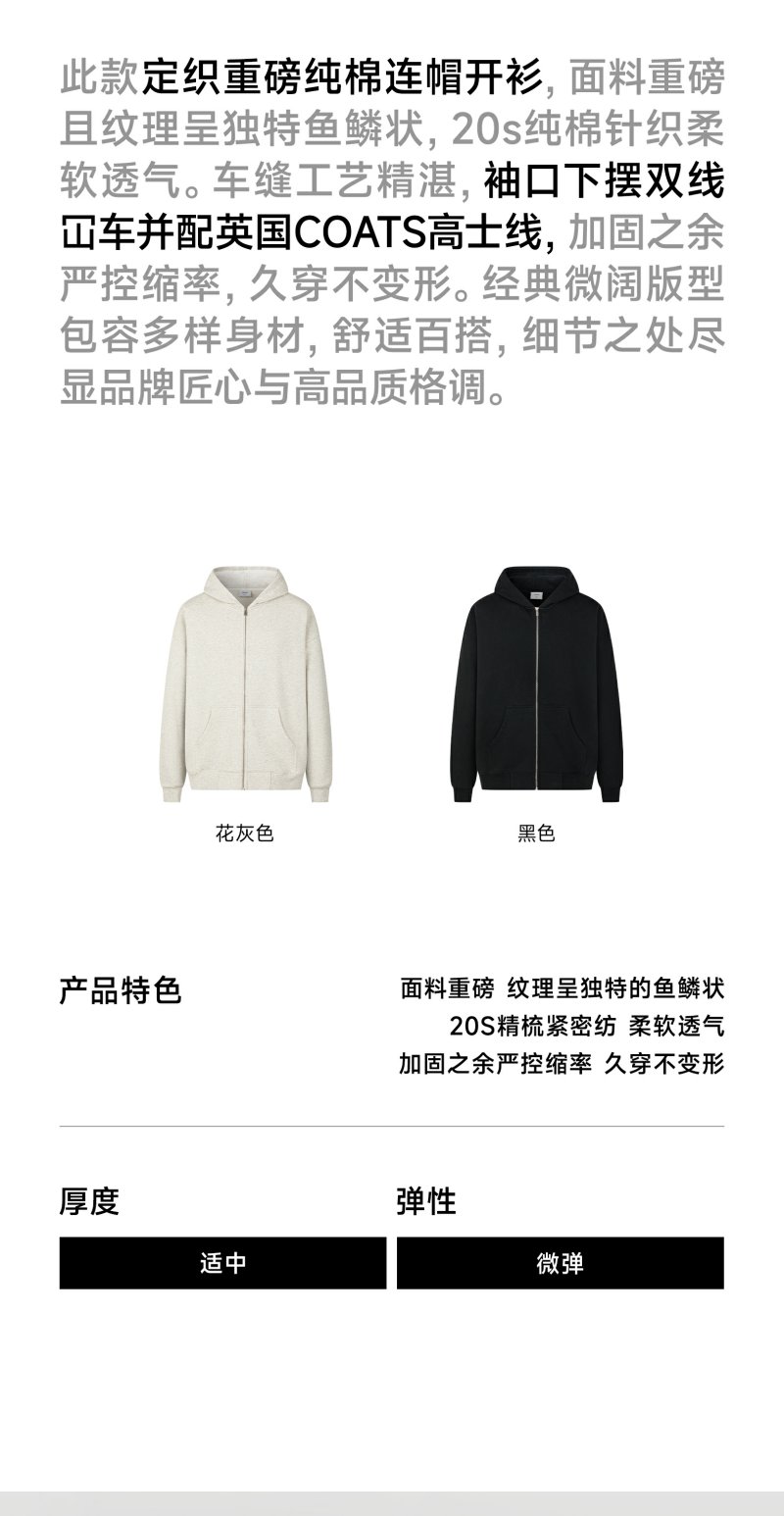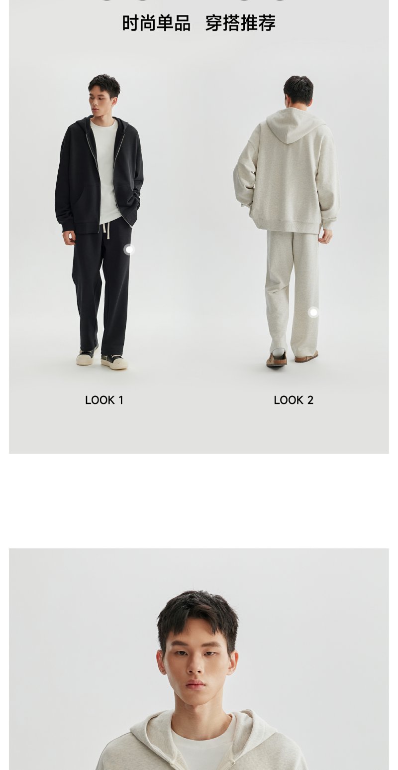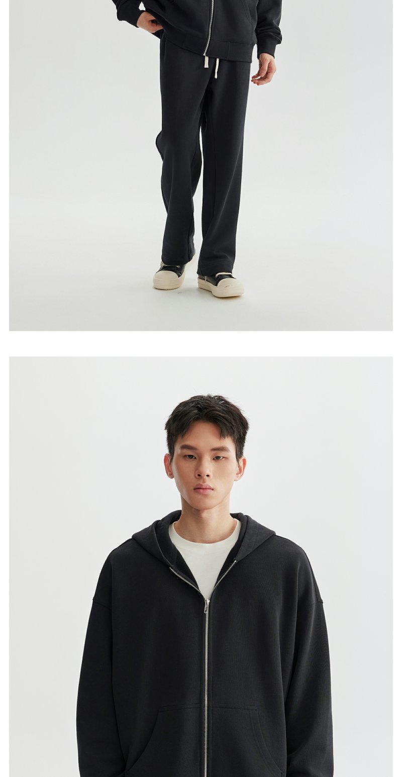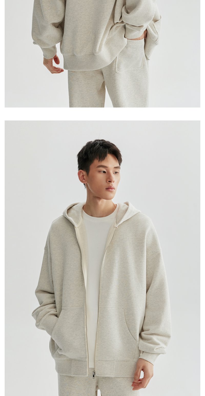 CHINISM赤尘 花灰色连帽开衫卫衣男秋季重磅纯棉宽松休闲拉链外套