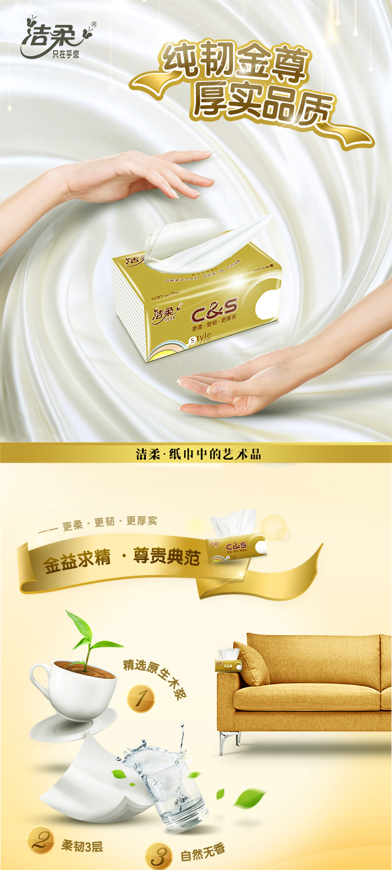 洁柔金尊原生木浆抽纸3层100抽