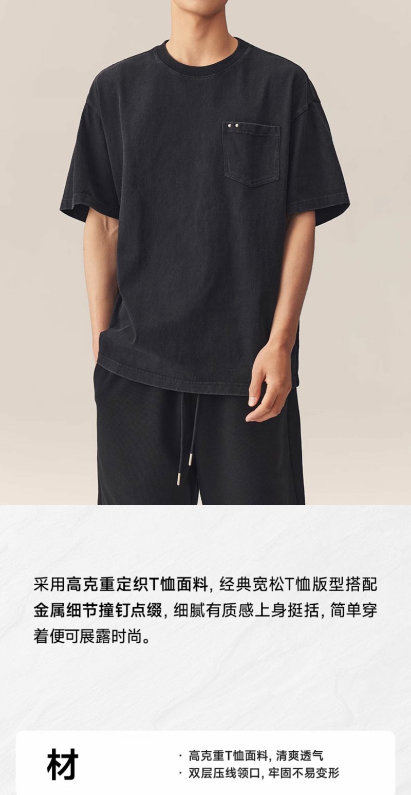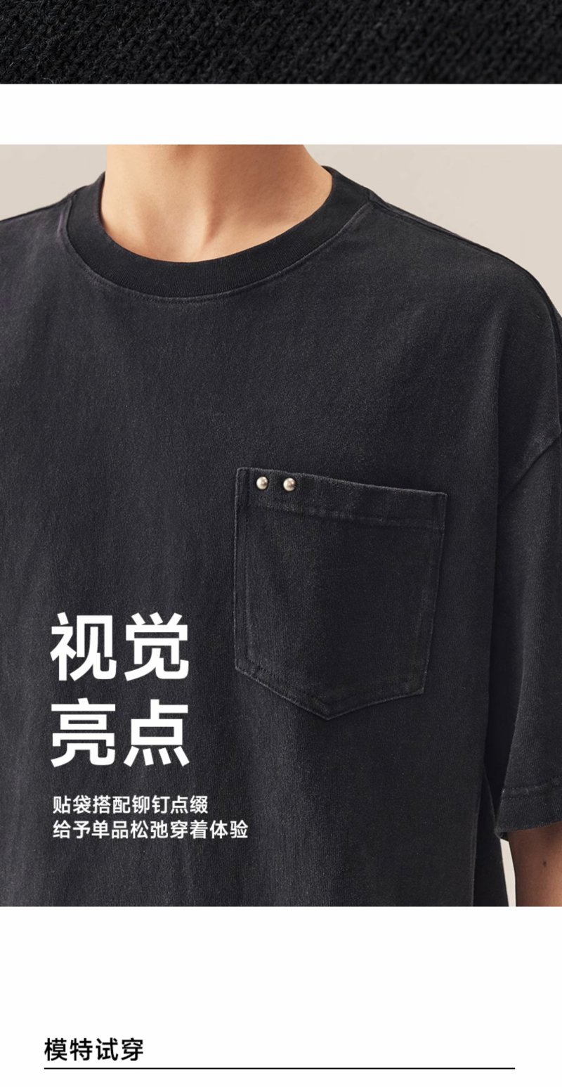 CHINISM赤尘 水洗纯棉t恤男夏季新款重磅潮流男士休闲宽松短袖