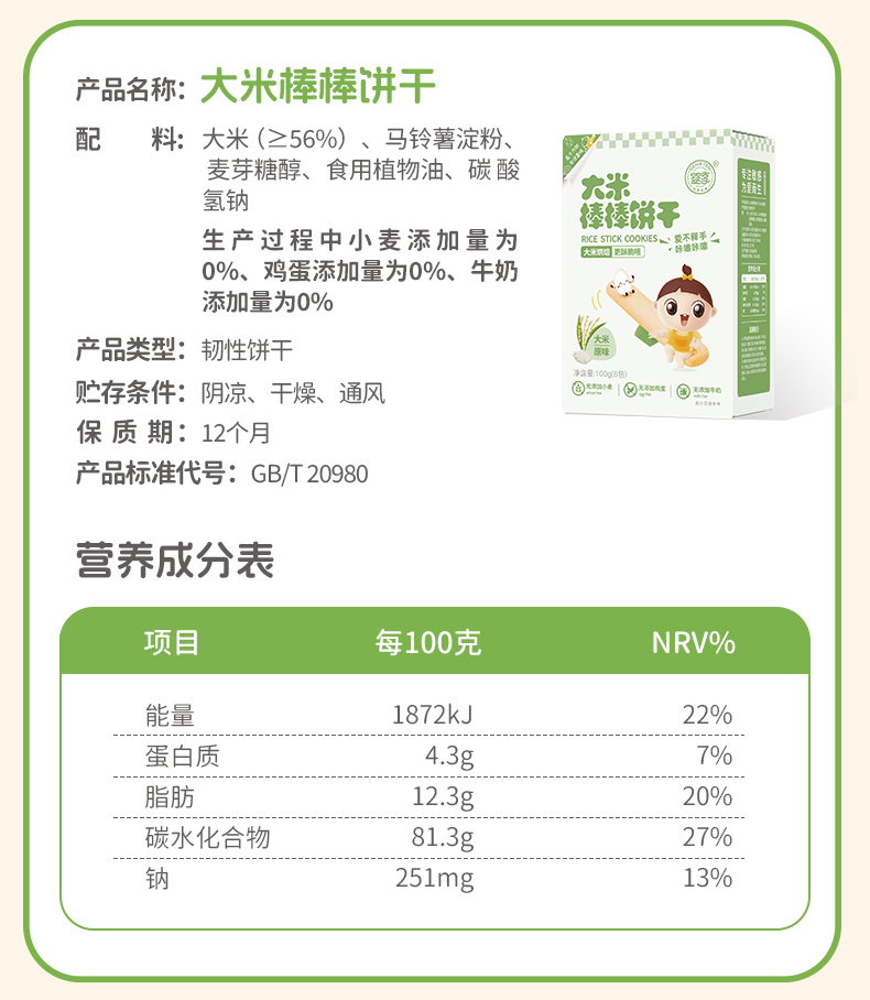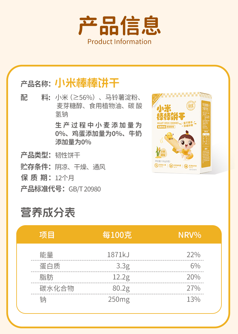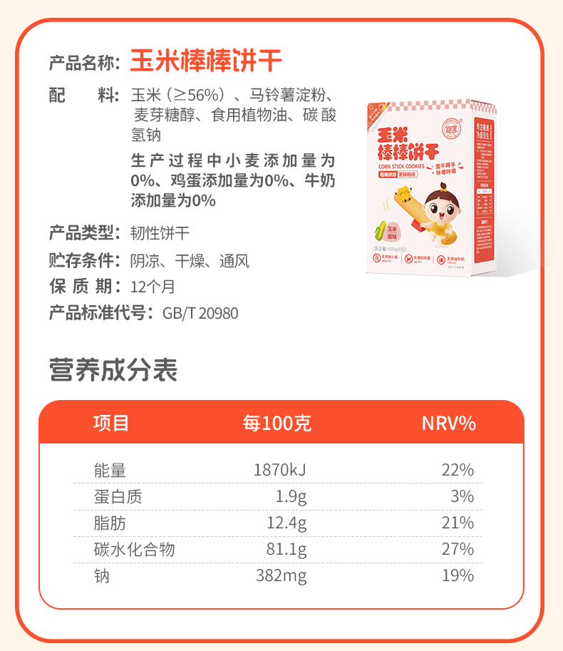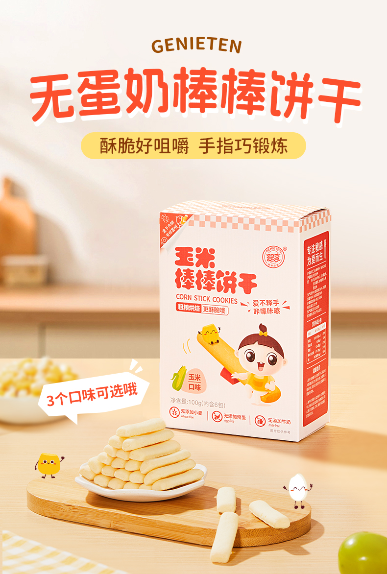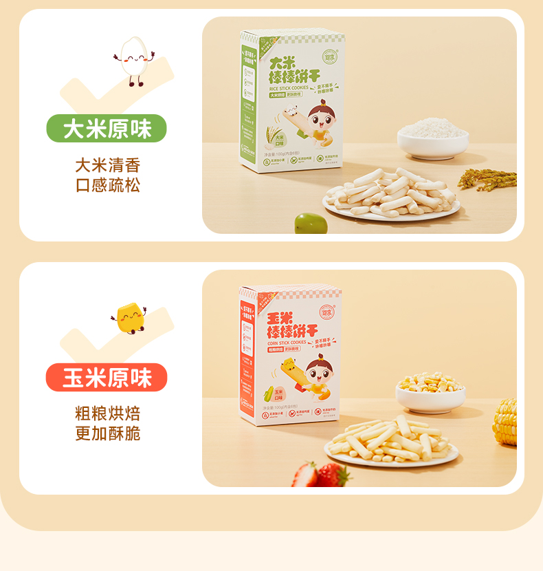 婴享玉米棒棒饼干小米大米口水棒无蛋奶无麸质敏感孩子零食独立小包装送婴幼儿敏宝辅食电子食谱