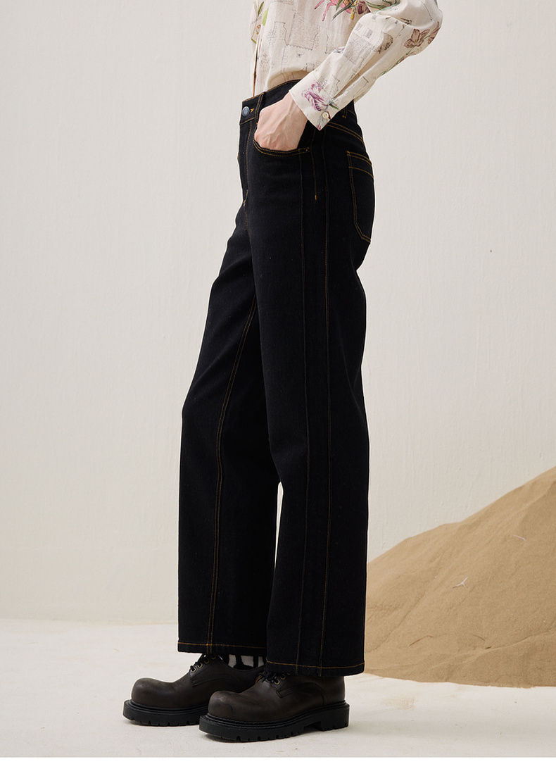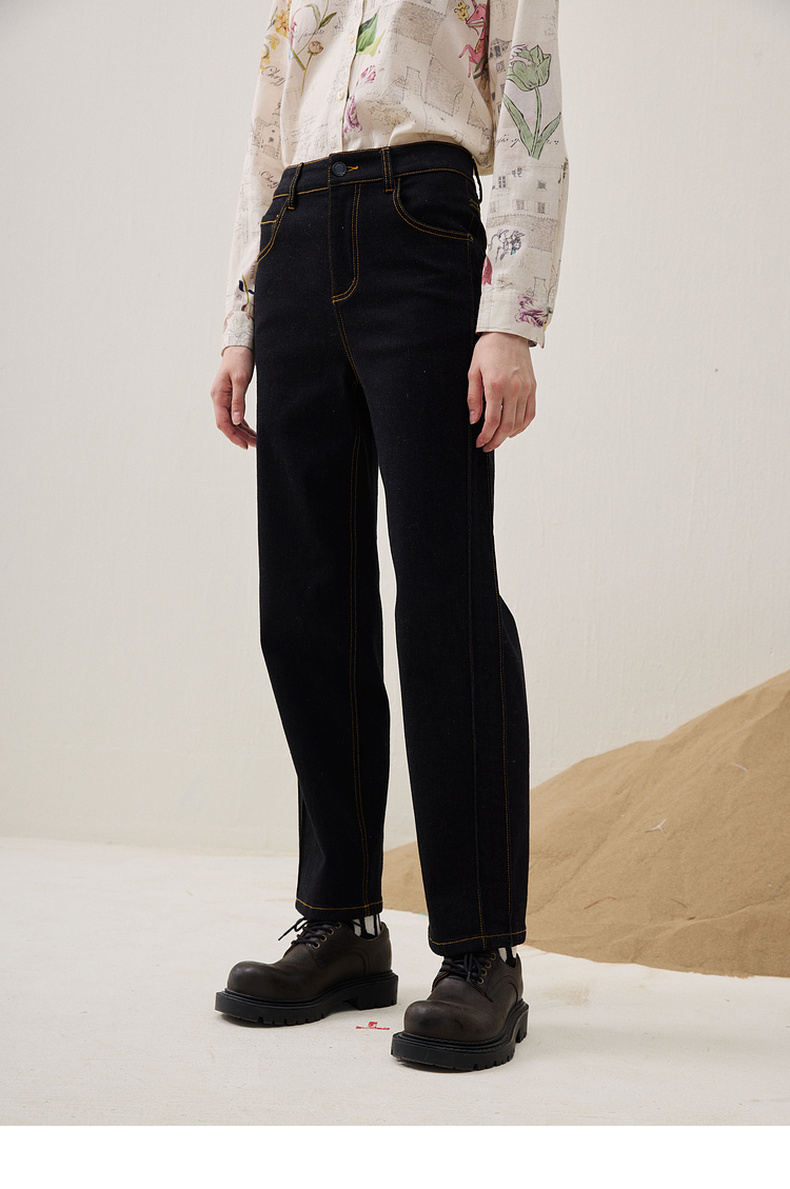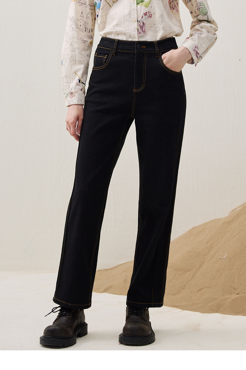 谜底直筒牛仔裤长裤2025冬新品黑牛洗水百搭磨毛保暖女254MJ1458