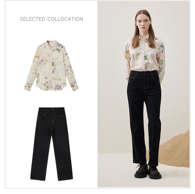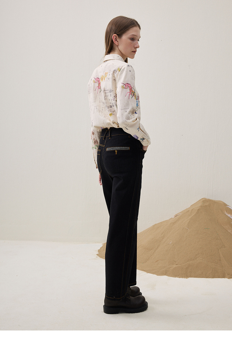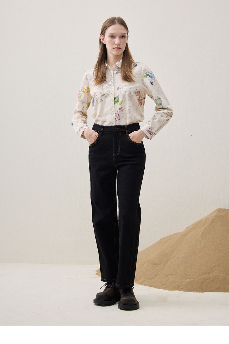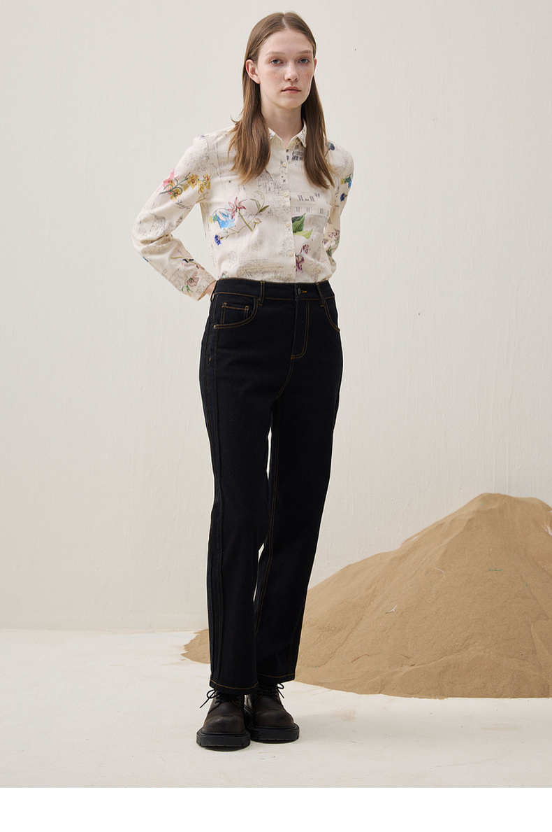 谜底直筒牛仔裤长裤2025冬新品黑牛洗水百搭磨毛保暖女254MJ1458
