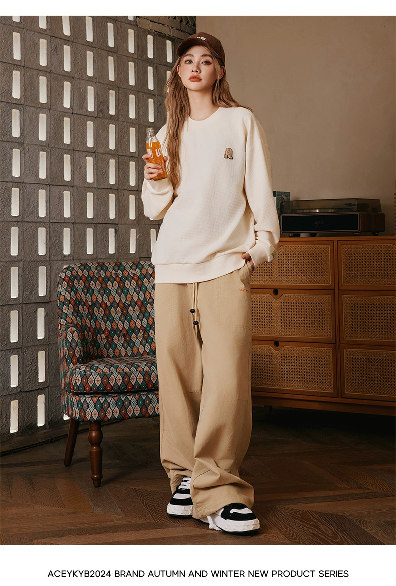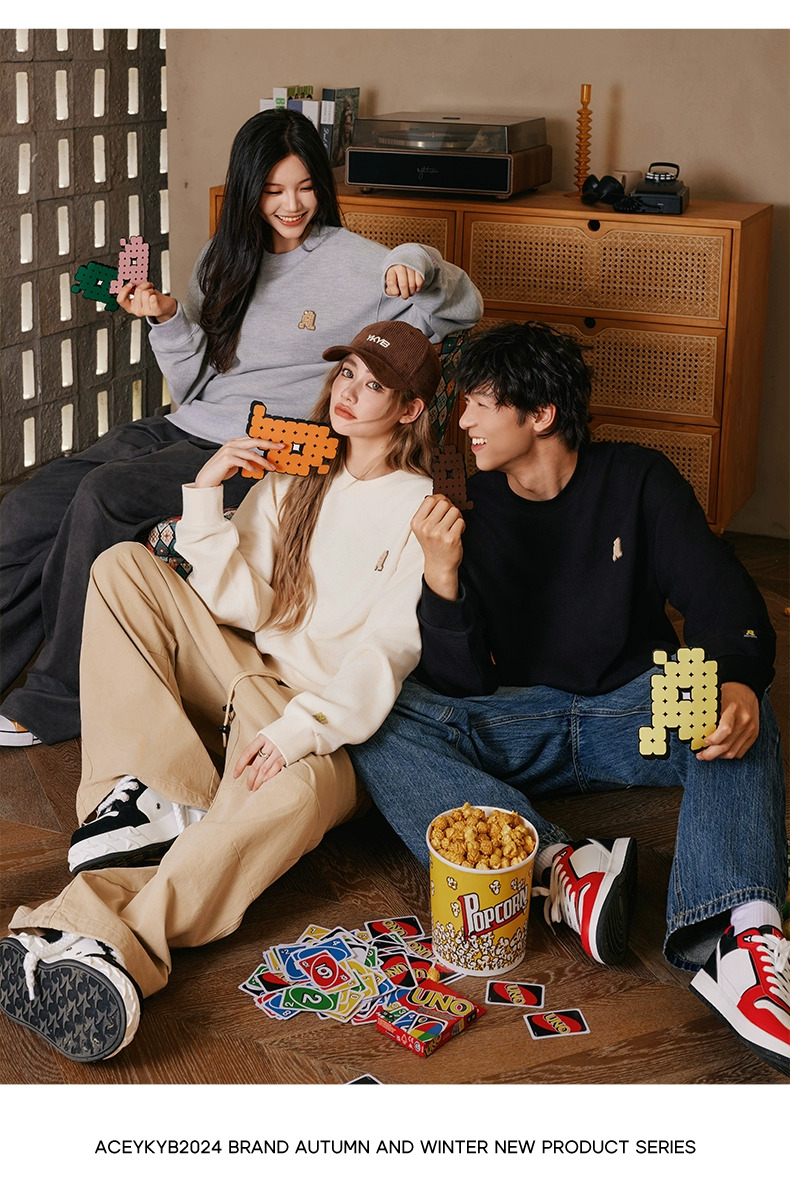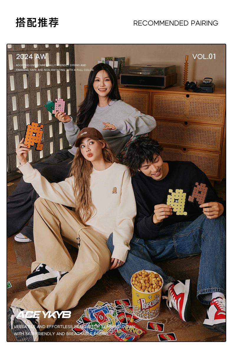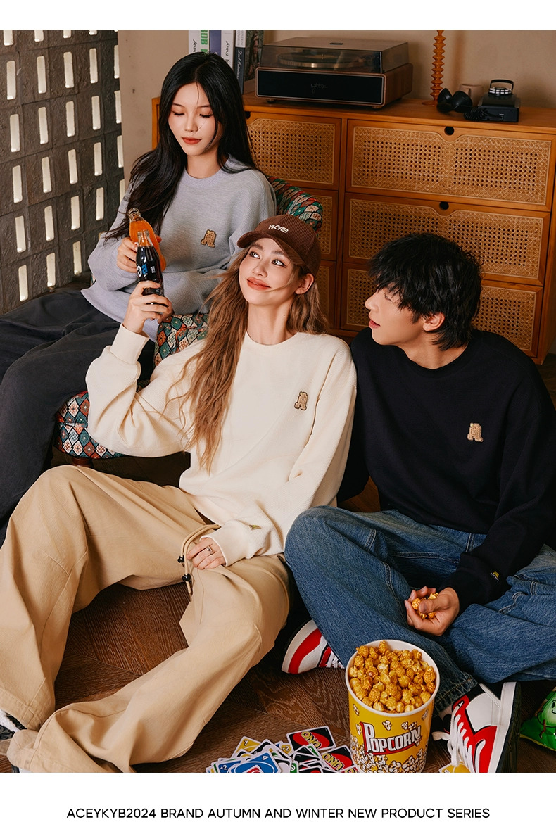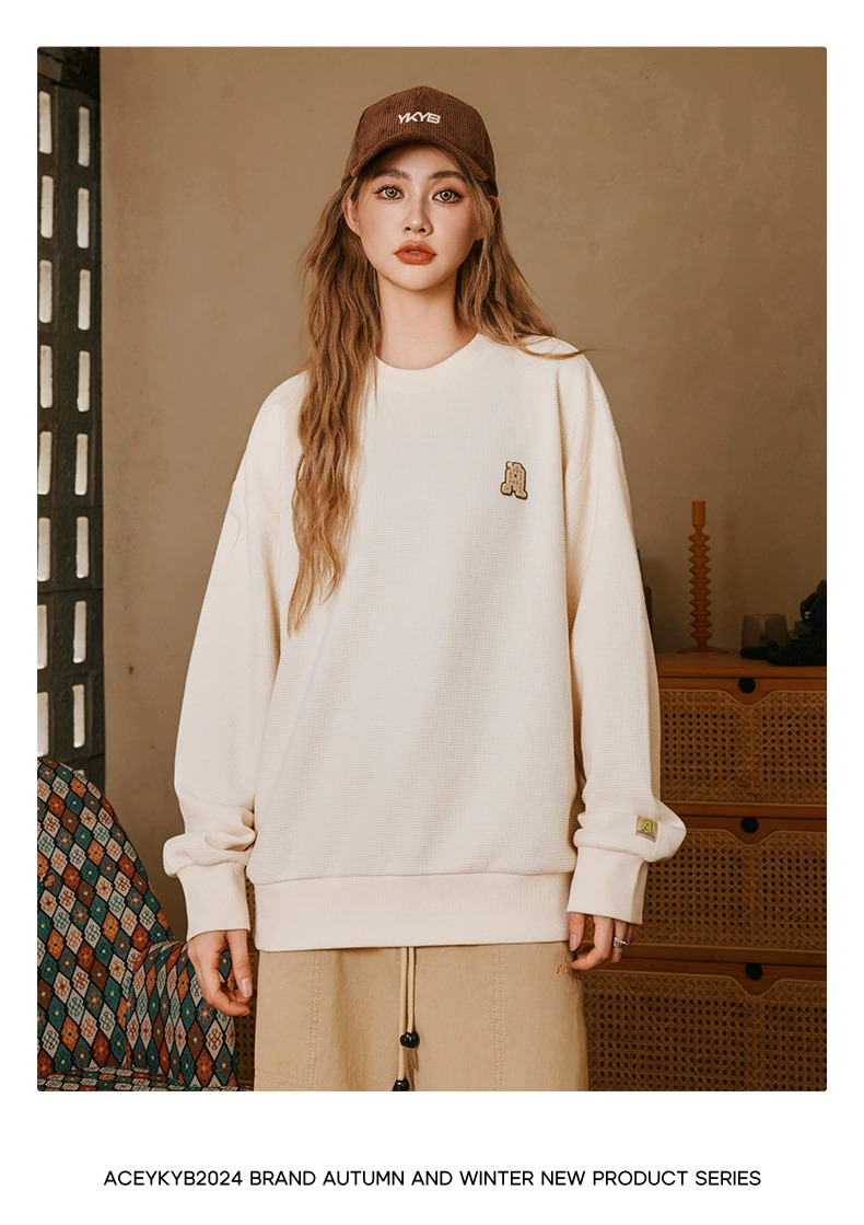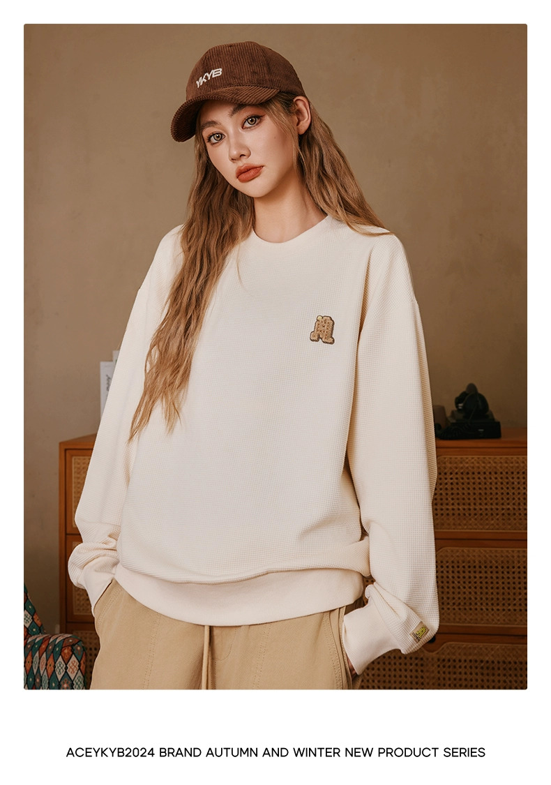 YKYB黄子韬官方店华夫格情侣圆领套头卫衣秋季新款长袖上衣潮