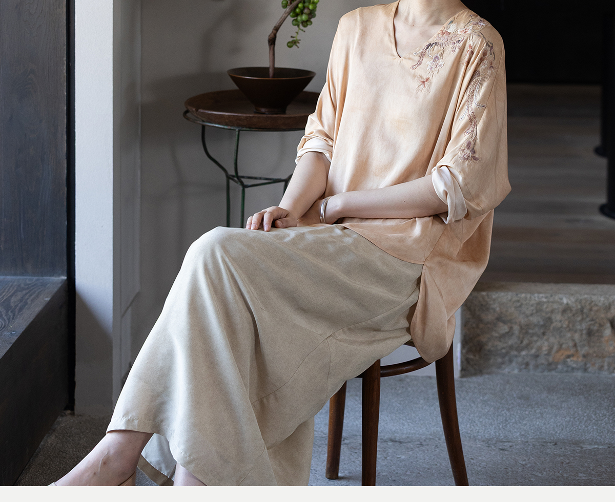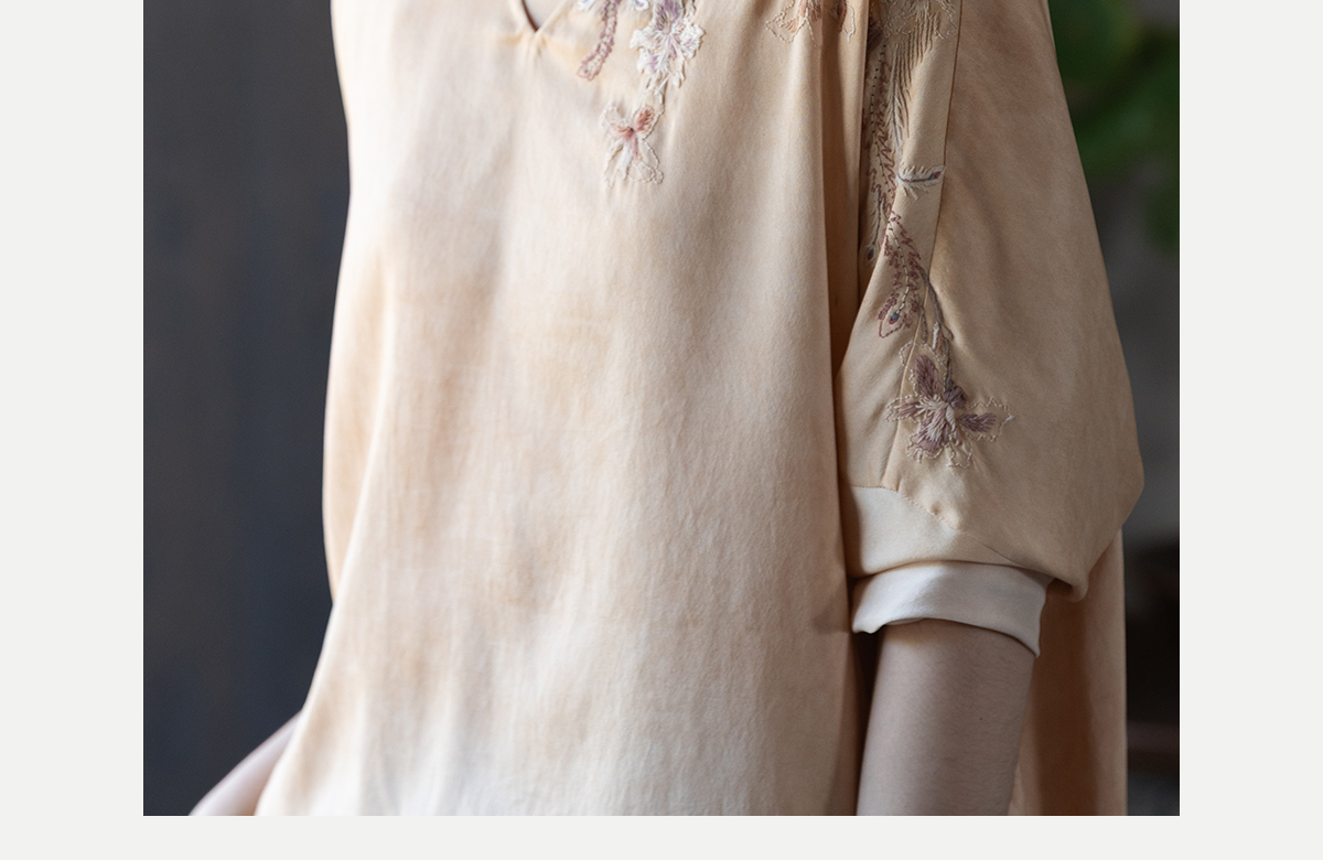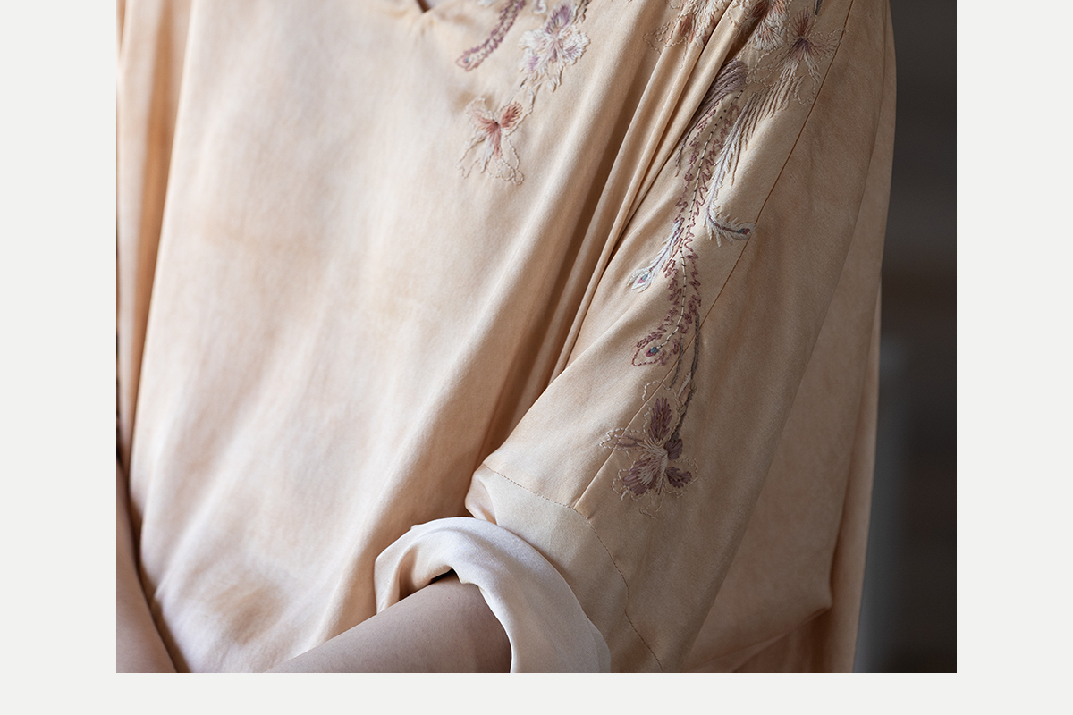 牧衣游原创 重磅22姆米精工刺绣真丝套头衫宽松复古上衣 落人衣