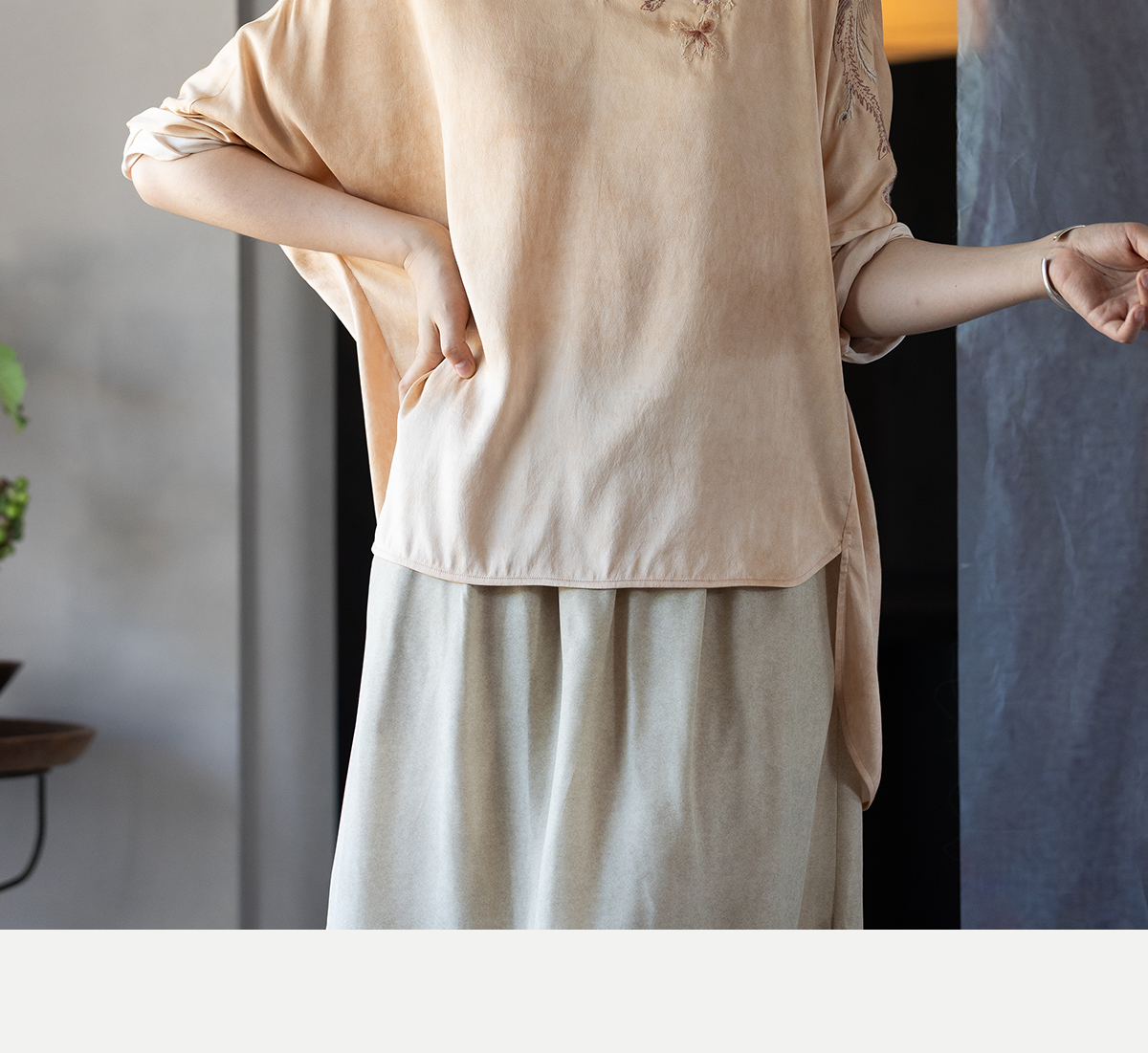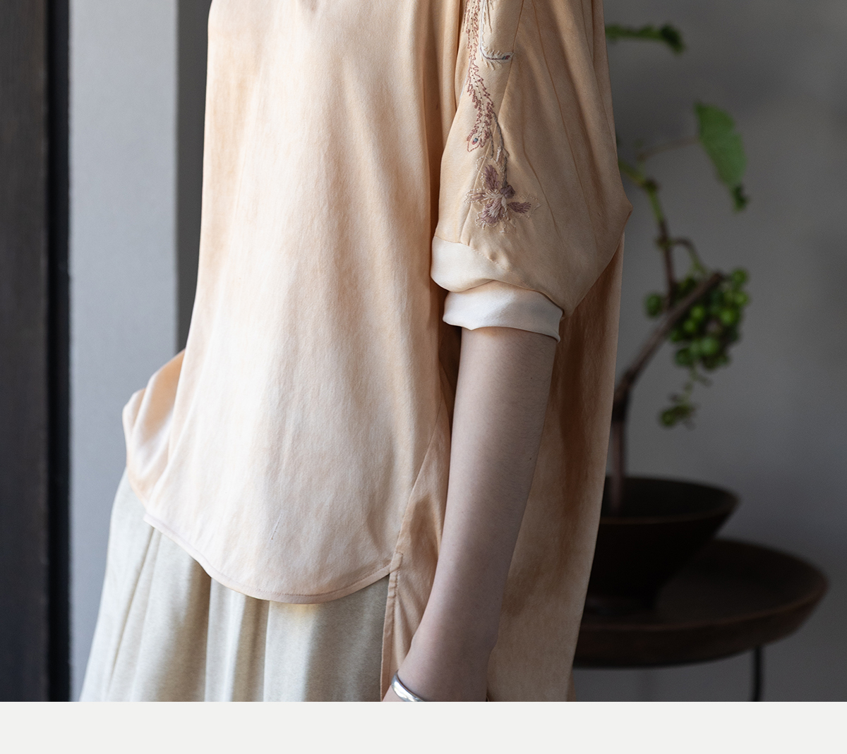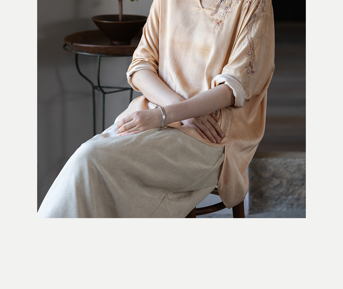 牧衣游原创 重磅22姆米精工刺绣真丝套头衫宽松复古上衣 落人衣