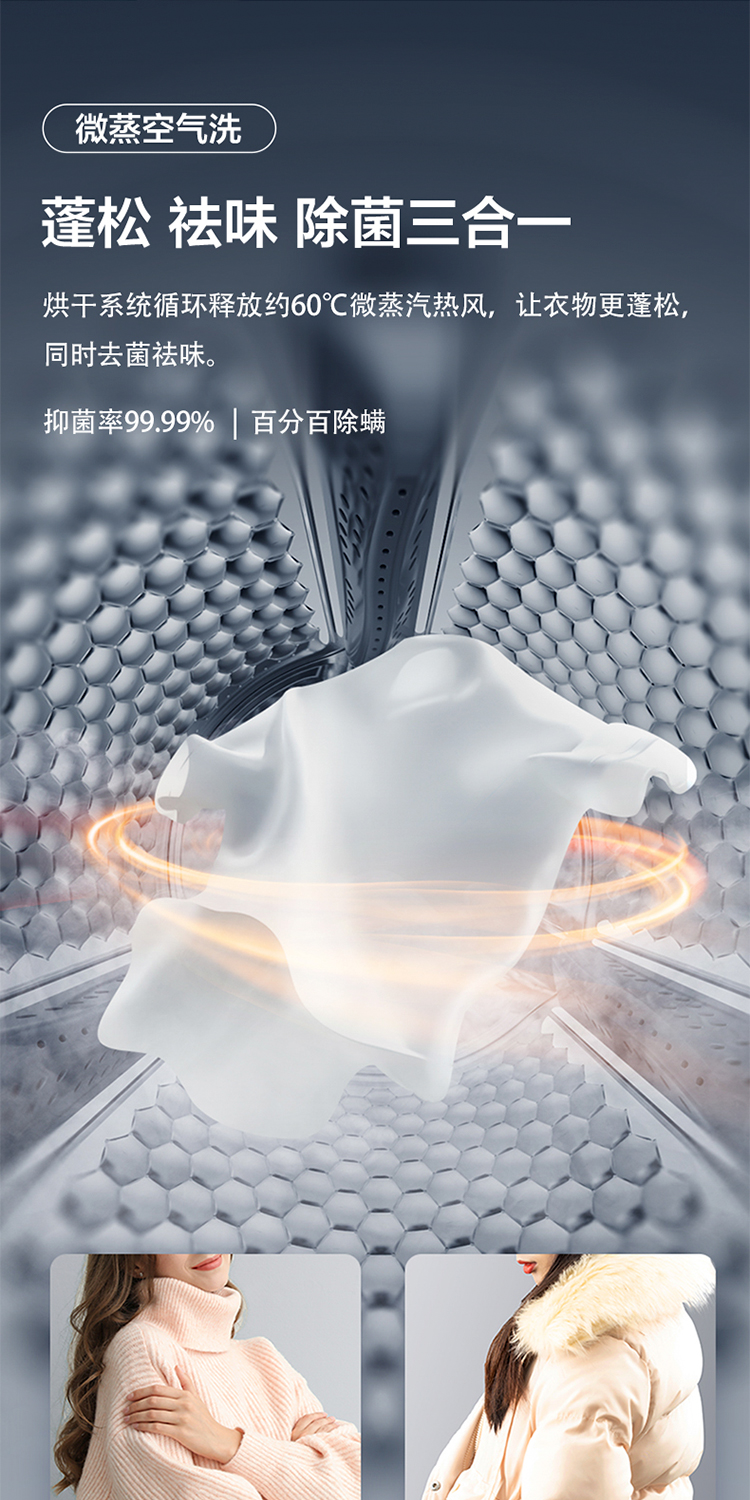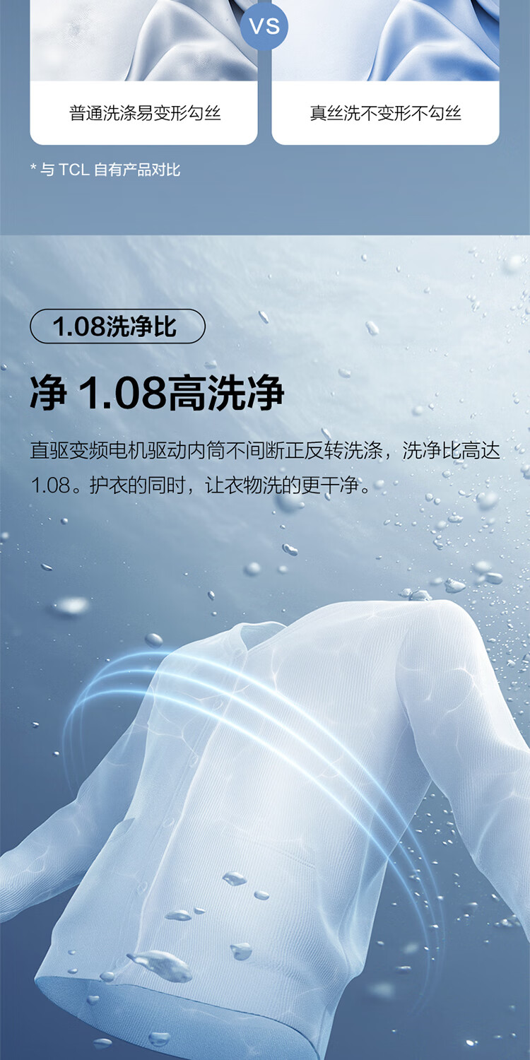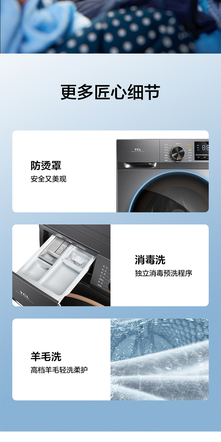 TCL 10公斤纤薄洗烘滚筒 DD直驱变频 575mm纤薄机身 低温柔烘 G100F12S-HD星耀灰(线下同款)