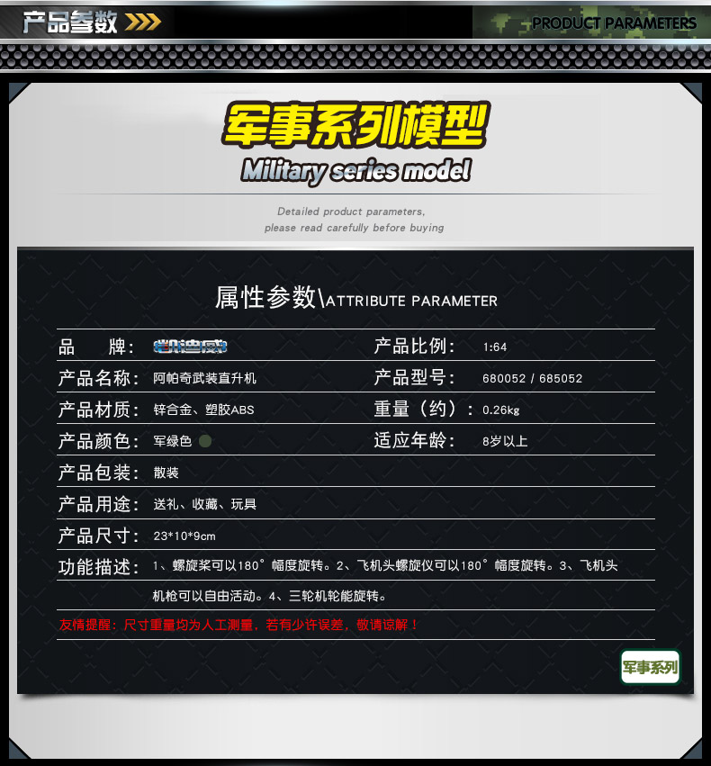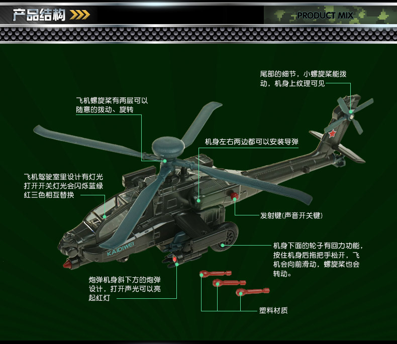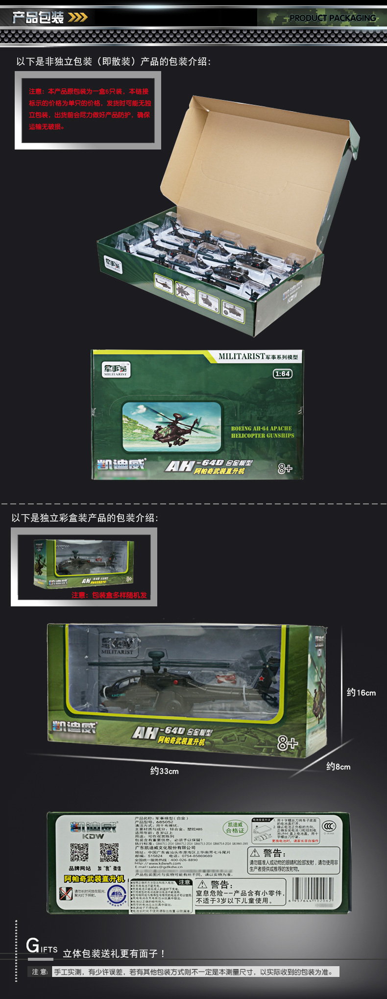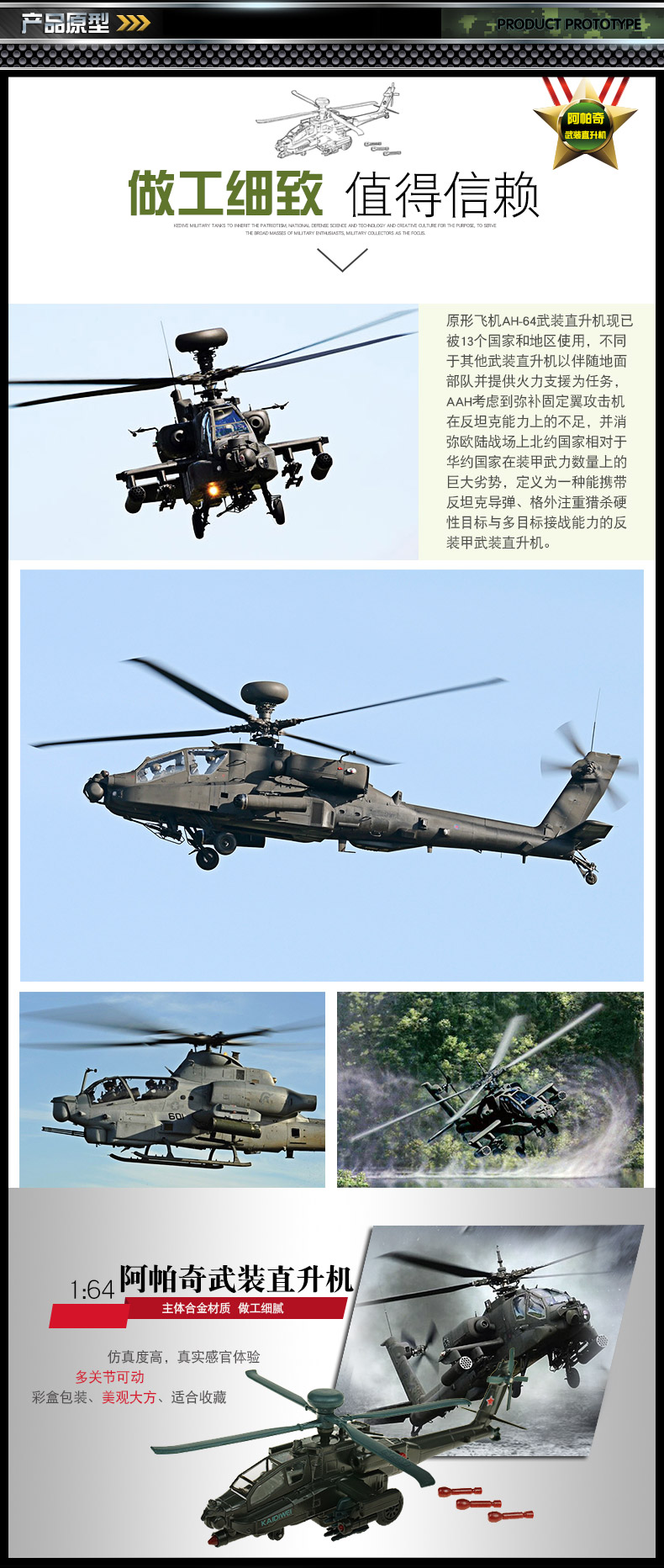 凯迪威KDW 美国AH-64D“阿帕奇””直升飞机(1:64) 685052