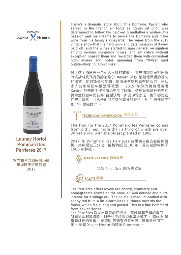 罗内胡利欧酒庄玻玛佩里埃园干红葡萄酒 2017 Launay Horiot Pommard Perrieres