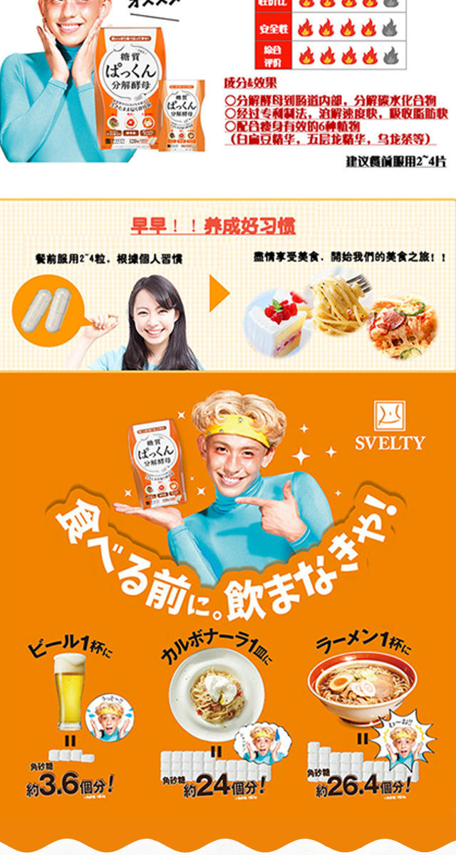【瘦!瘦!瘦!】日本SVELTY丝蓓缇pakkun糖质分解酵母生成酵素120粒