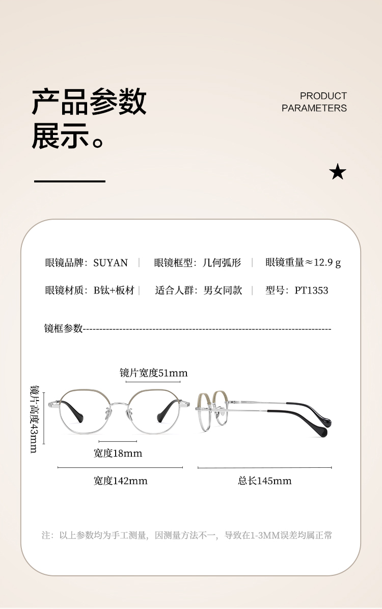 普莱斯SUYAN PT1353光学镜架 缤纷多彩的水果色与眼镜梦幻联动 重工4.0钛板材质 男女通用 四色可选