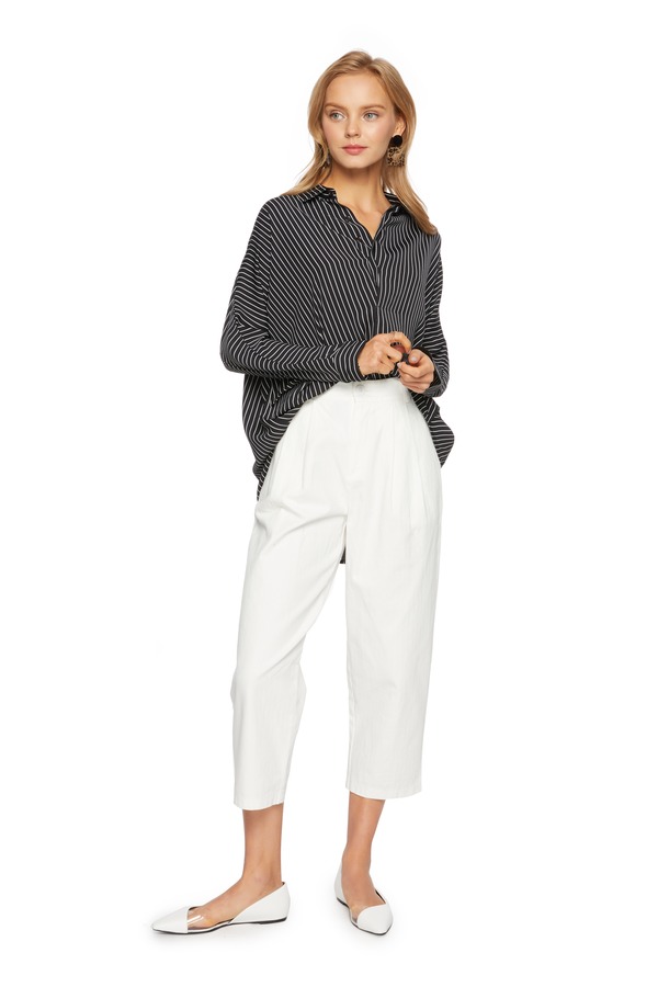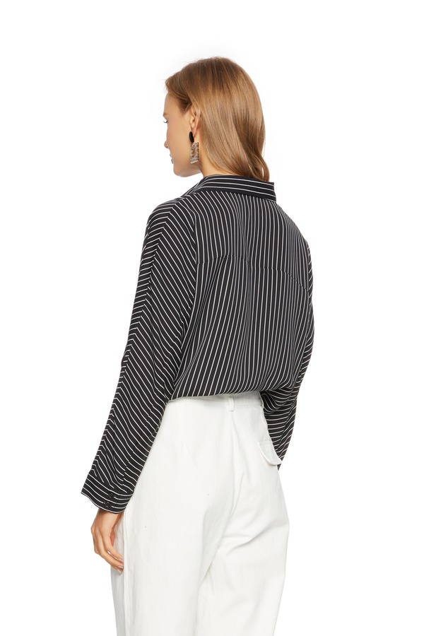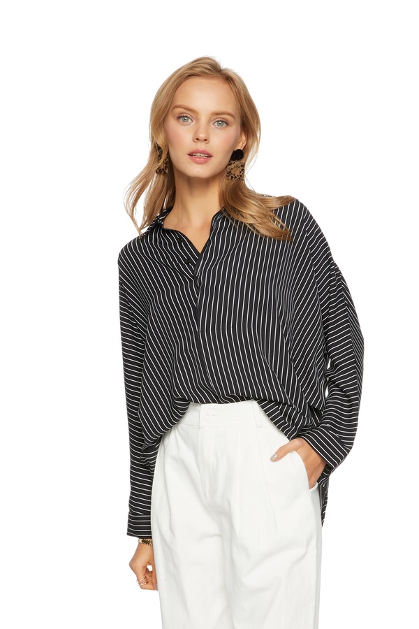 AVA 不规则黑白条纹衬衫 5696
