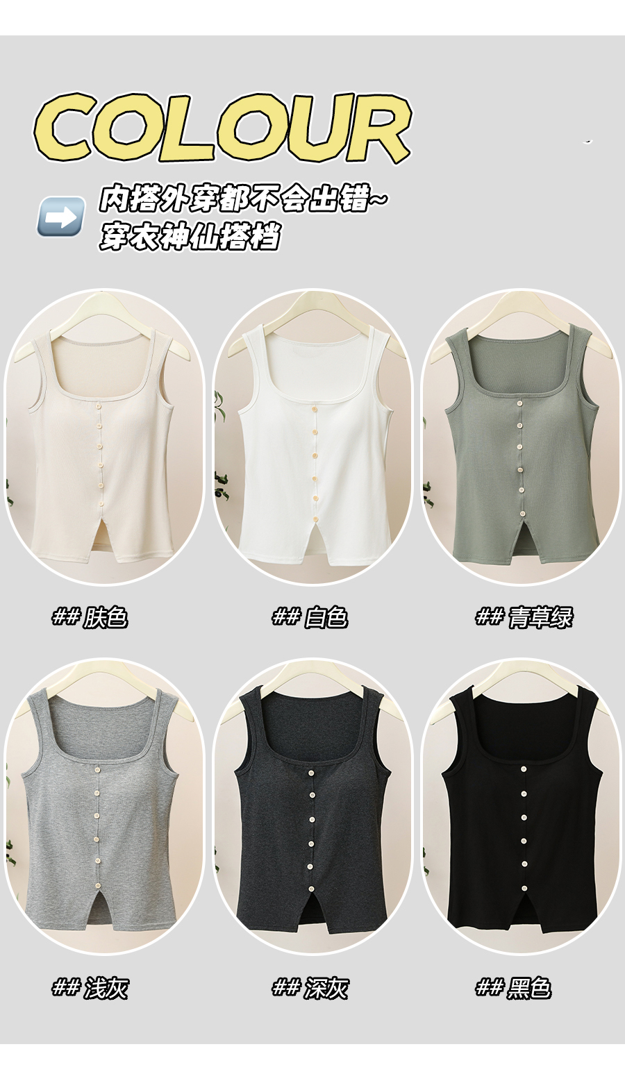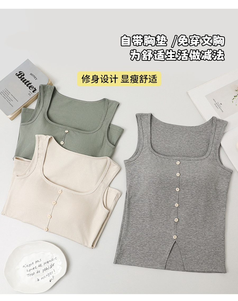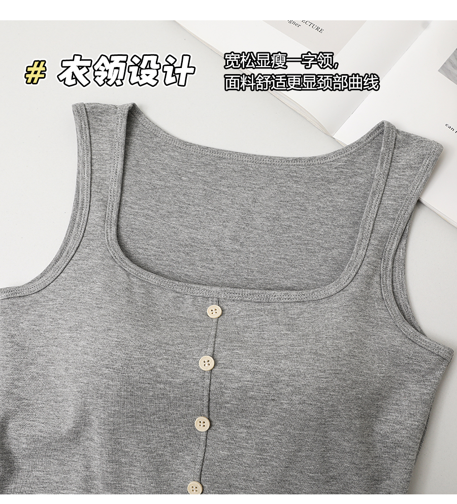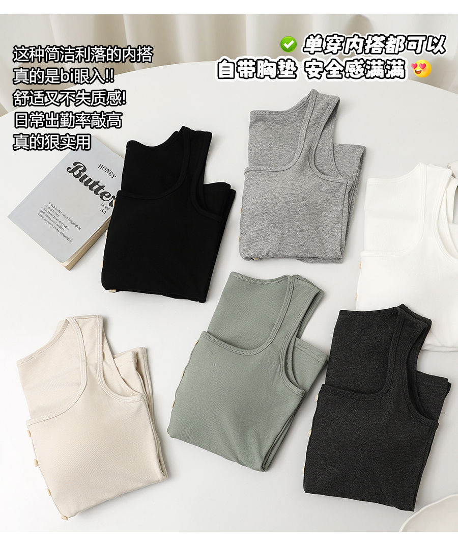 【99元2件】女士宽肩一字领带纽扣背心外穿吊带背心(带胸垫)【FF25510】