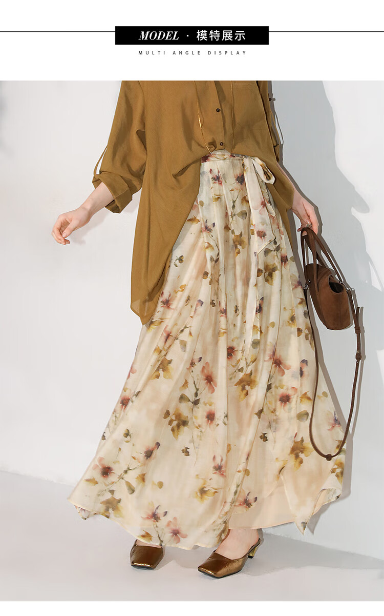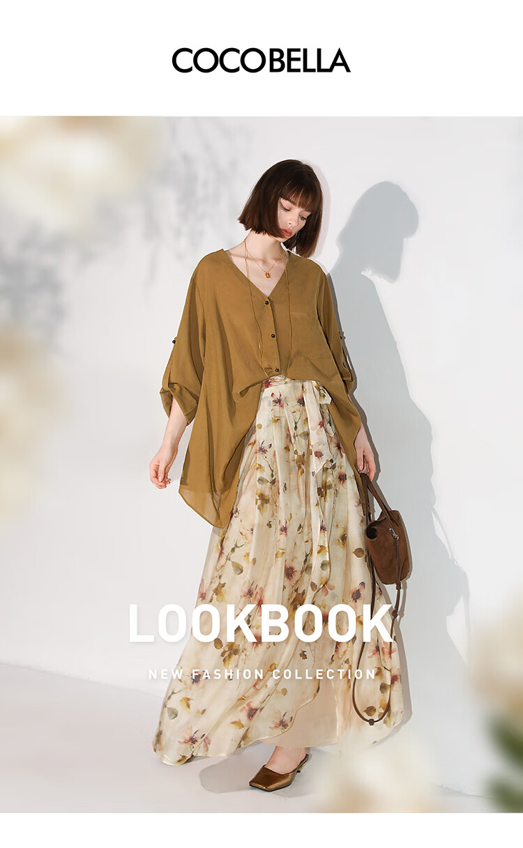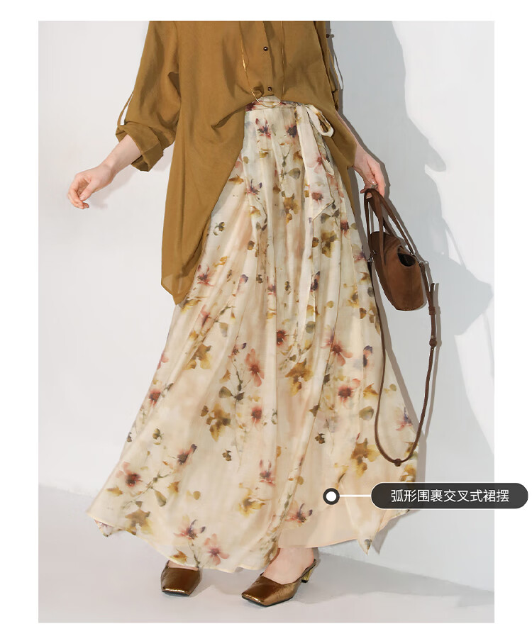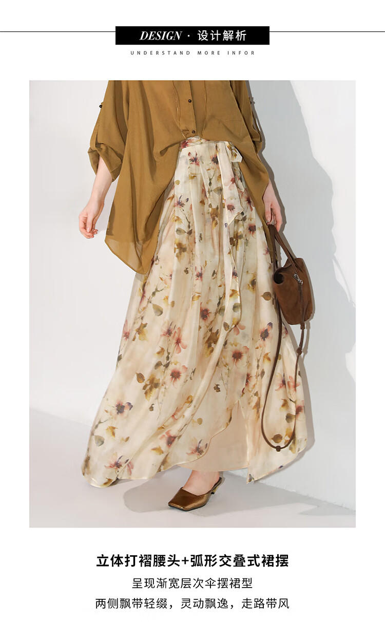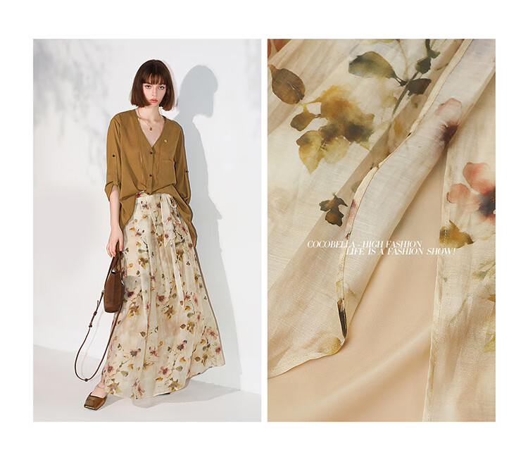 【限时秒杀】COCOBELLA炒色写意花卉莱赛尔半身裙设计感度假风长裙HS0053-2