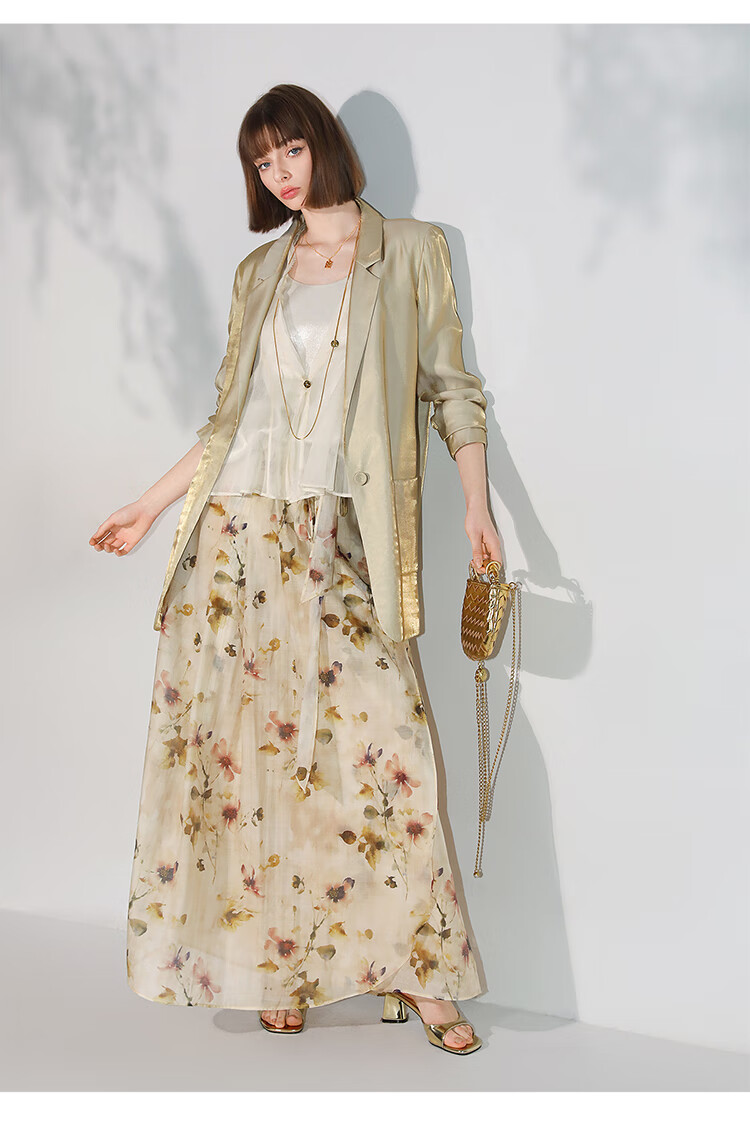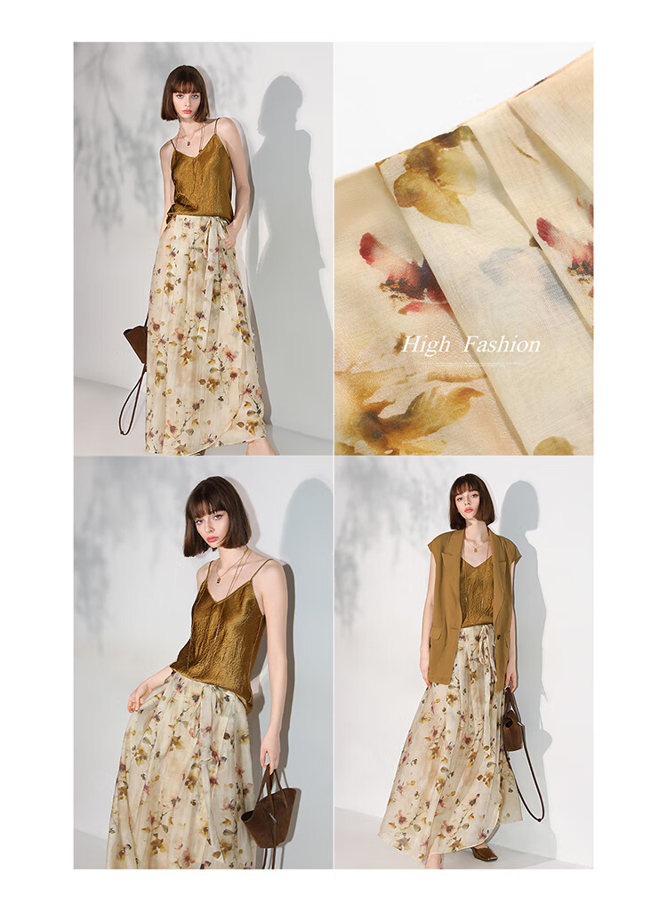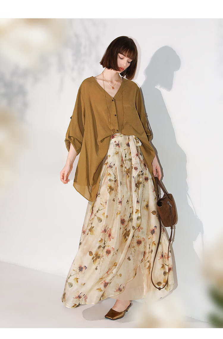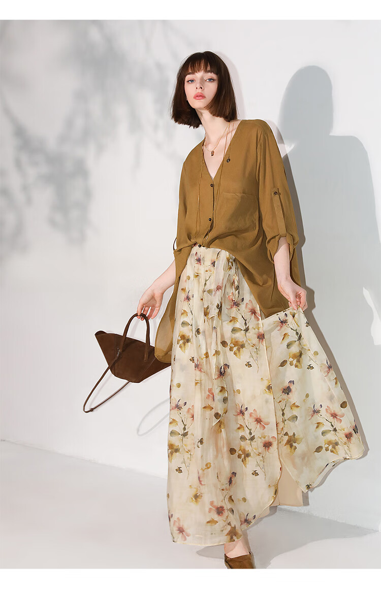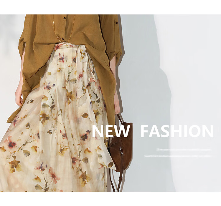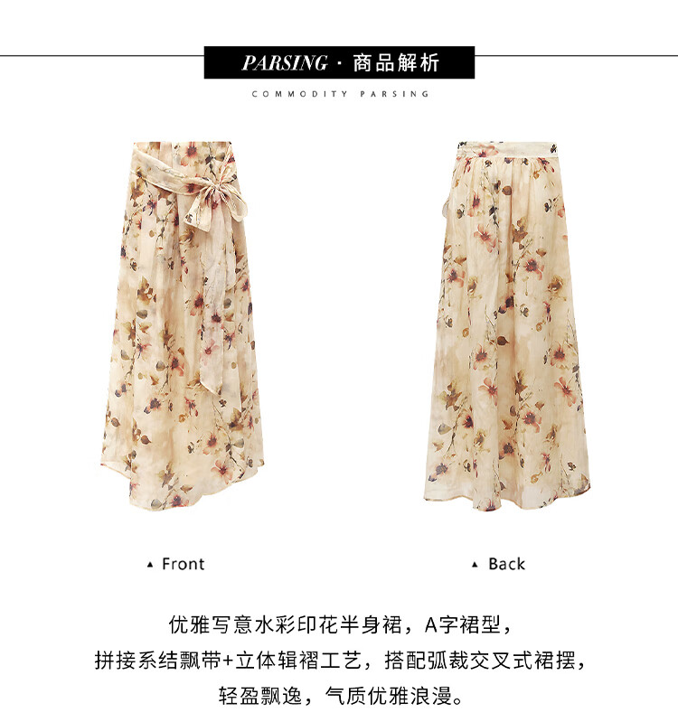 【限时秒杀】COCOBELLA炒色写意花卉莱赛尔半身裙设计感度假风长裙HS0053-2
