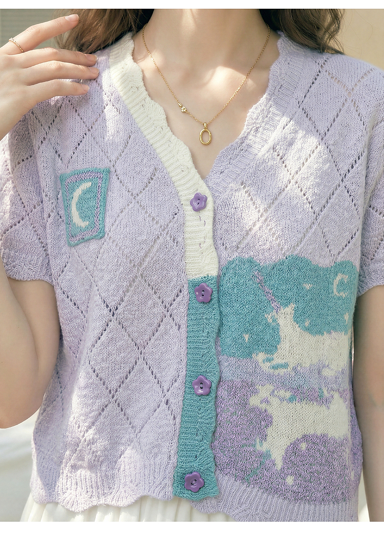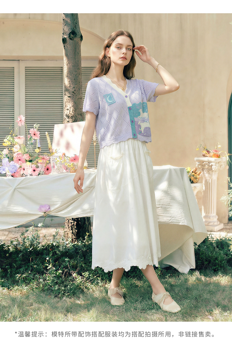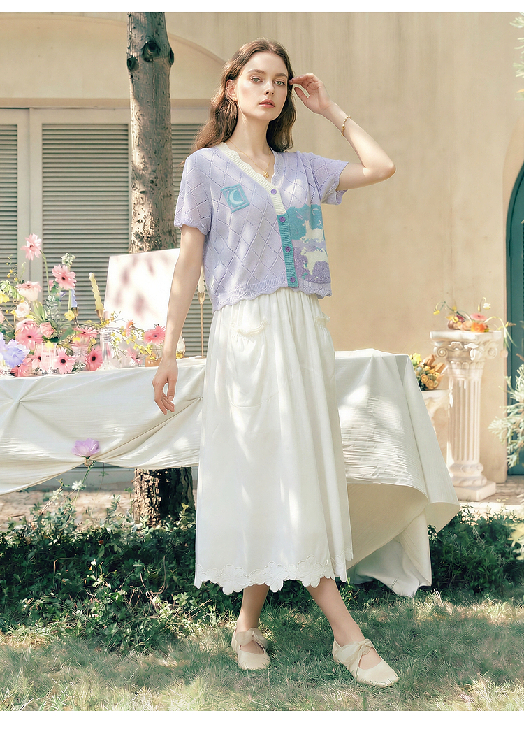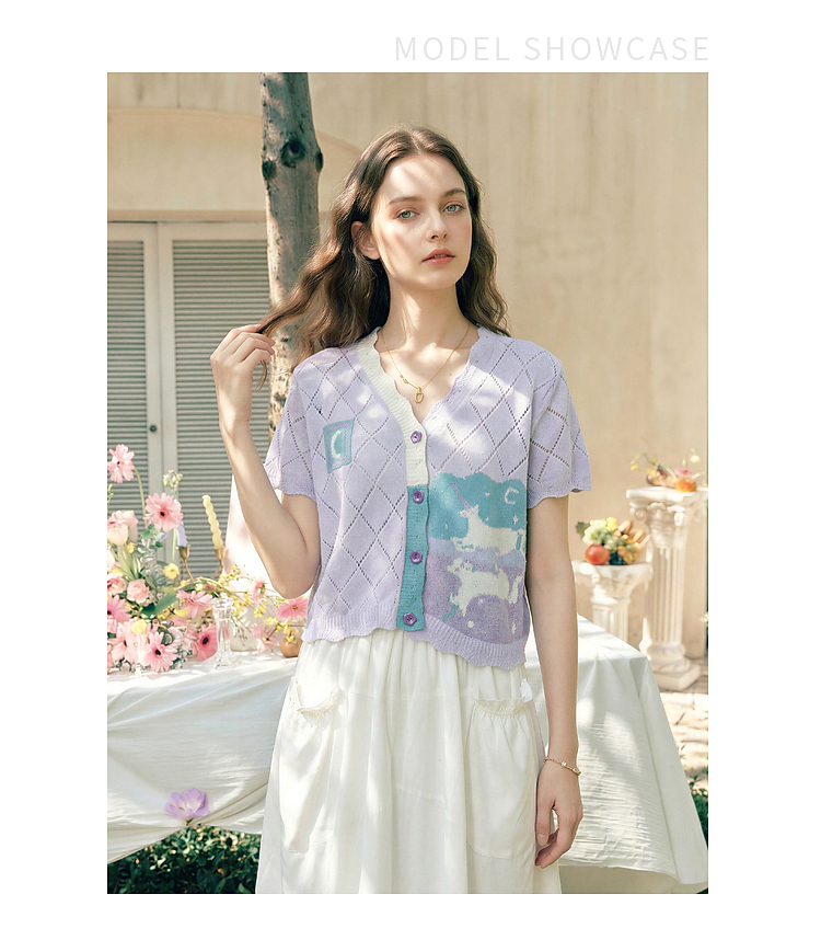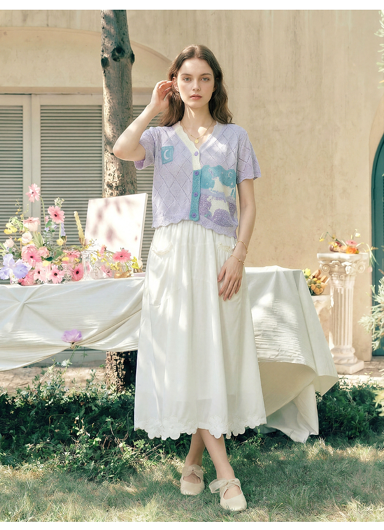 两三事淡彩纪事2026夏新款温柔风镂空菱形格毛巾绣短款针织开衫女