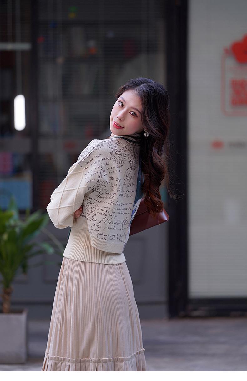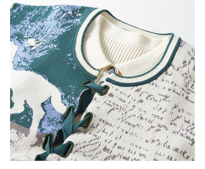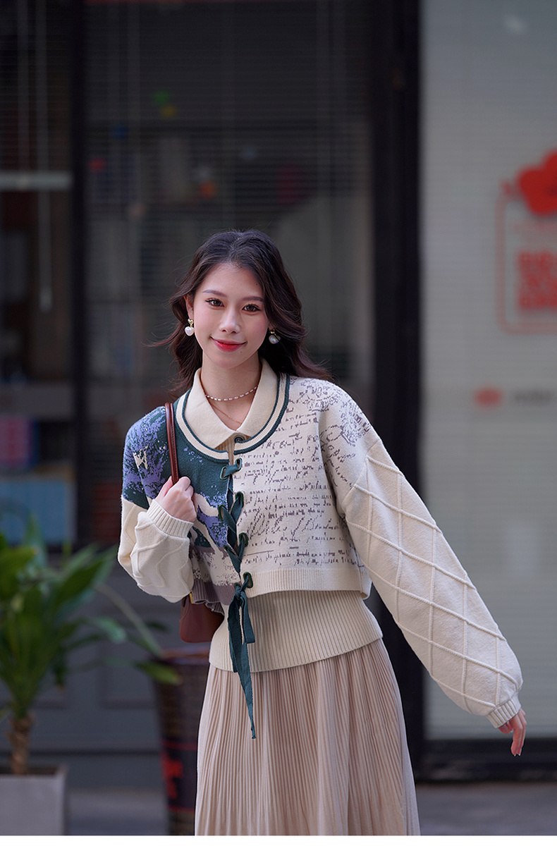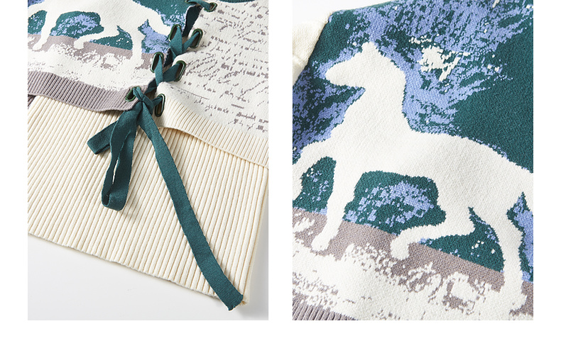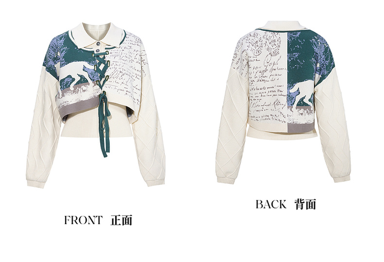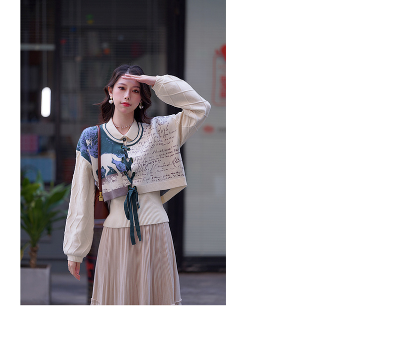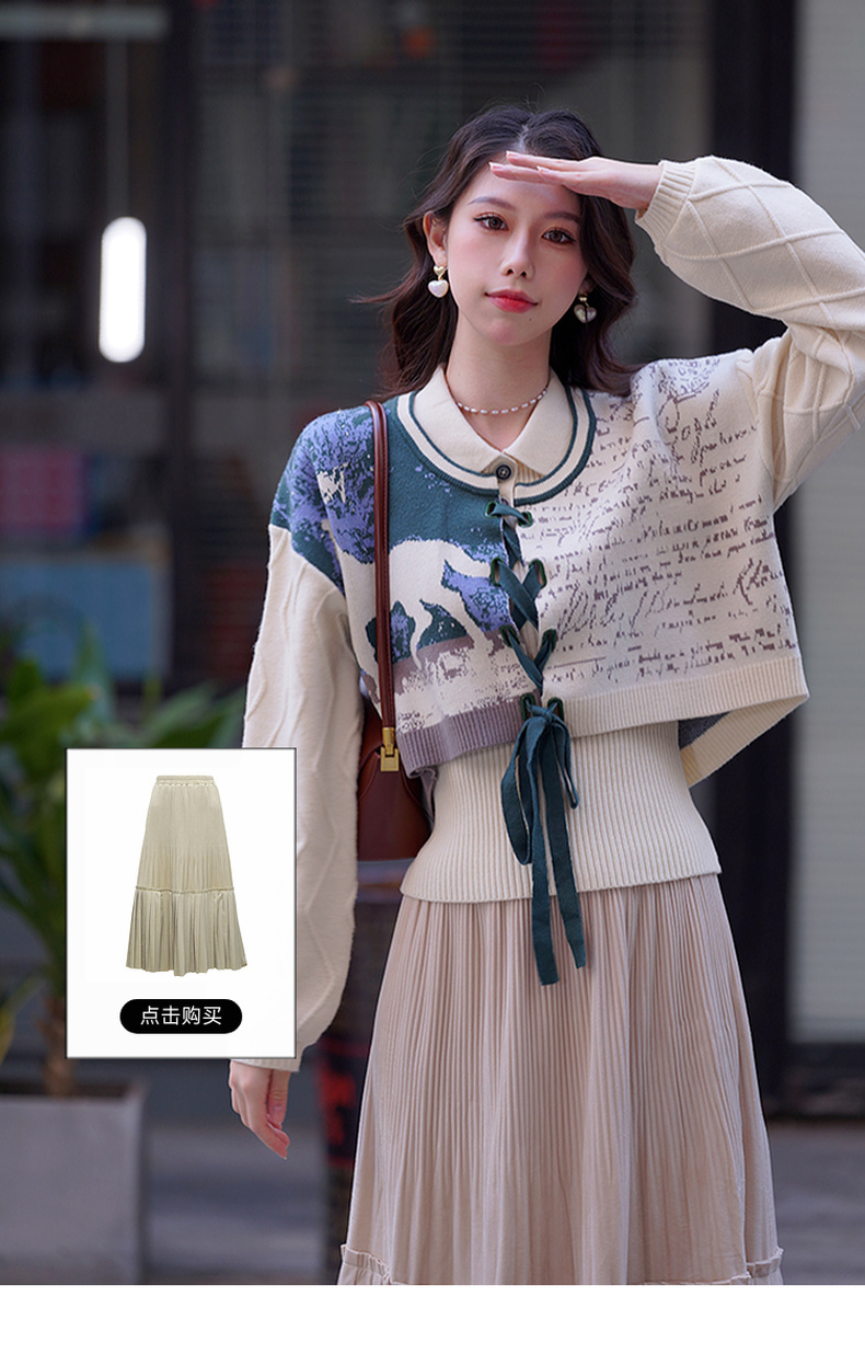 两三事梵高文艺脱缰野望动物图抽绳绑带两件套针织衫女
