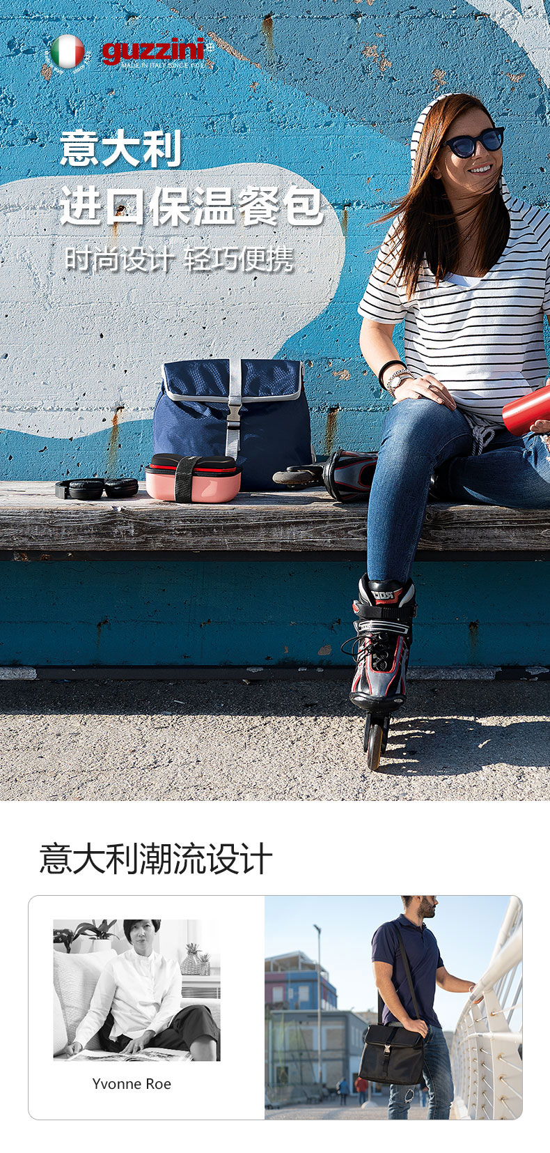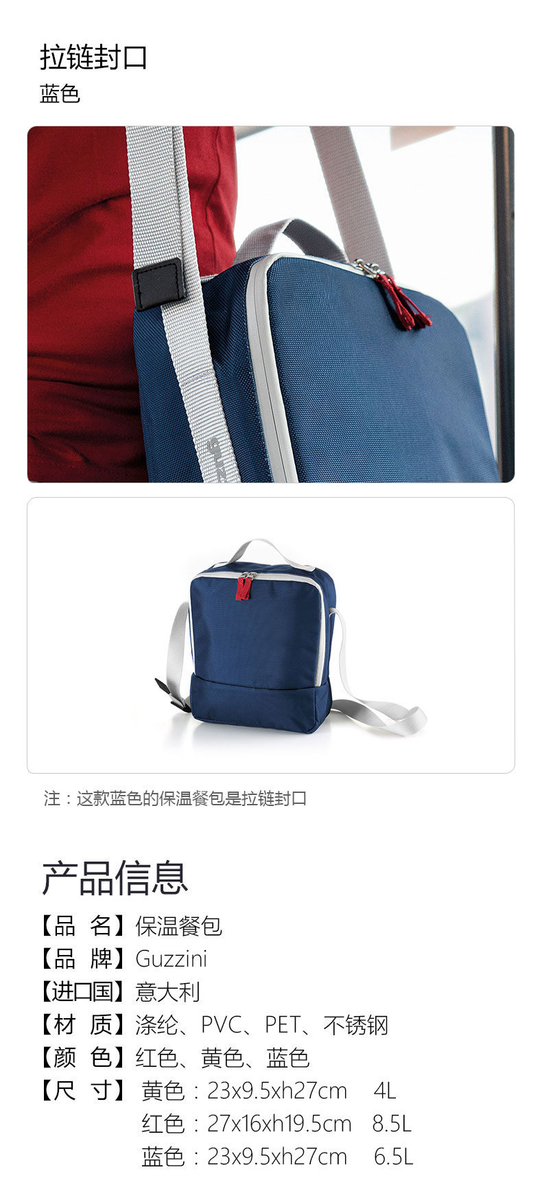 【防水涤纶面料 可单肩可斜跨】Guzzini意大利进口保温餐包 蓝色 23x9.5xh27cm 6.5L