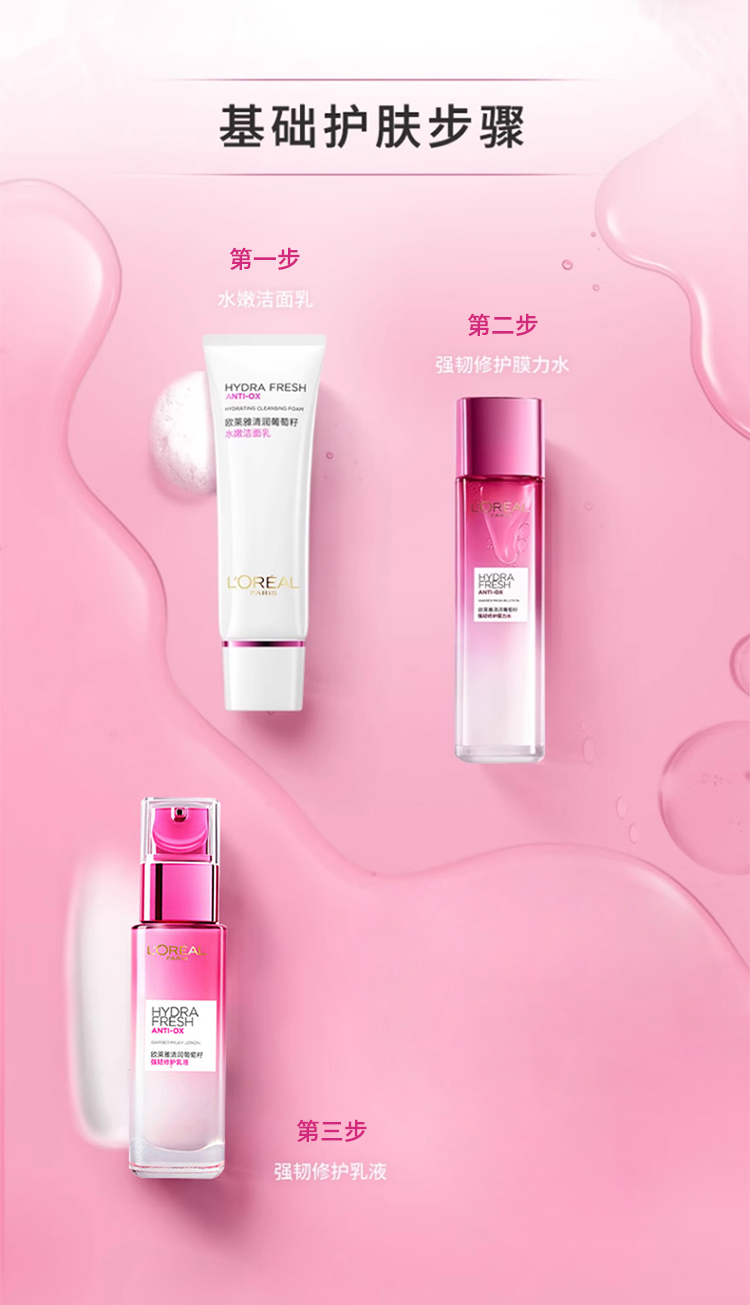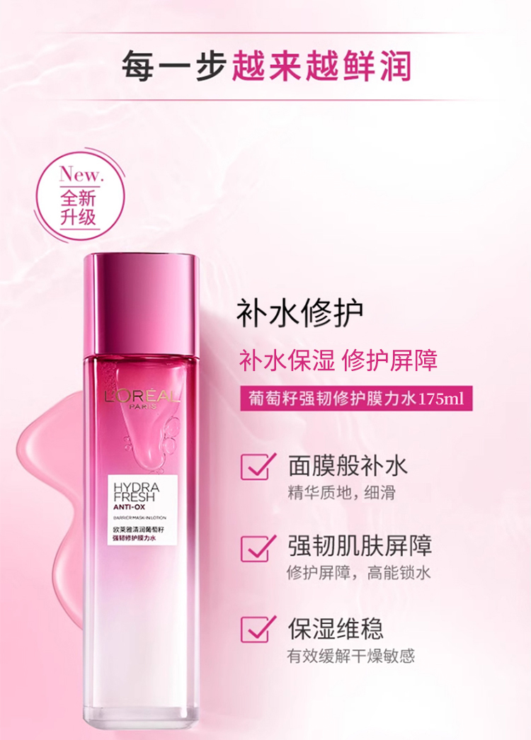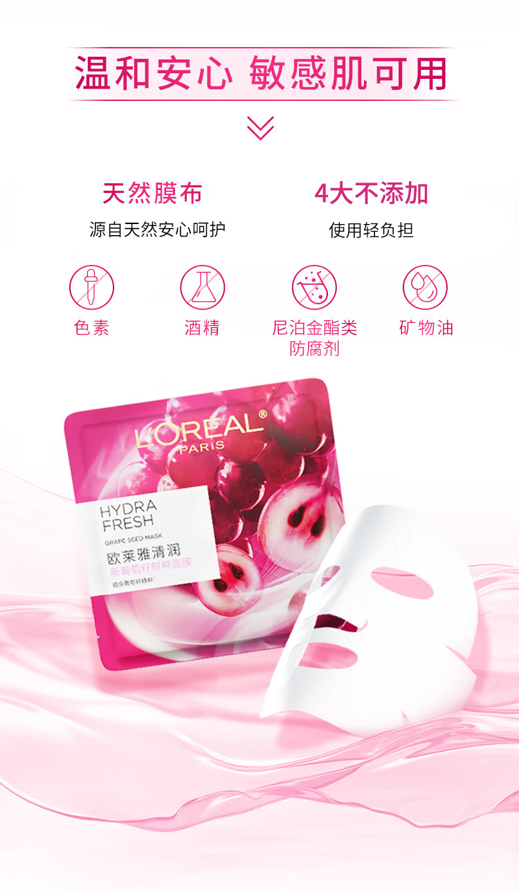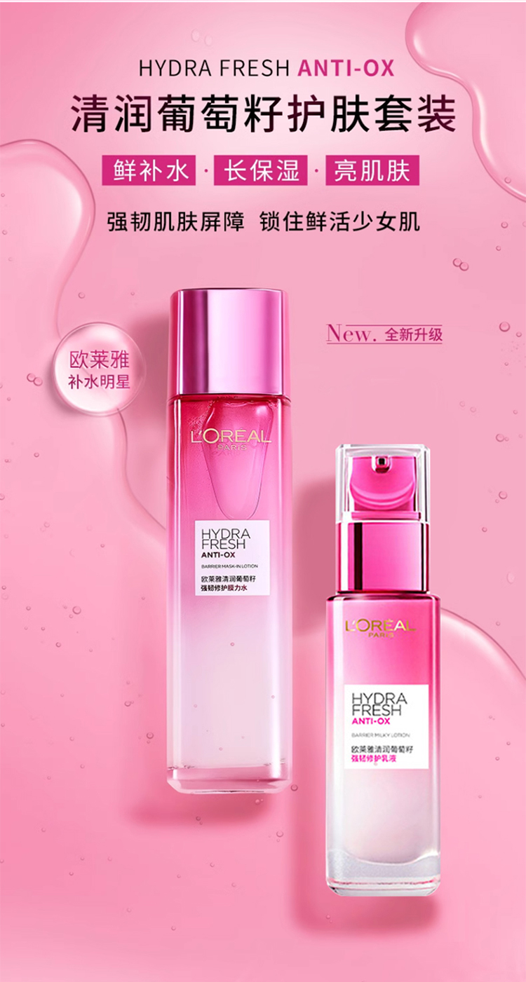 欧莱雅清润葡萄籽套包组合(375ml组合装+面膜6片)