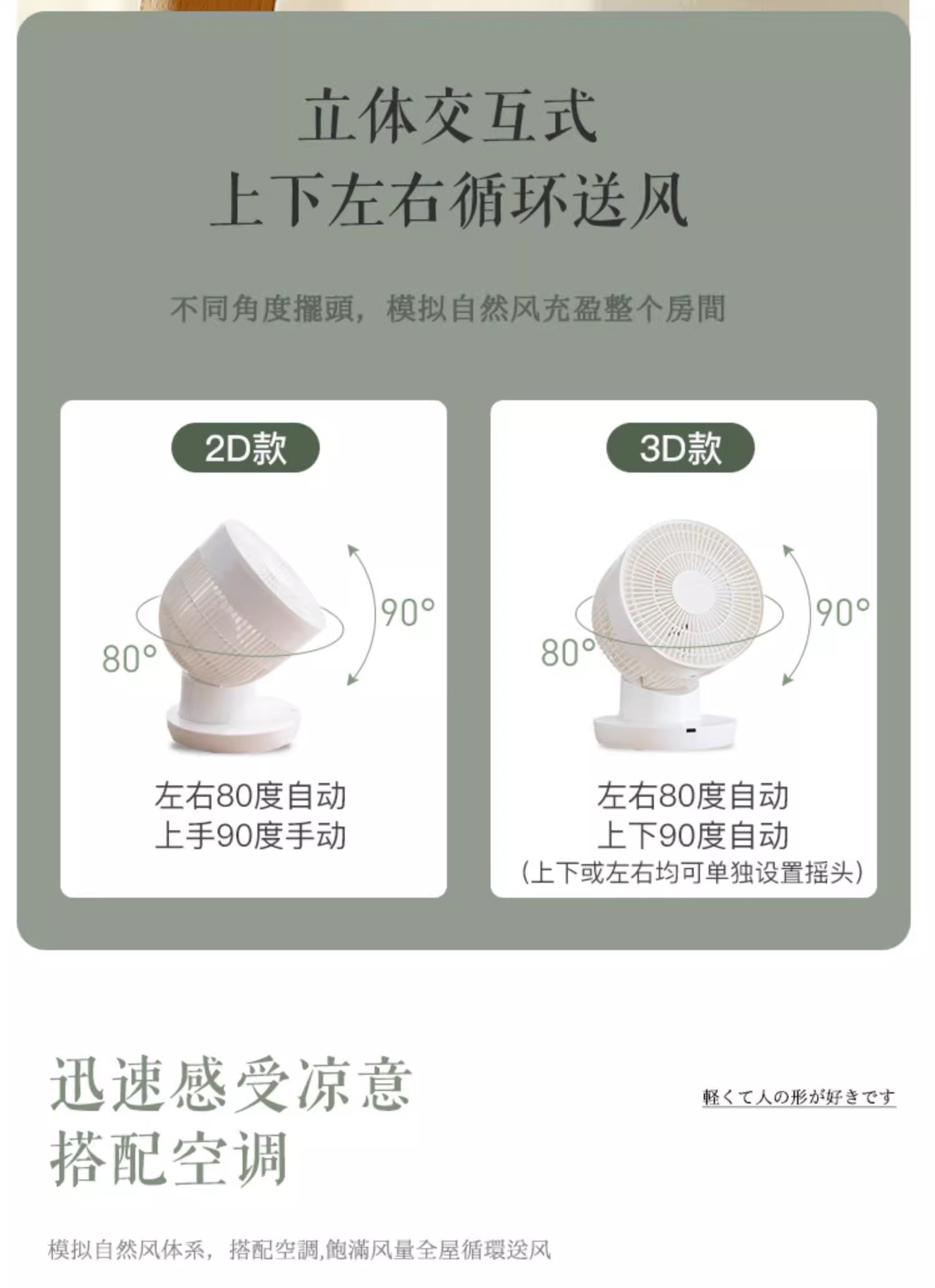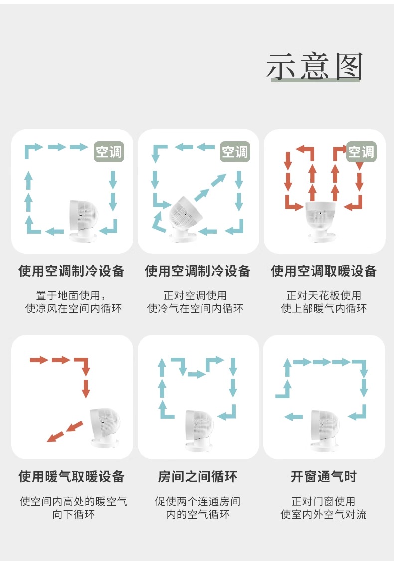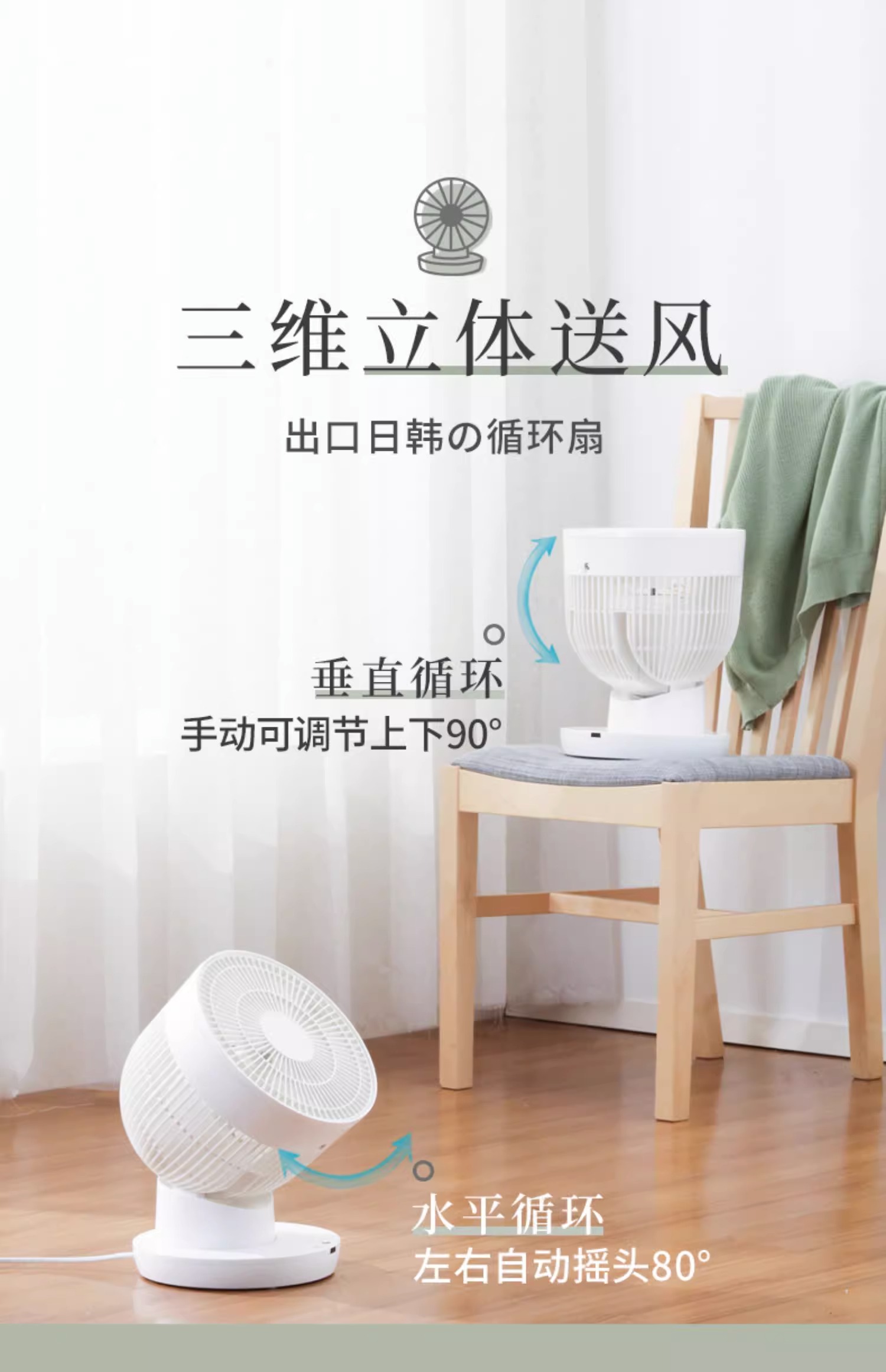 优想空气循环扇家用涡轮电风扇台式卧室小型静音定时电扇
