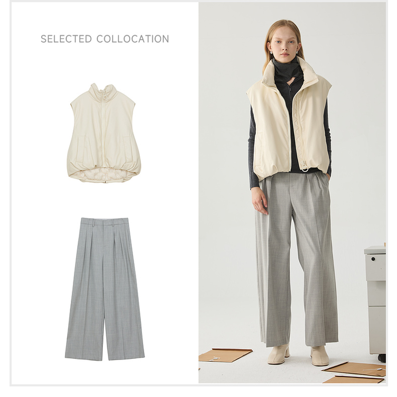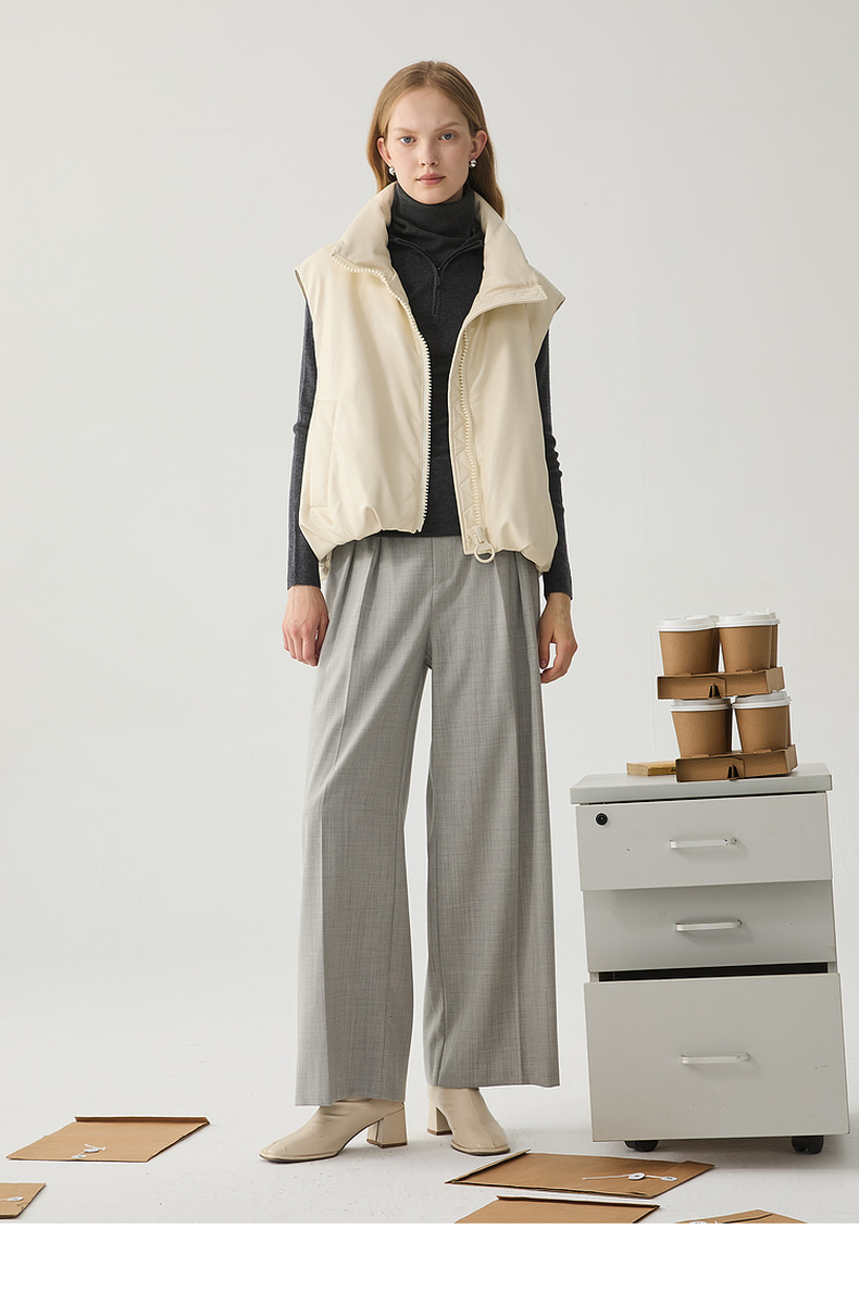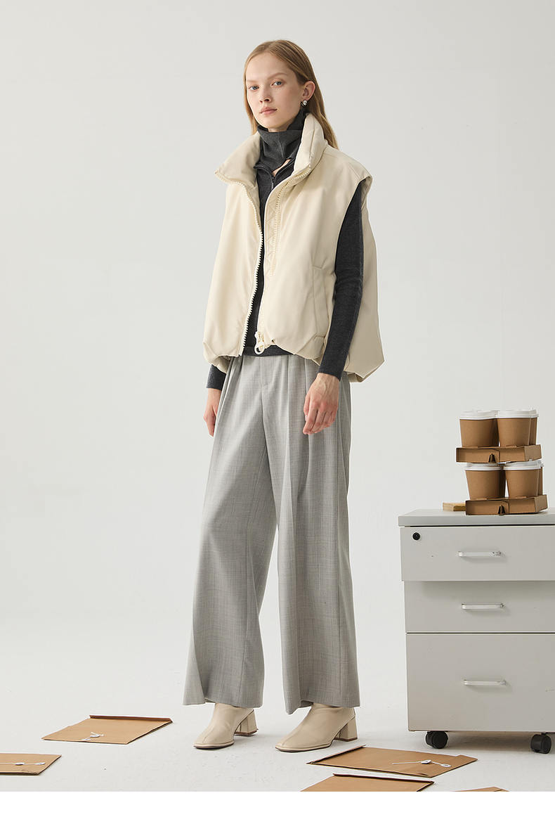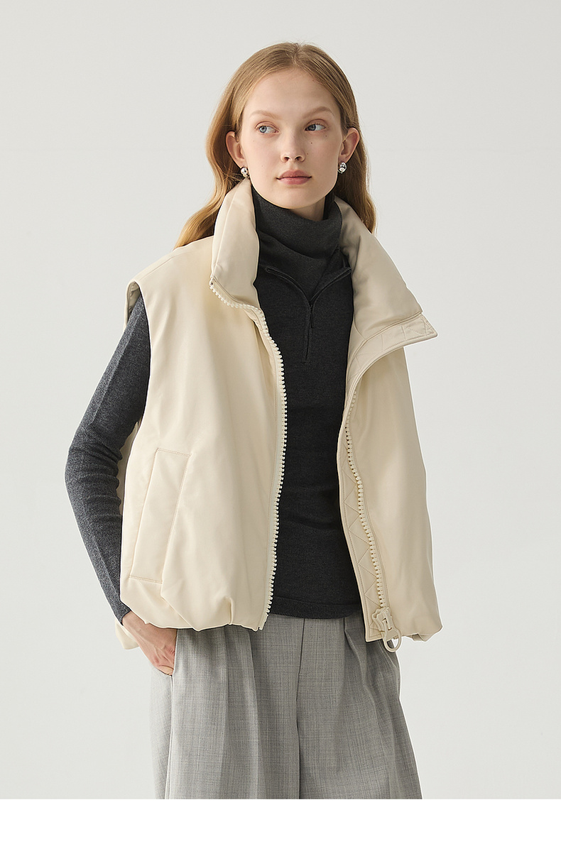 谜底羽绒马甲女2024冬季新品百搭简约立领短款鸭绒马夹244MY1453