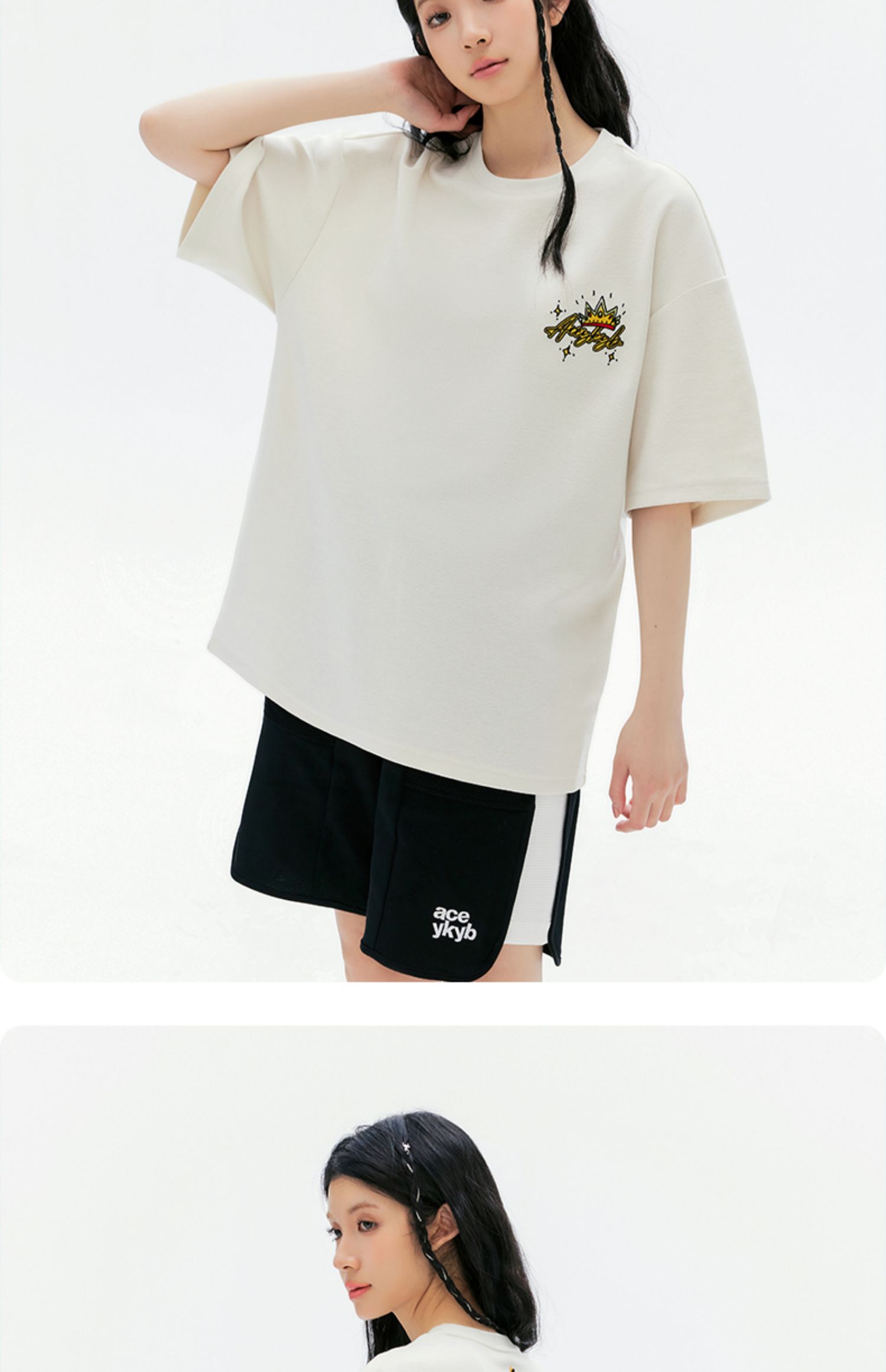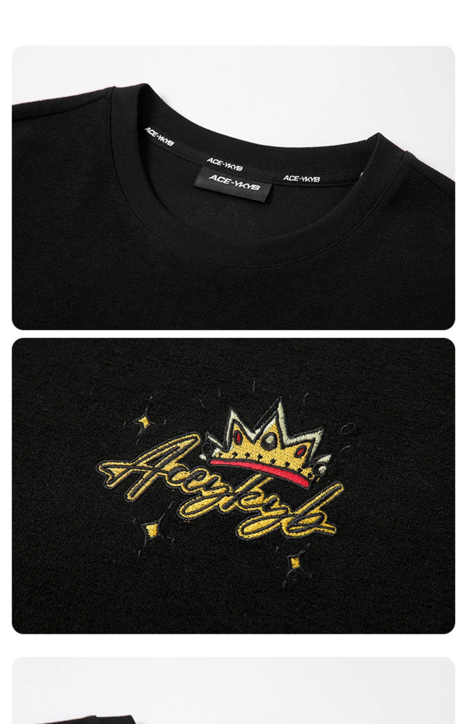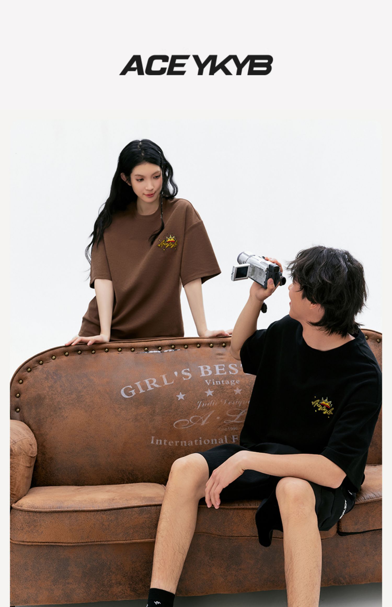 YKYB黄子韬皇冠刺绣t恤中性重磅美式2025夏季新款宽松休闲感短袖