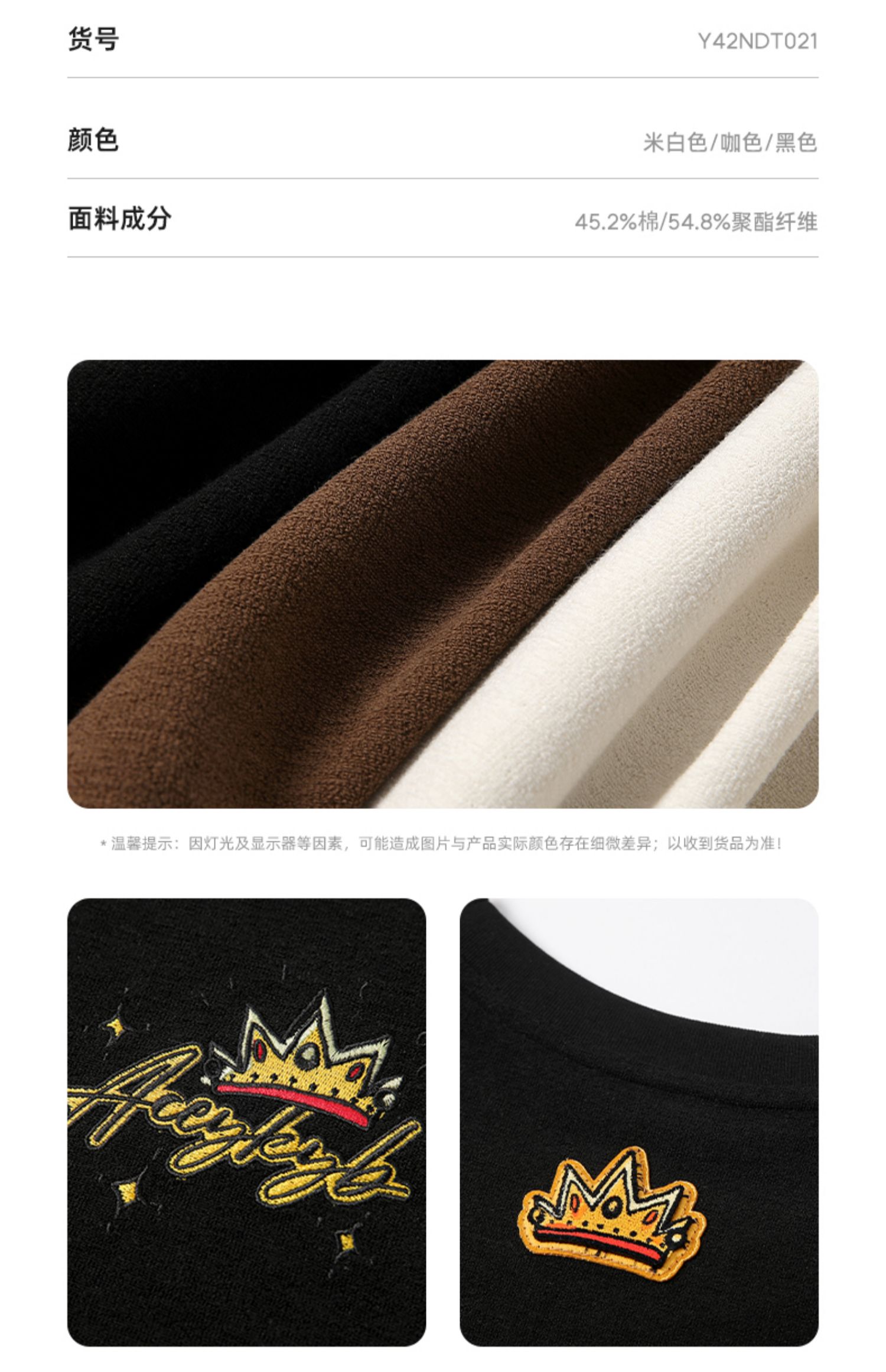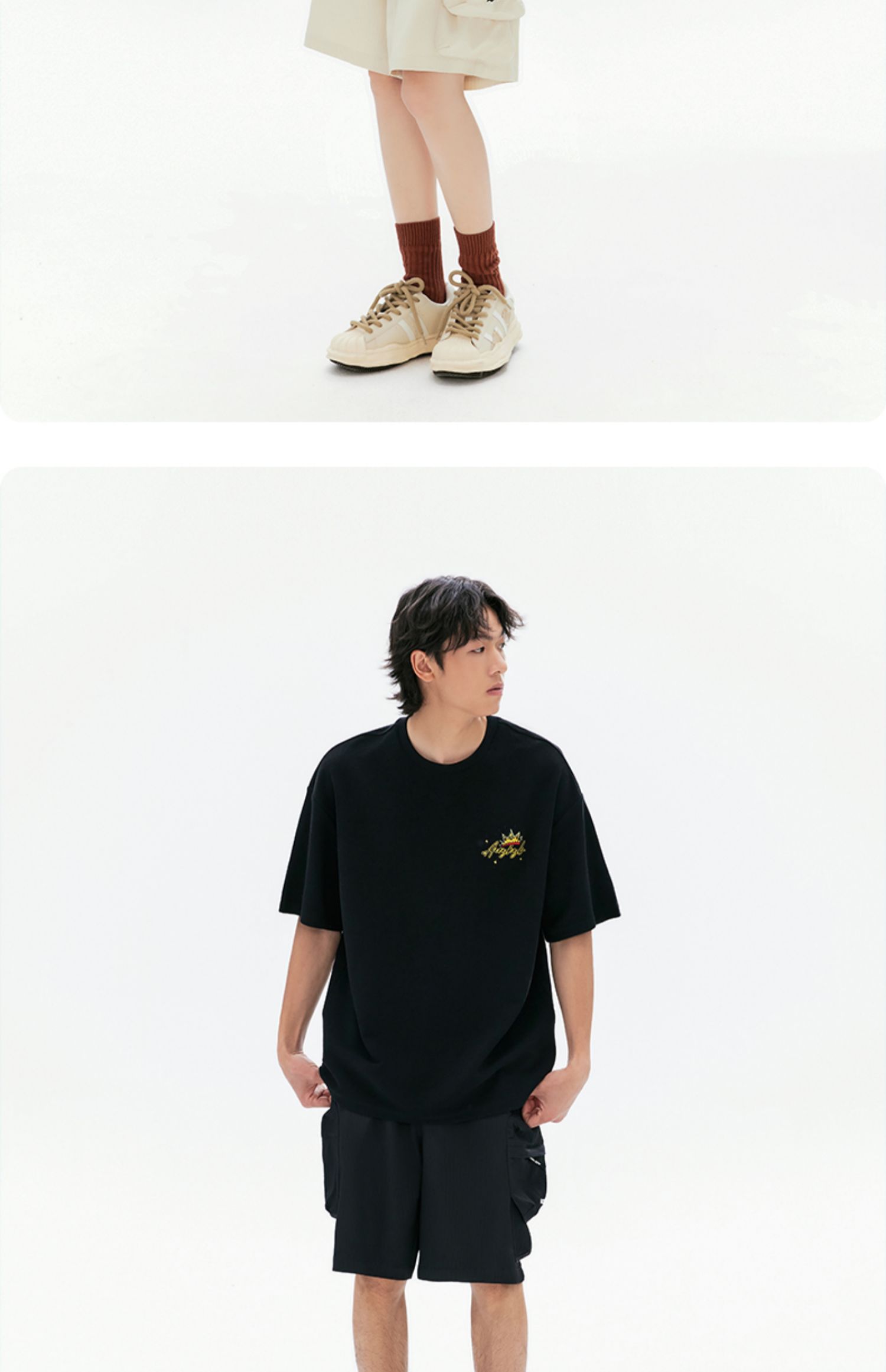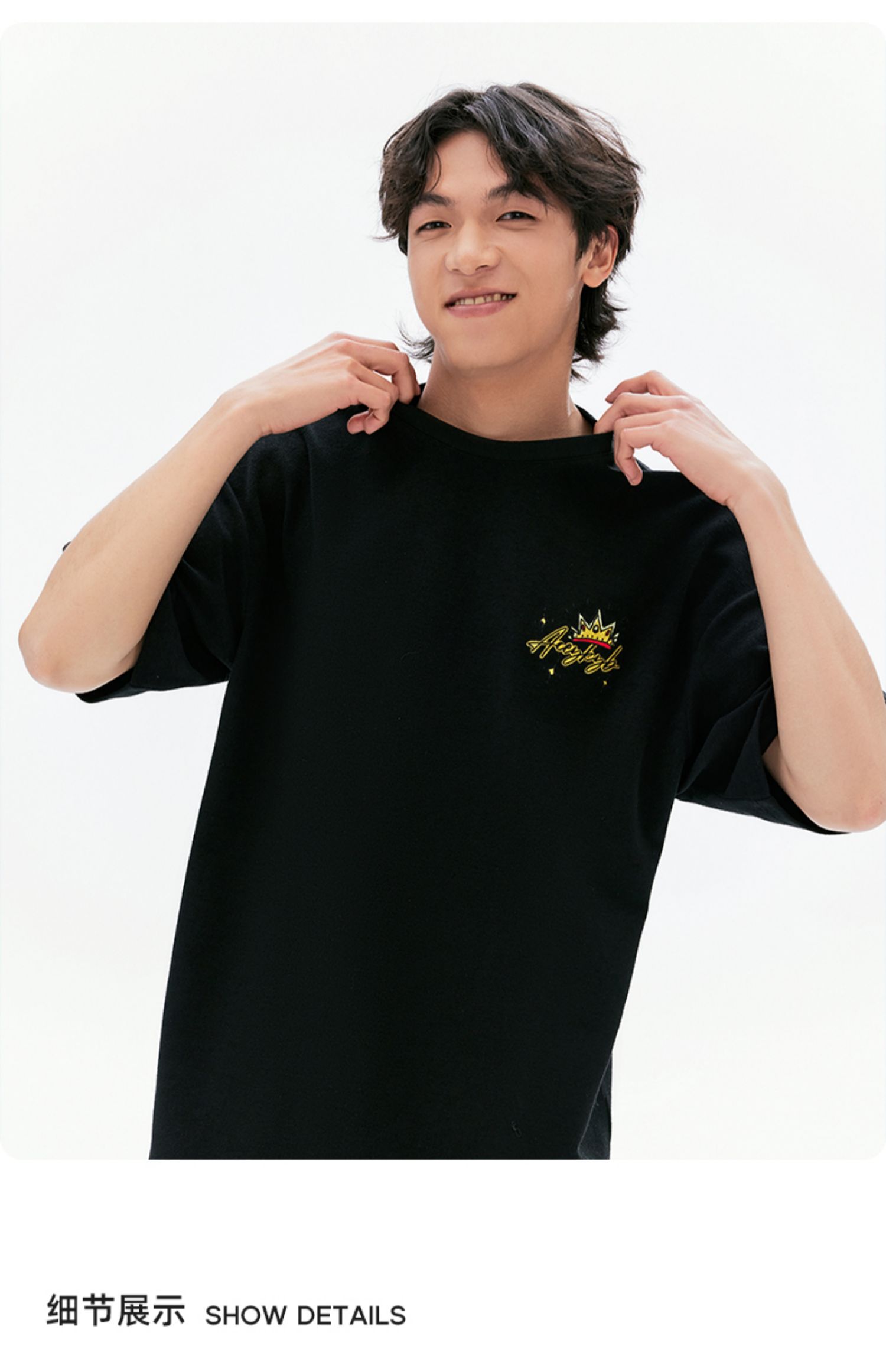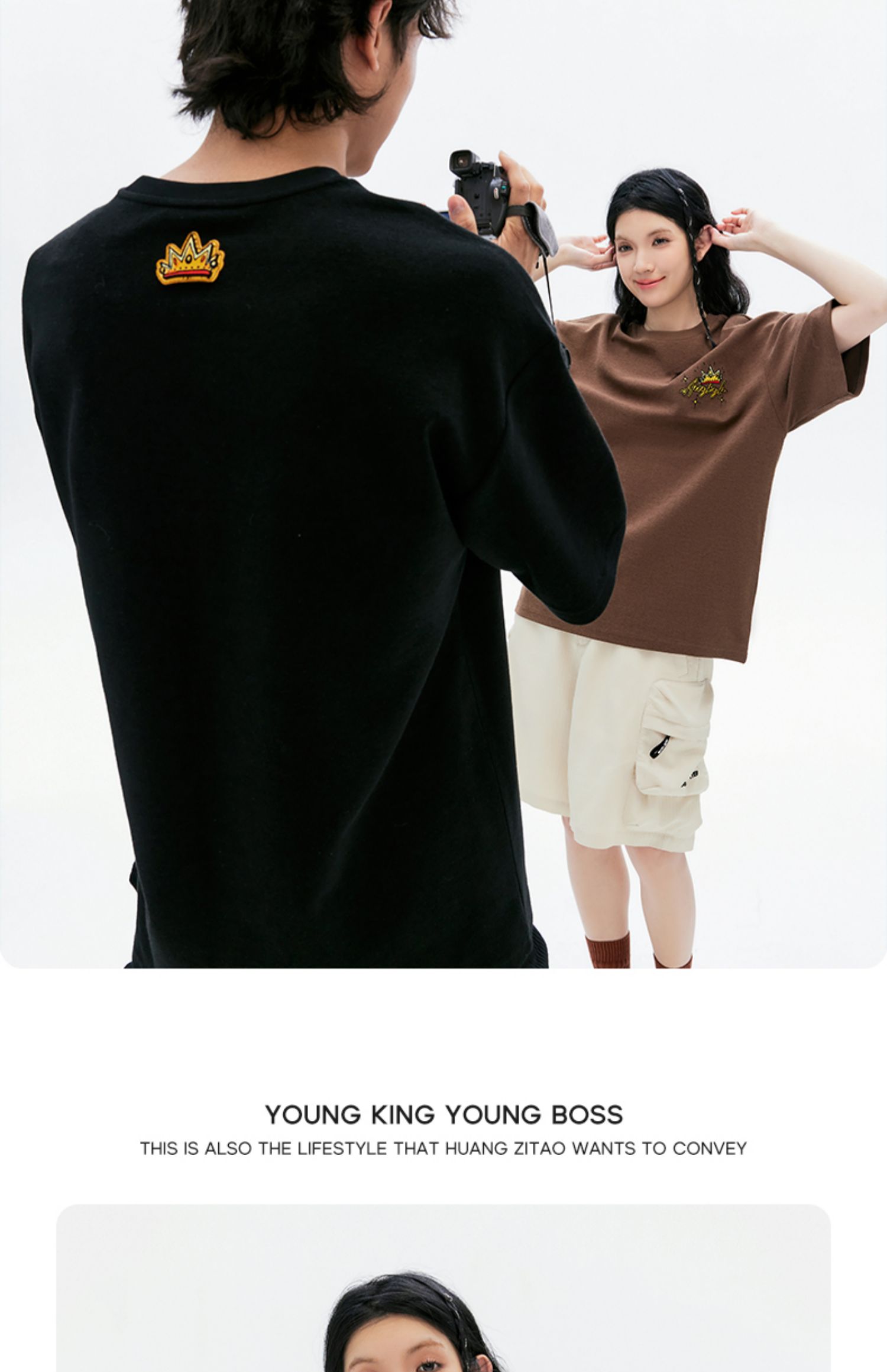 YKYB黄子韬皇冠刺绣t恤中性重磅美式2025夏季新款宽松休闲感短袖