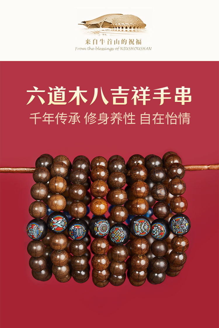 牛首山六道木八吉祥手串男老料降龙木手链念珠文玩原木送礼