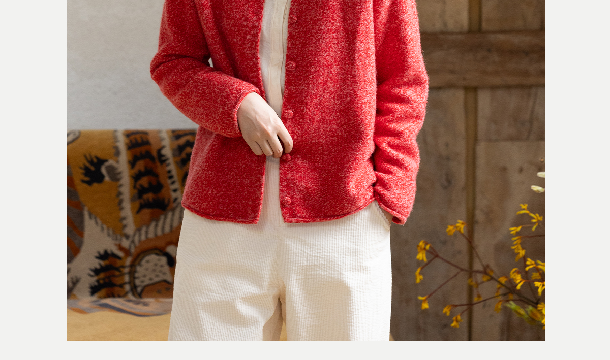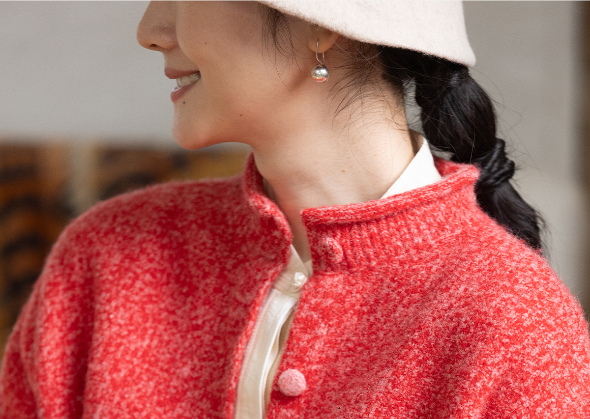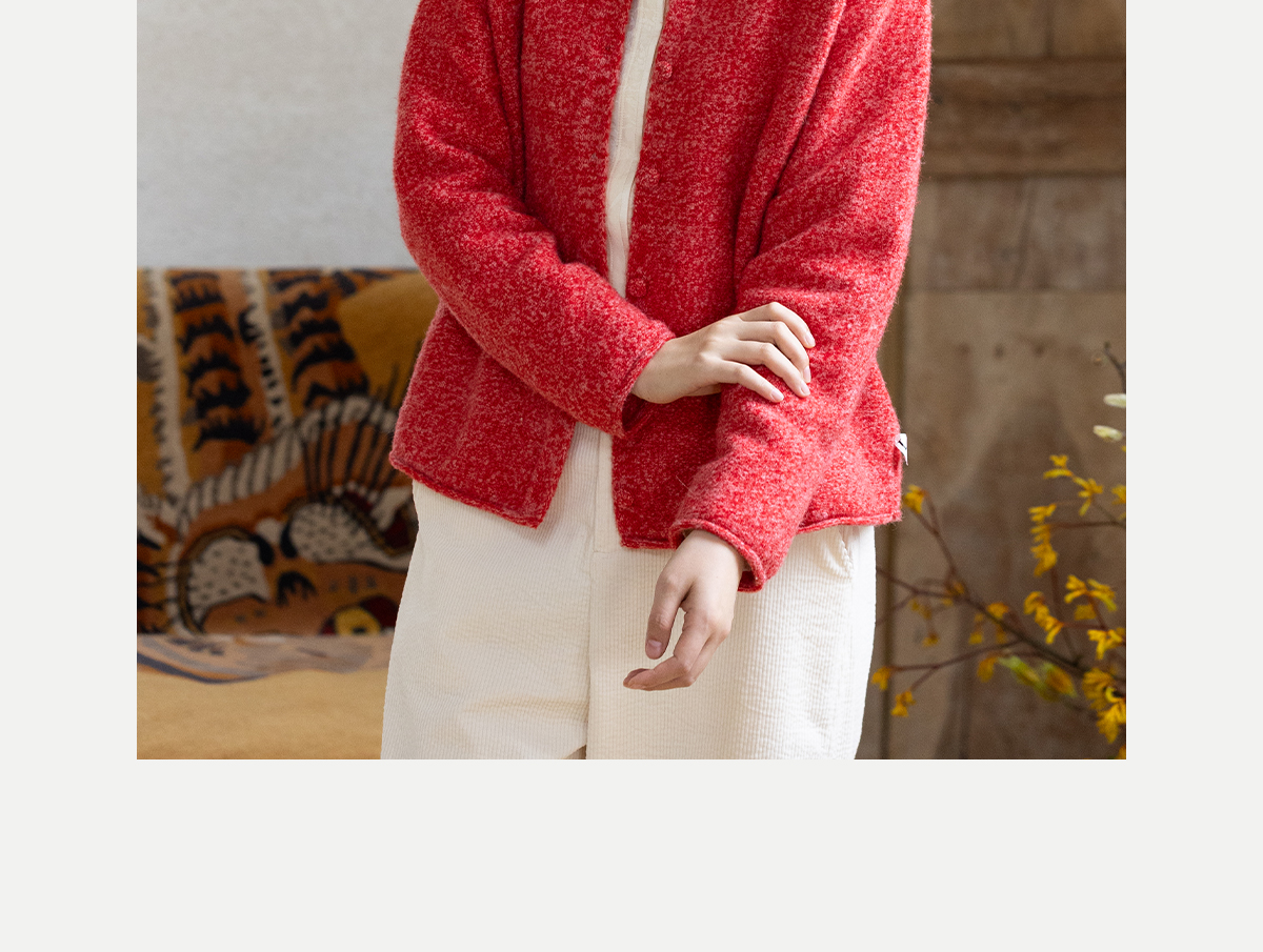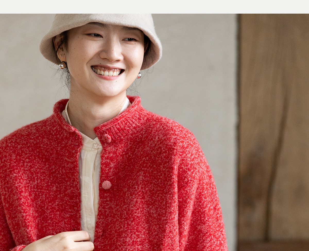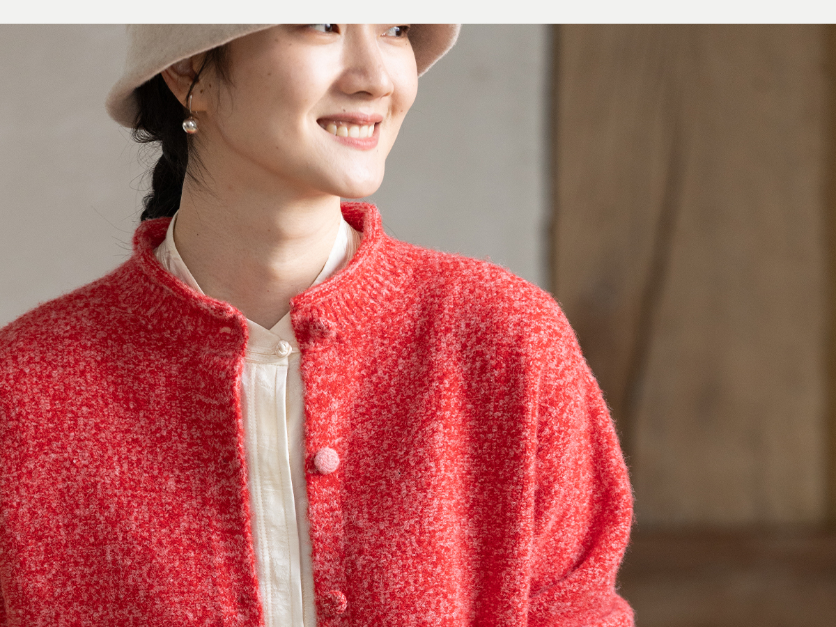 牧衣游原创 羊毛羊驼混织毛织外套蓬松软糯文艺百搭红色开衫 织语
