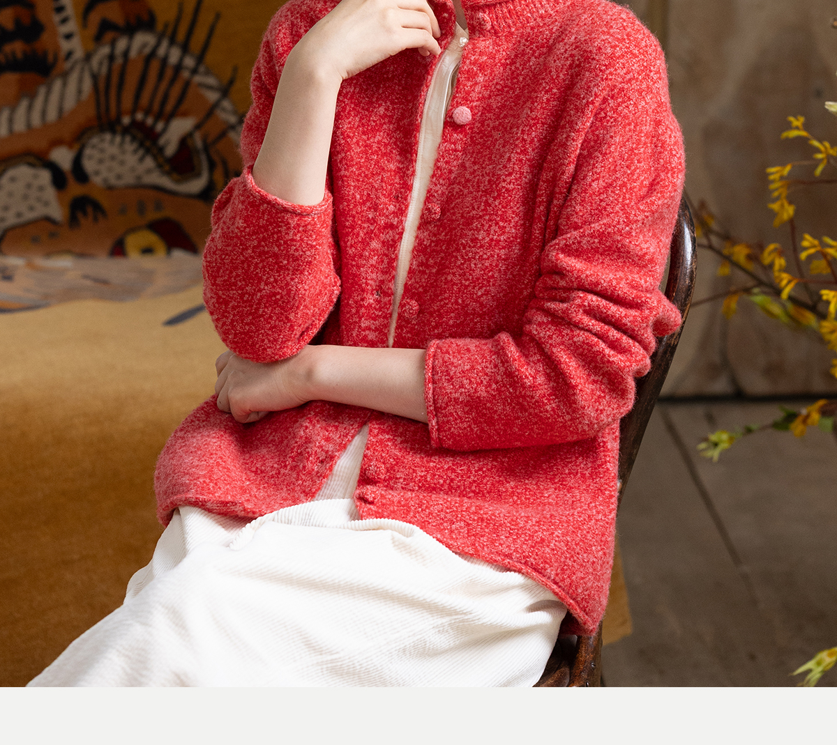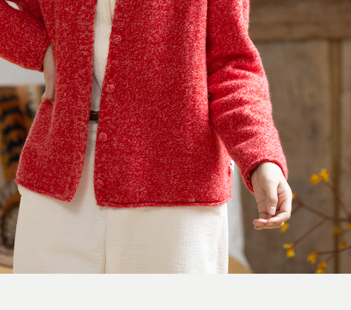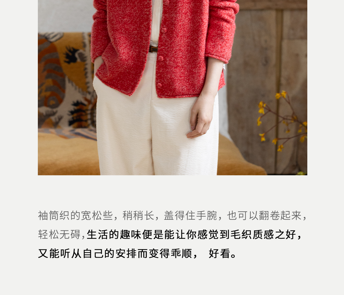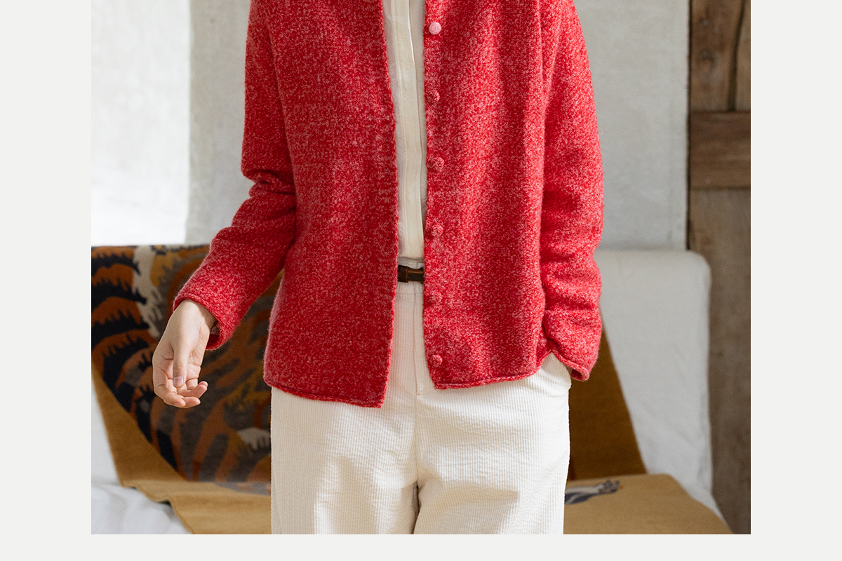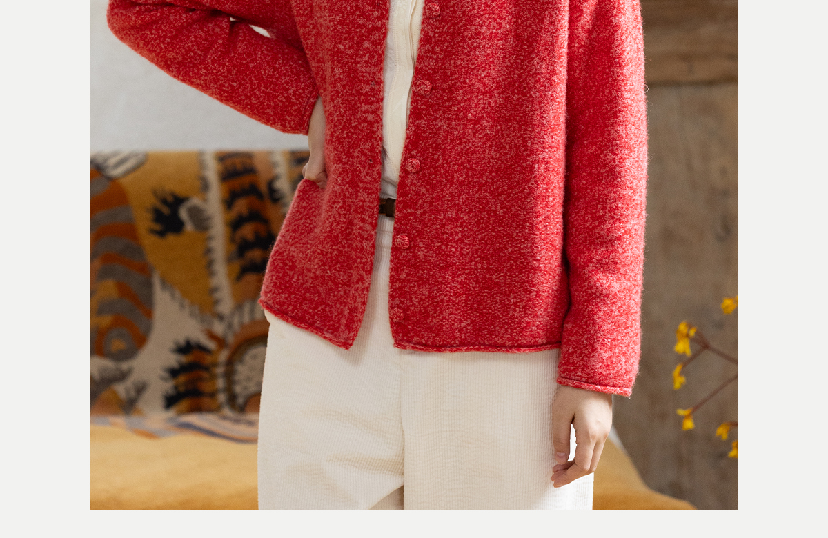 牧衣游原创 羊毛羊驼混织毛织外套蓬松软糯文艺百搭红色开衫 织语