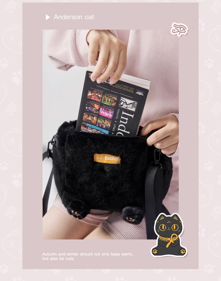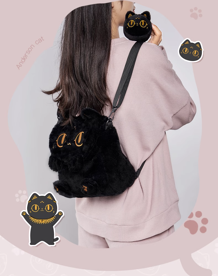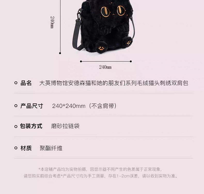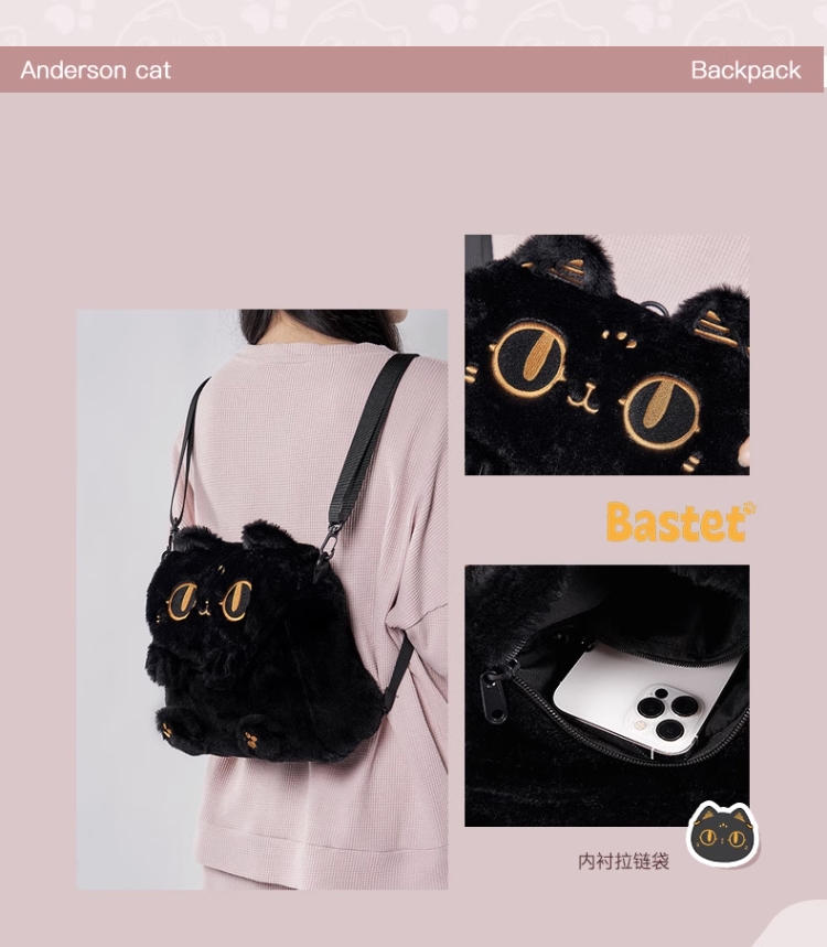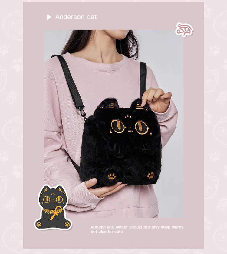 大英博物馆盖亚·安德森猫和她的朋友们系列 毛绒猫头刺绣双肩包
