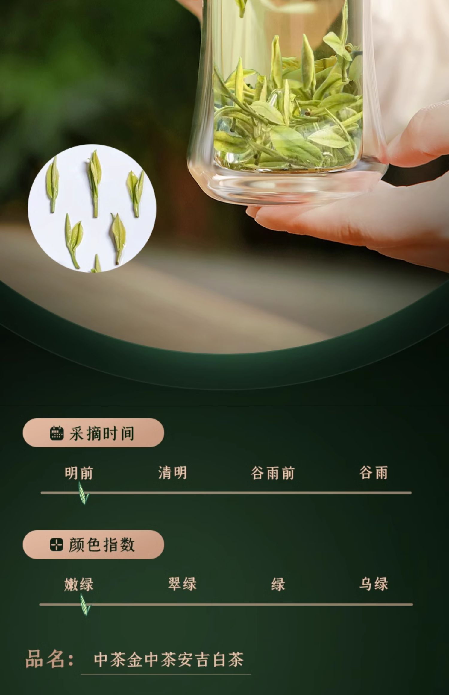 中茶绿茶 2024年新茶明前春茶金中茶安吉白茶72g礼盒装茶叶送礼