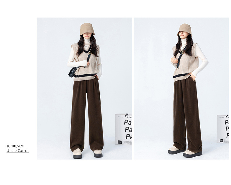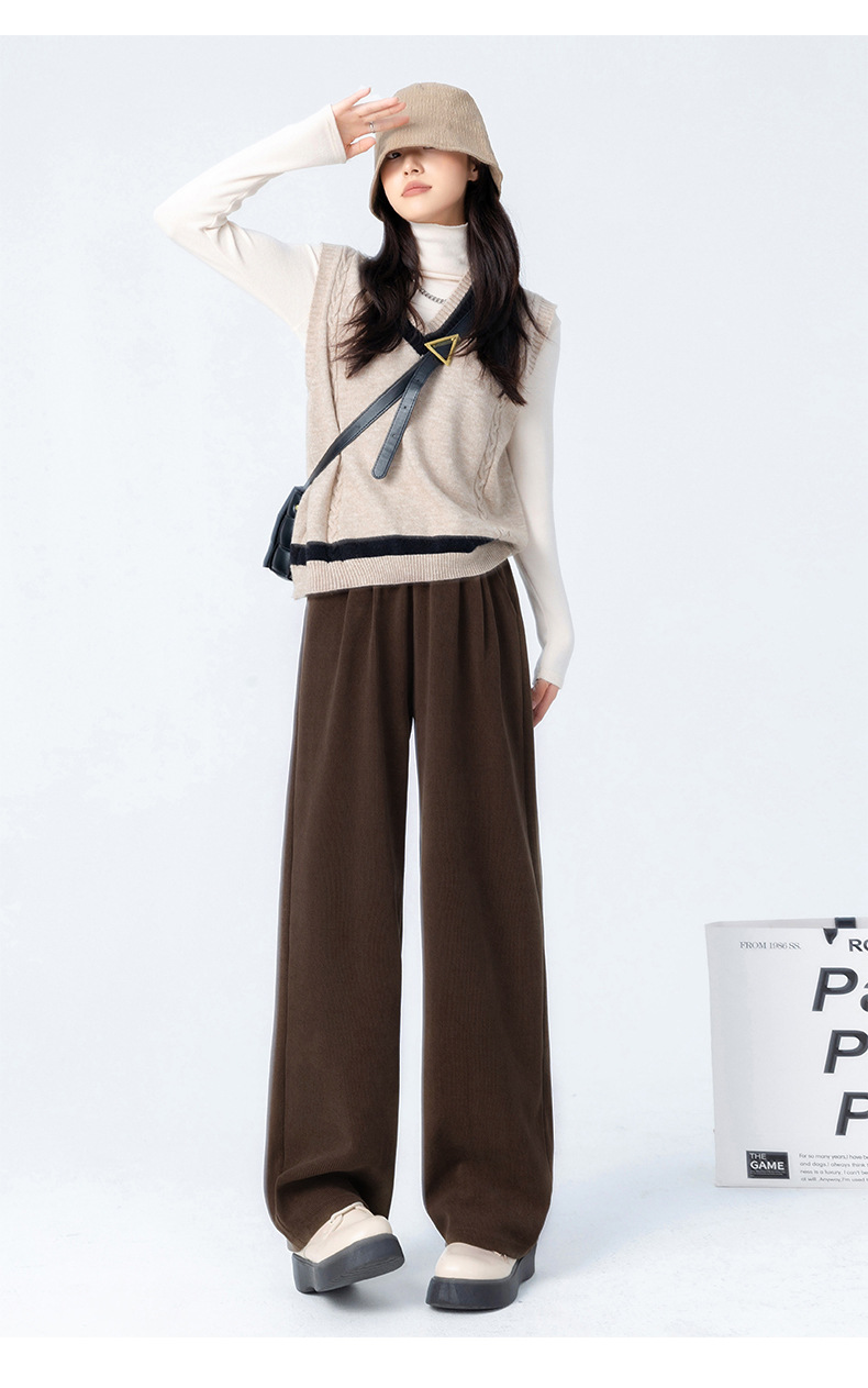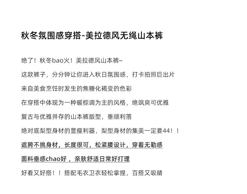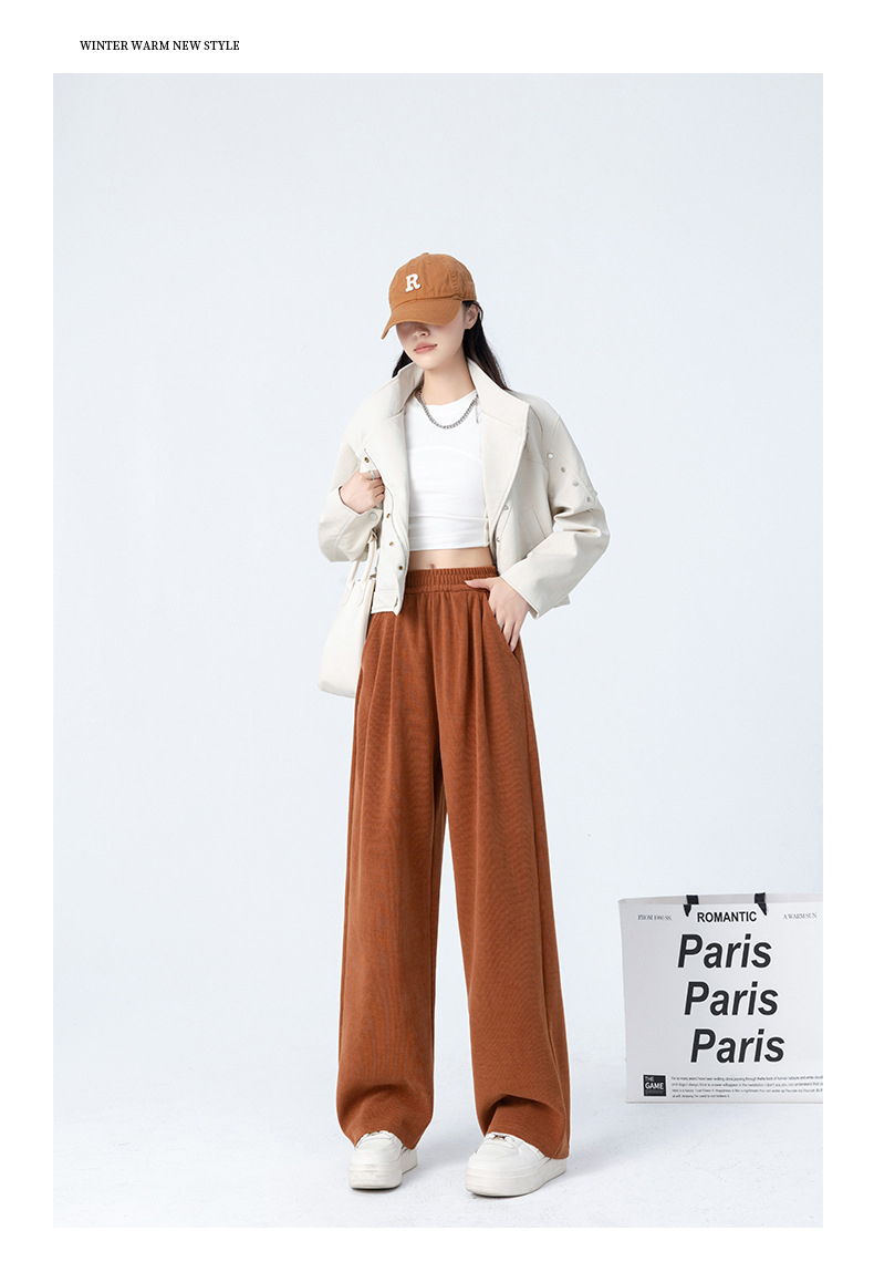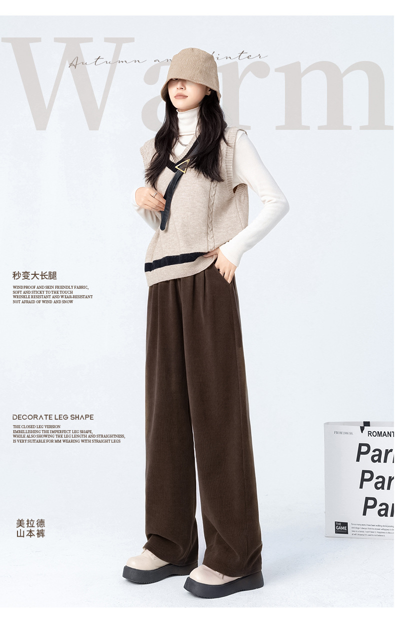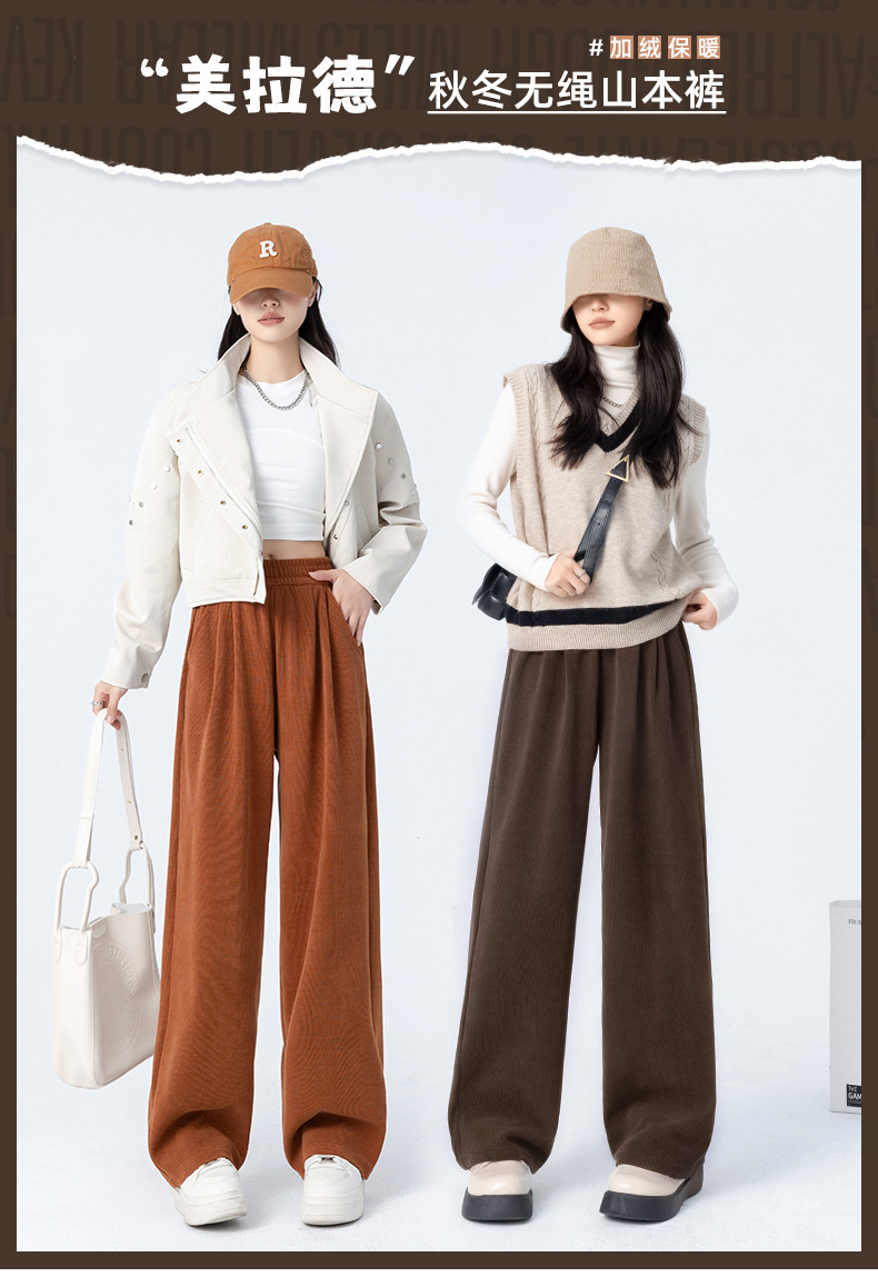 「五色可选!美拉德山本裤」秋冬新款阔腿裤女加绒 高腰垂感显瘦休闲宽松直筒裤子下装