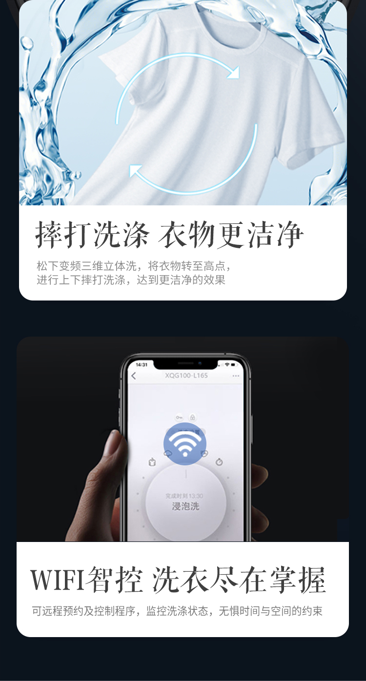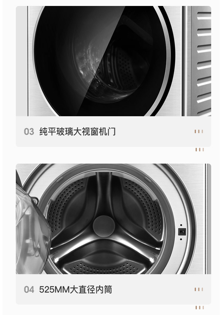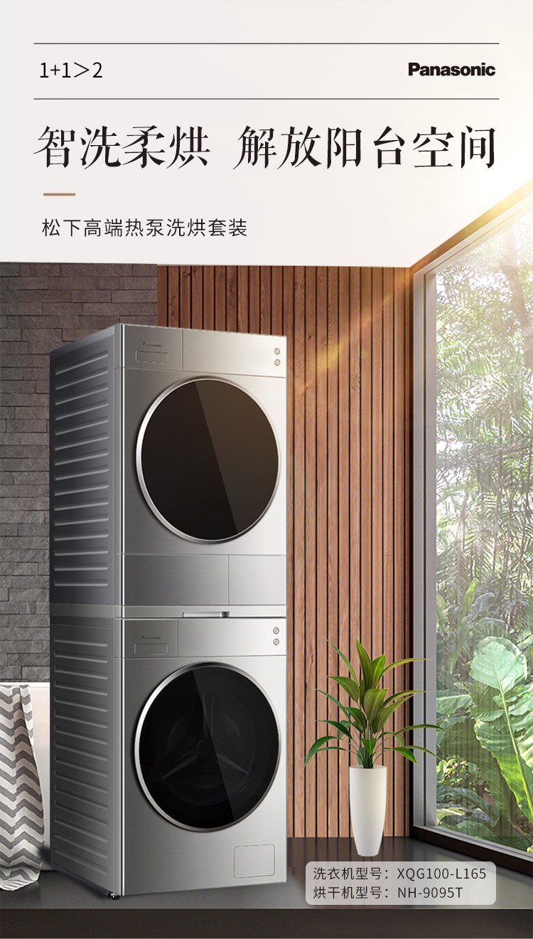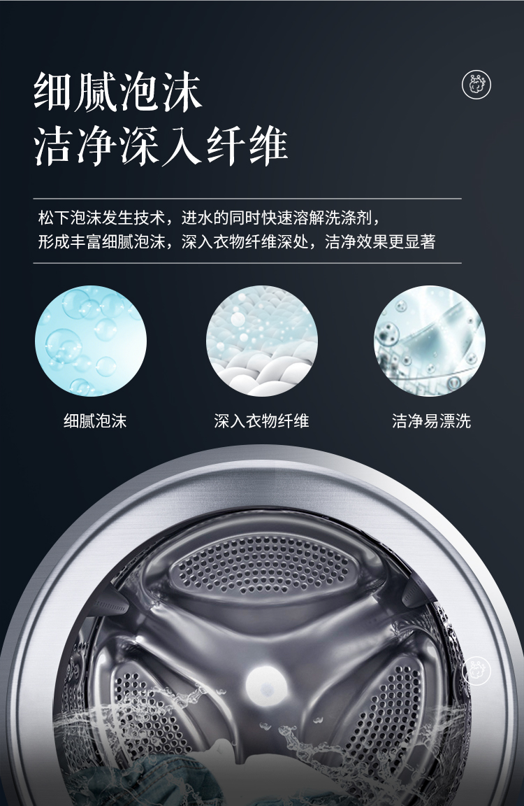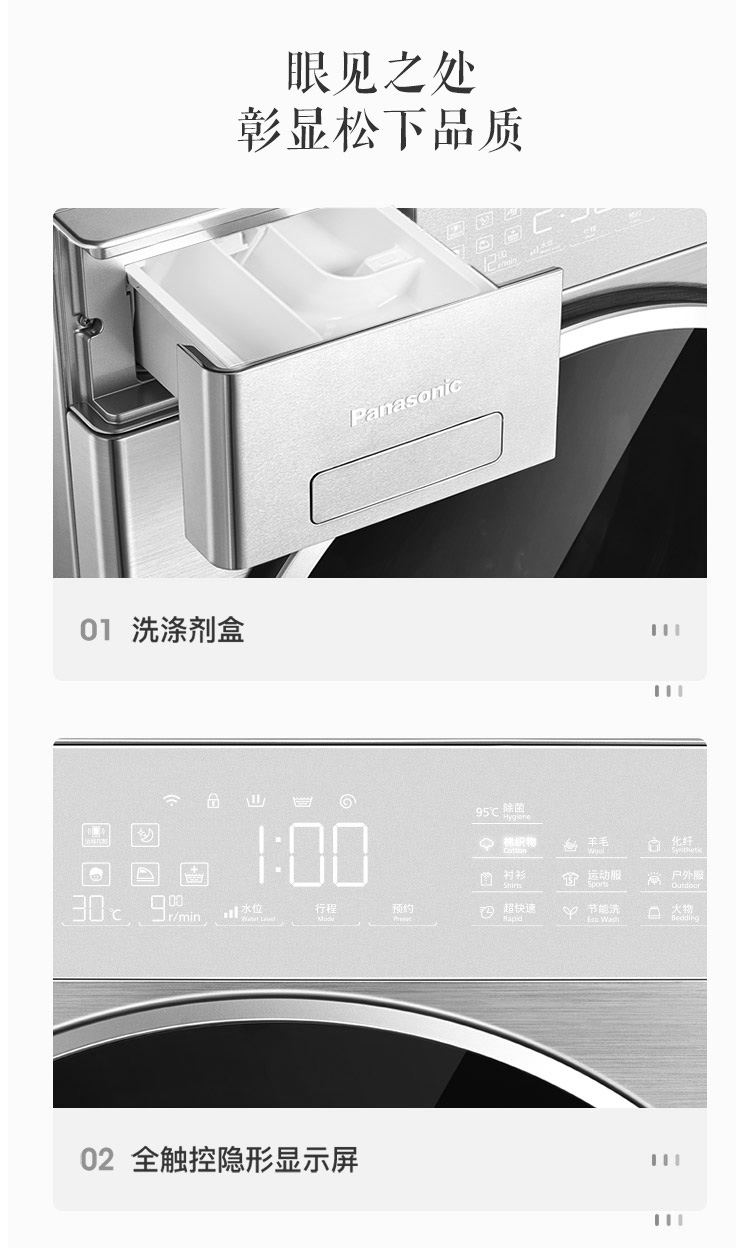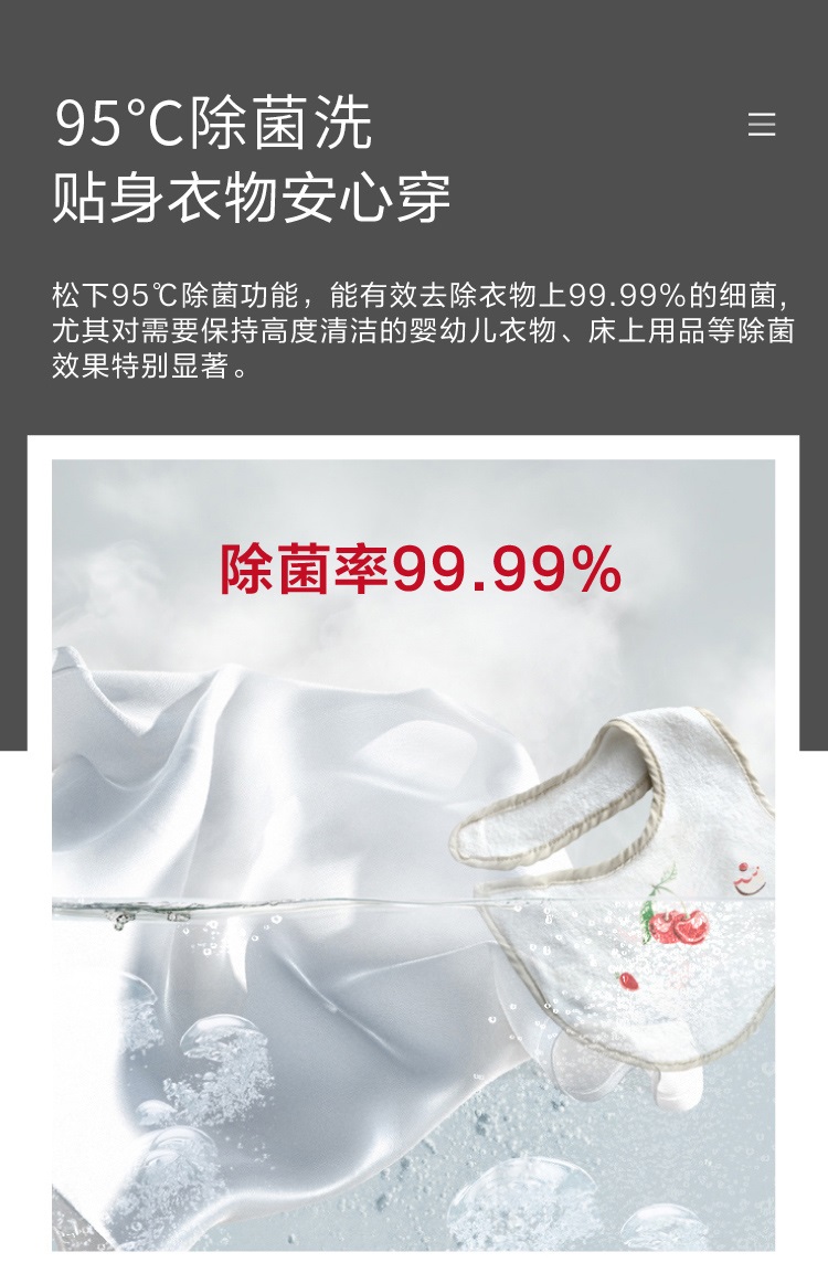 松下(Panasonic)滚筒洗衣机全自动10公斤 95度除菌洗 变频三维立体洗 节能轻音