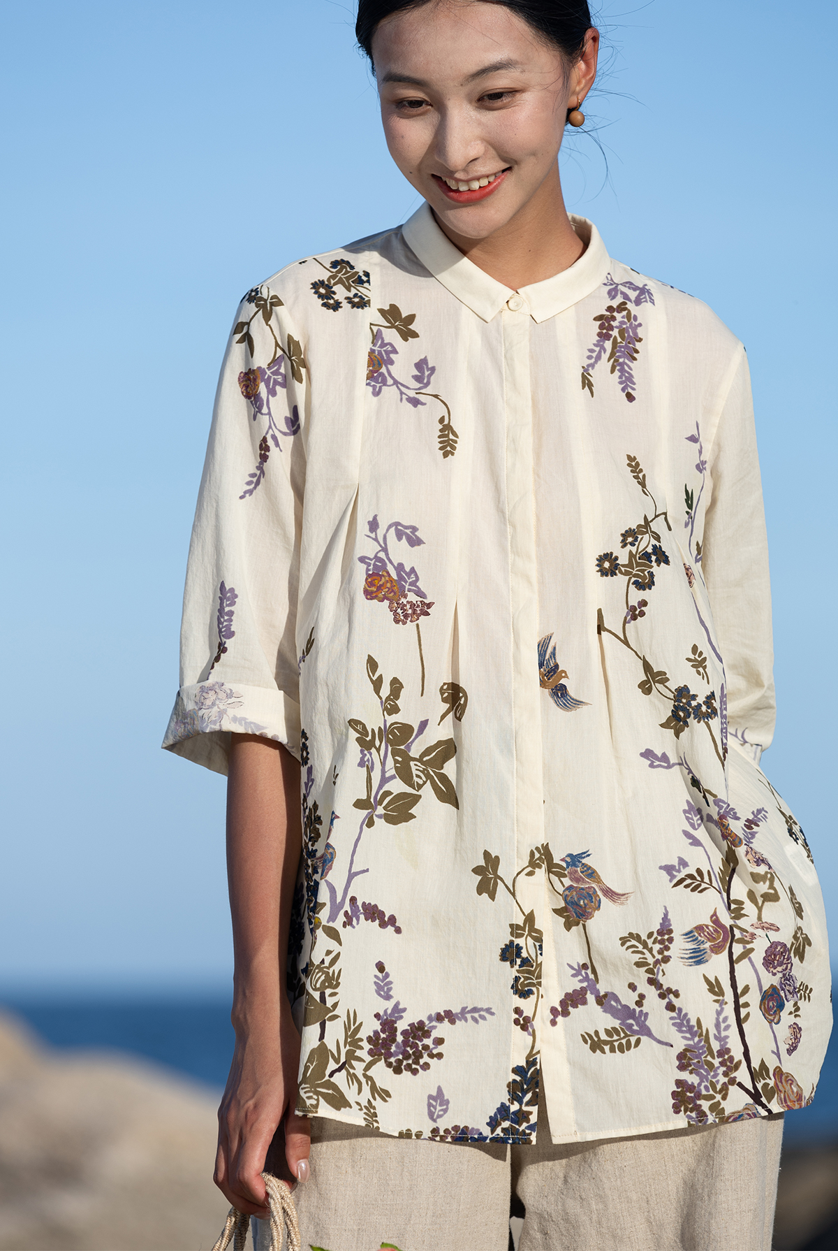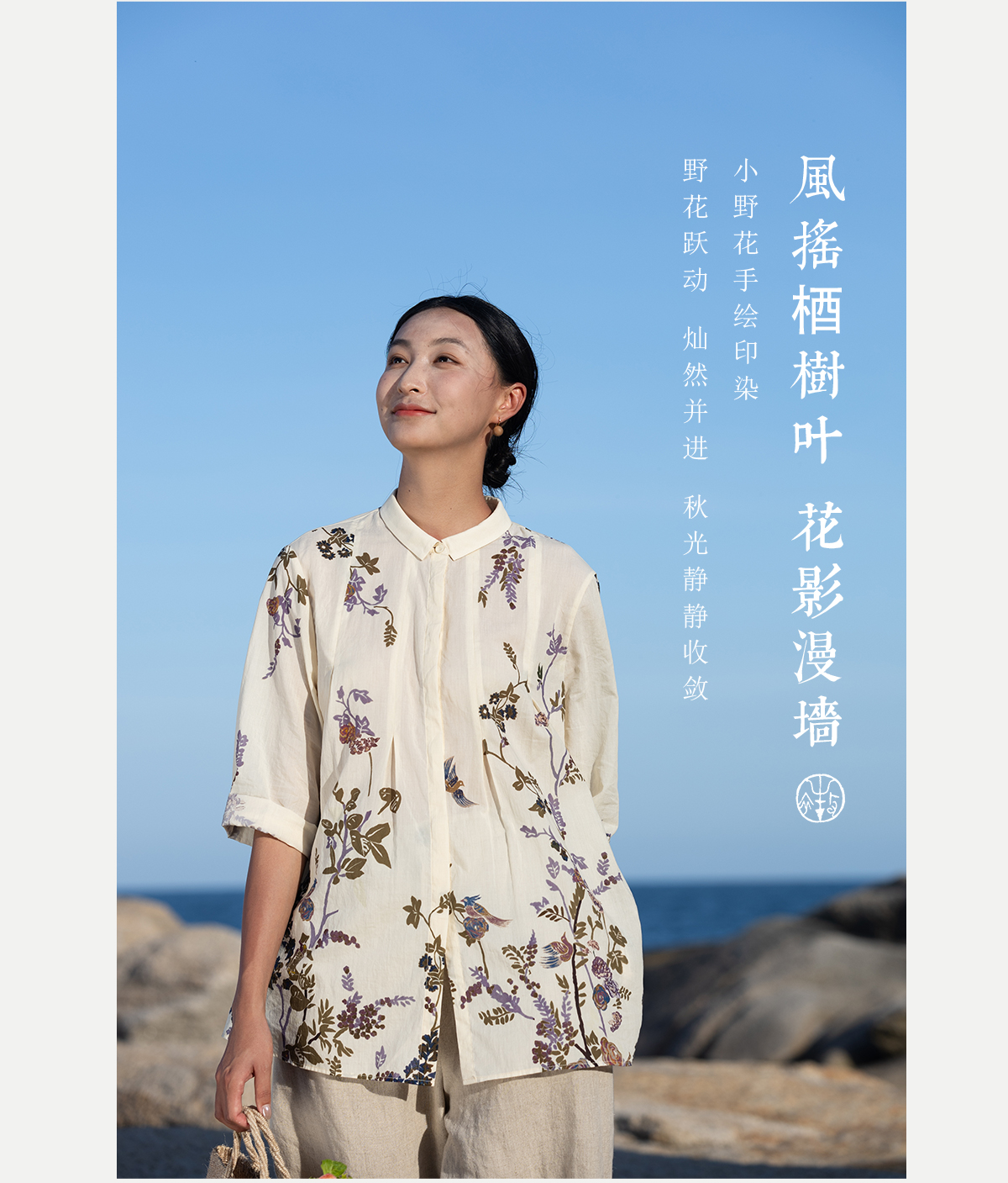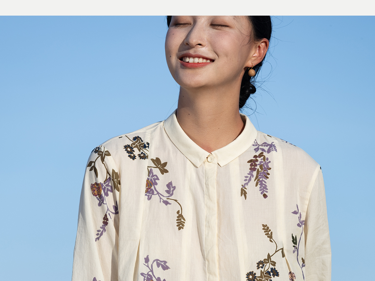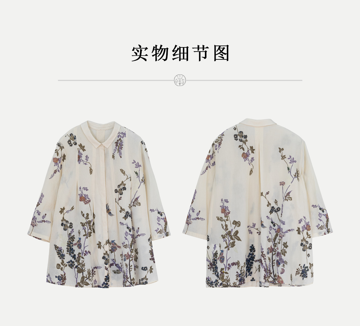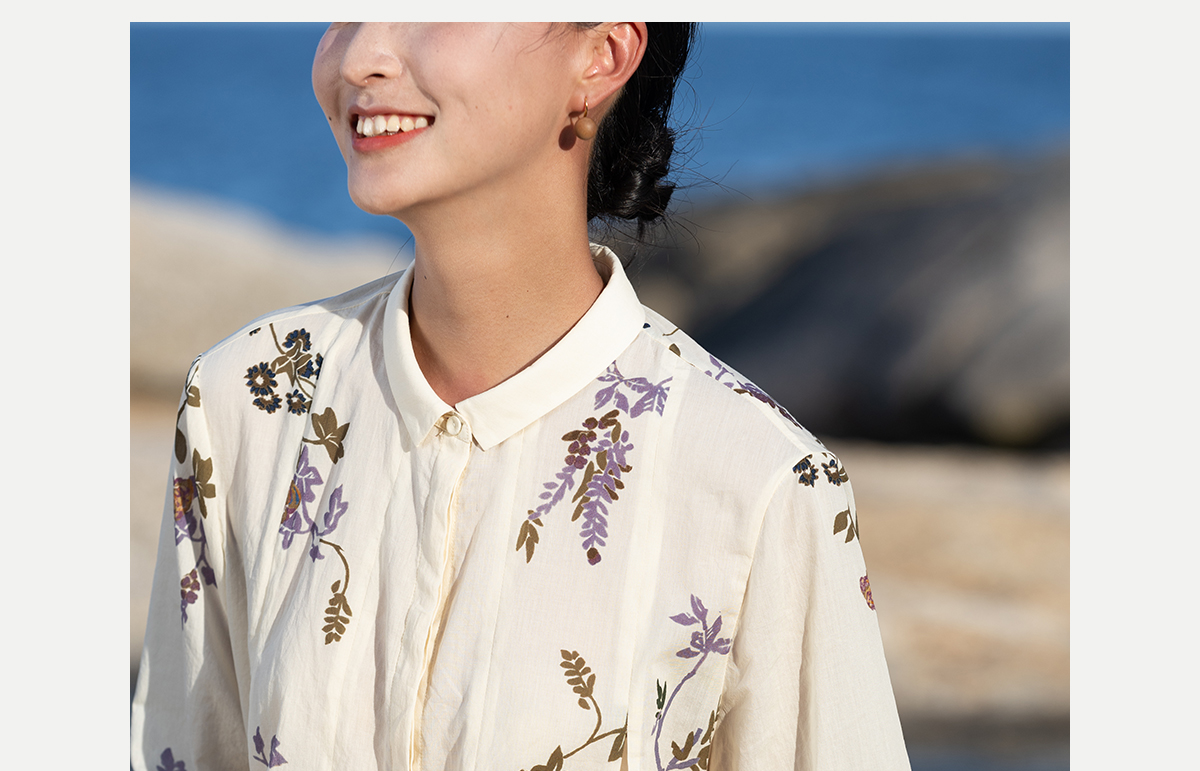 牧衣游原创 印花100支进口比马棉衬衫轻薄柔软百搭文艺衬衣 青沁